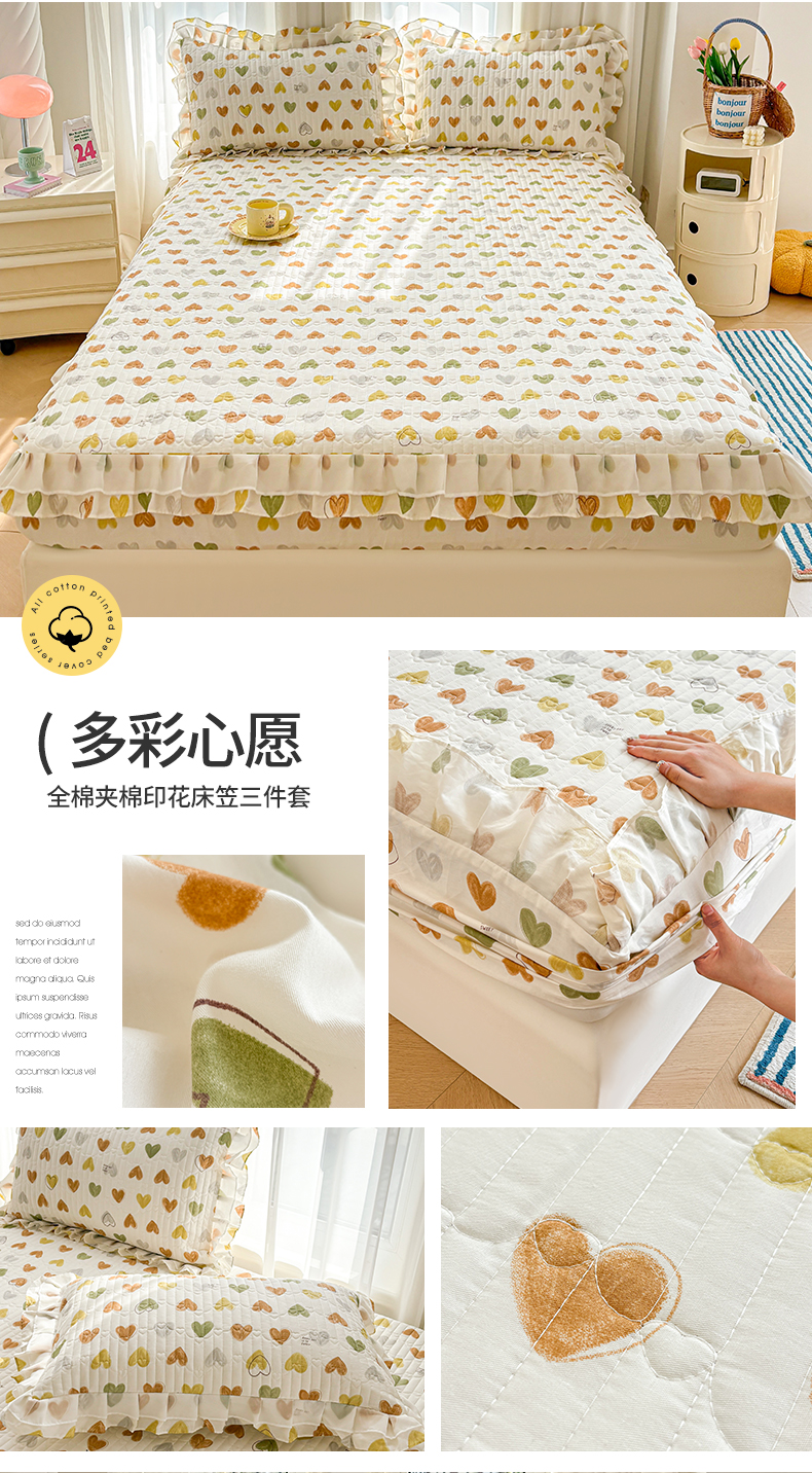 • 91家纺网 家纺一手货源 找家纺 宜凡 2024新款全棉床笠双层花边三件套 多彩心愿