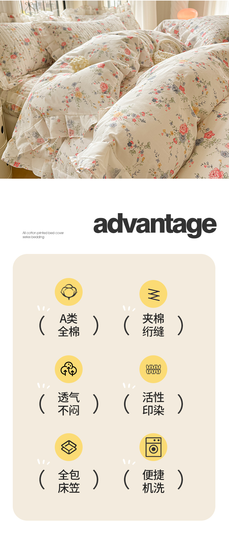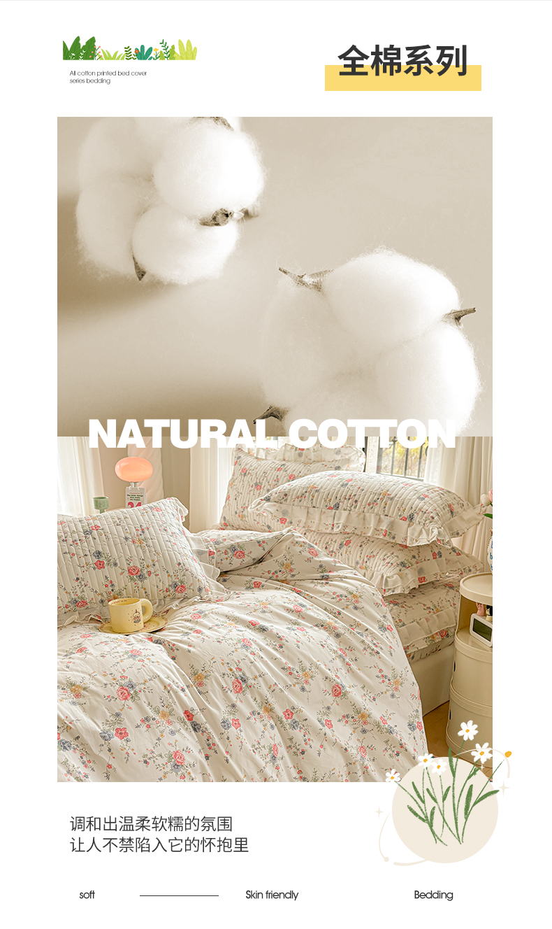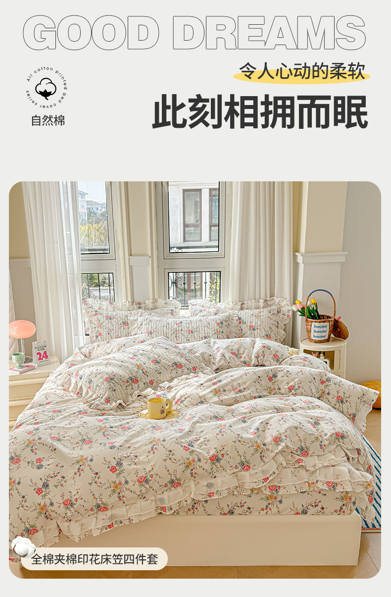 (总)宜凡家纺 2025新款全棉数码印花床裙四件套系列一,静若幽兰,浮云织梦,梦幻花园,陌上花开