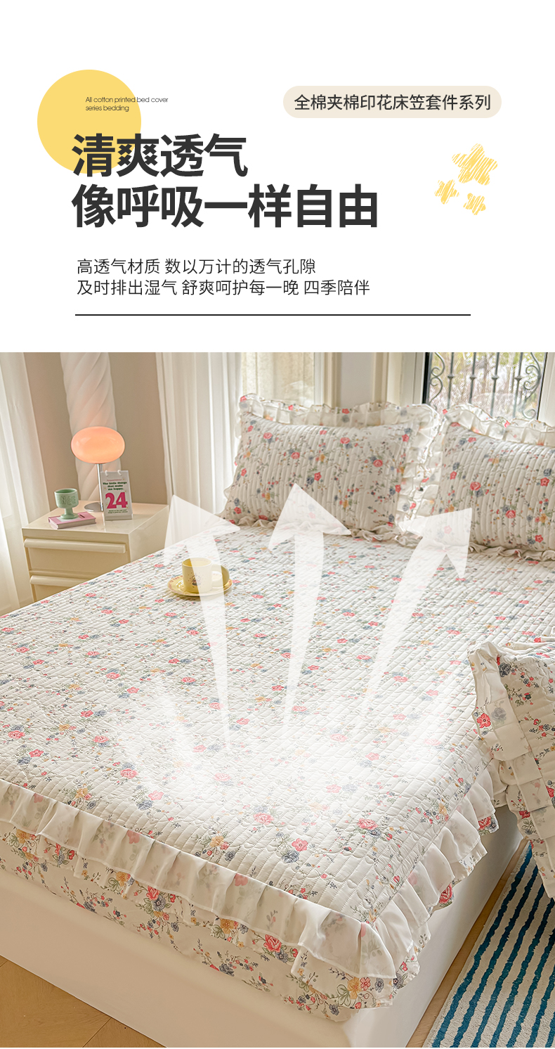 (总)宜凡家纺 2025新款全棉数码印花床裙三件套系列一,静若幽兰,浮云织梦,梦幻花园,陌上花开