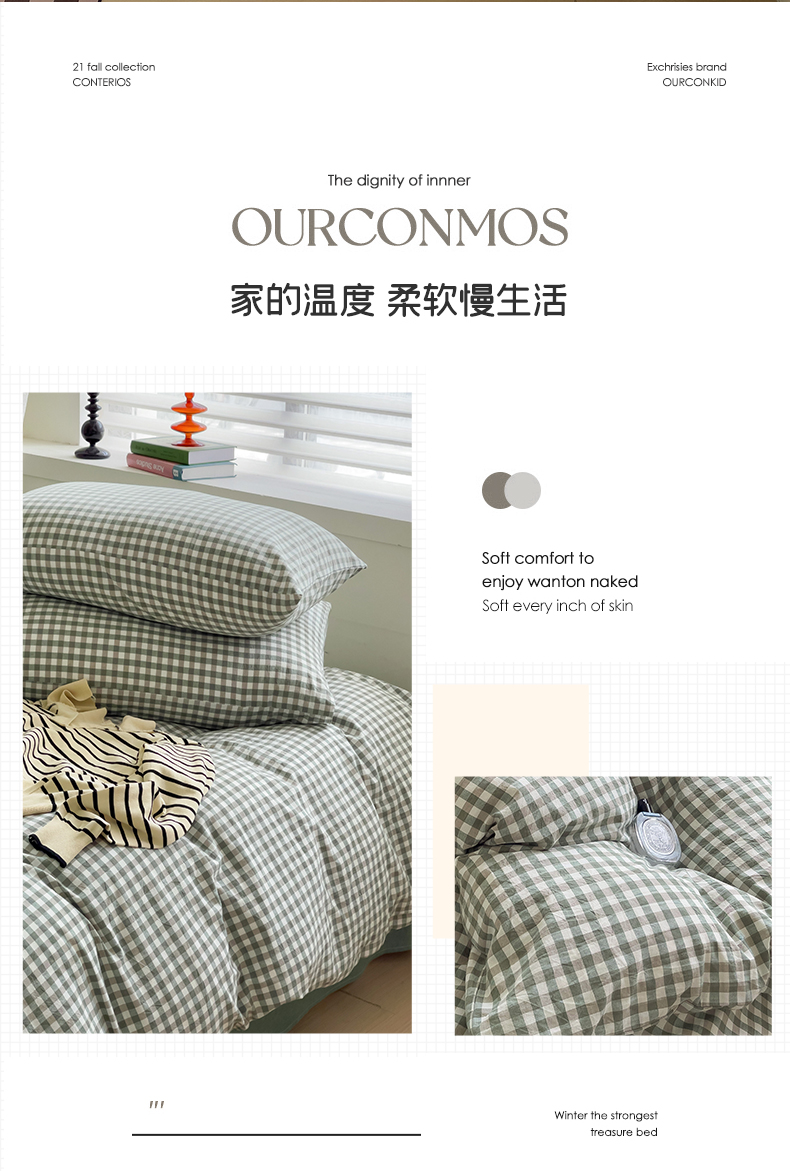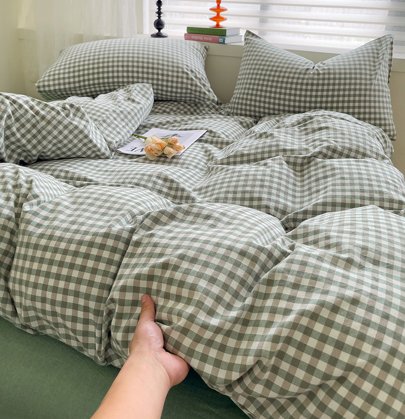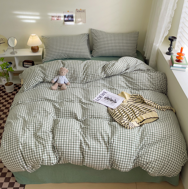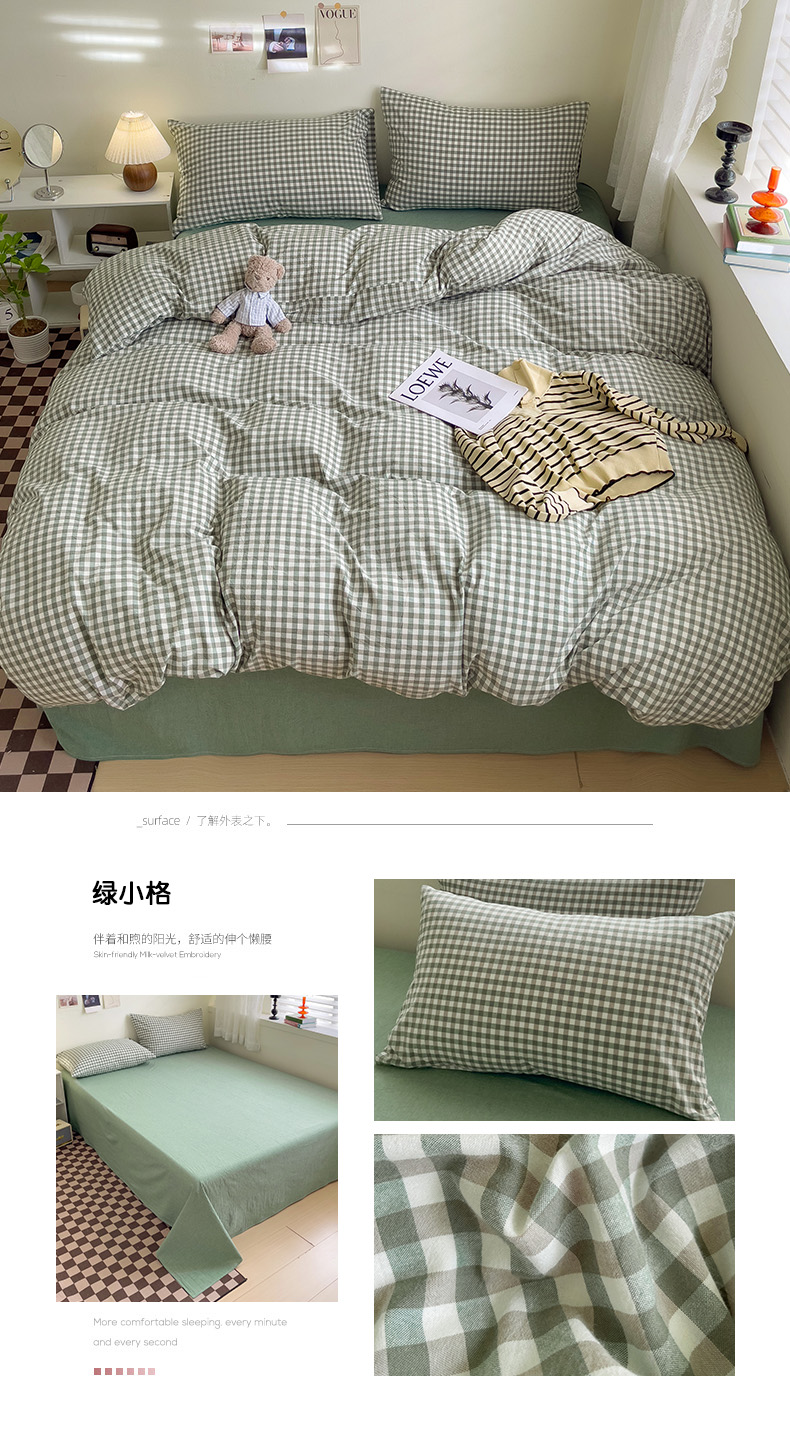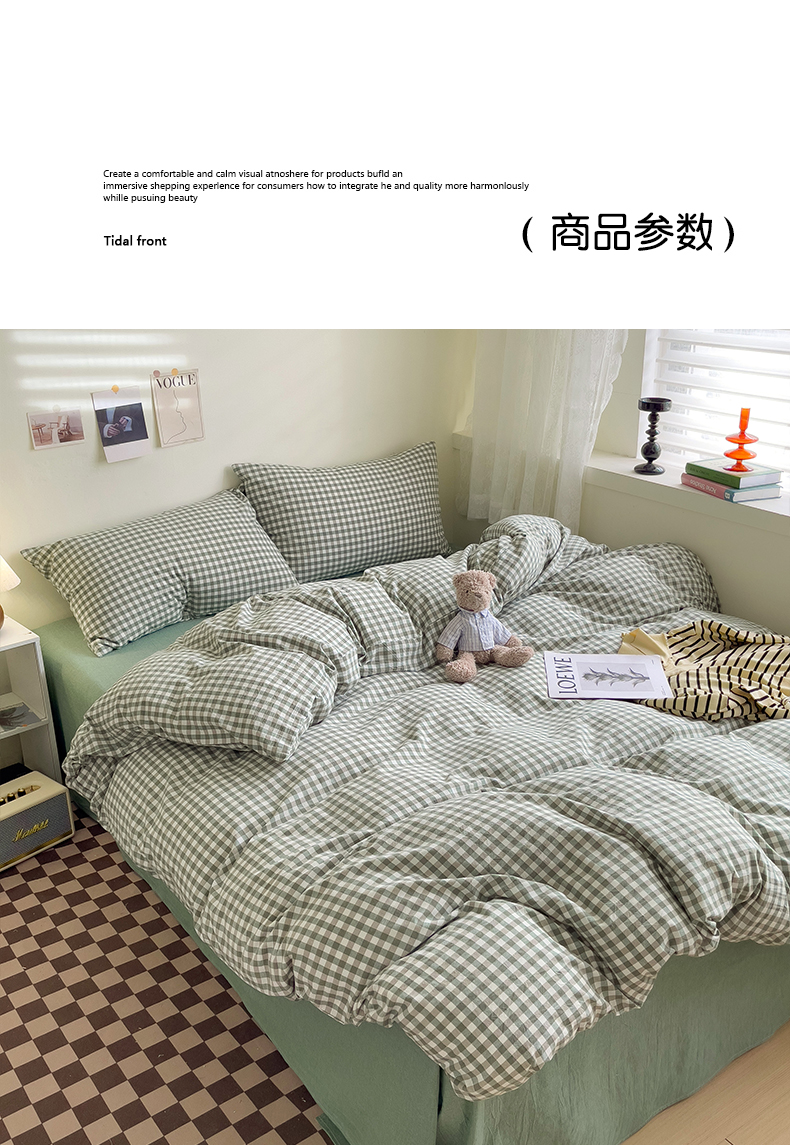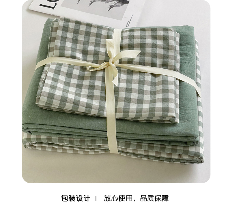 当前位置: 91家纺网 > 商品网购 > 床品套件 > 四件套 > 全棉普通四件套 > 大柏树 2025新款A类色织全棉水洗棉单品系列-四件套 绿小格