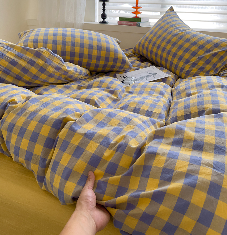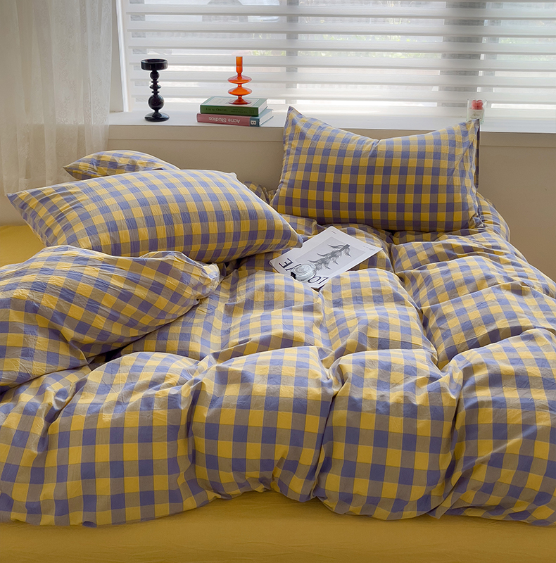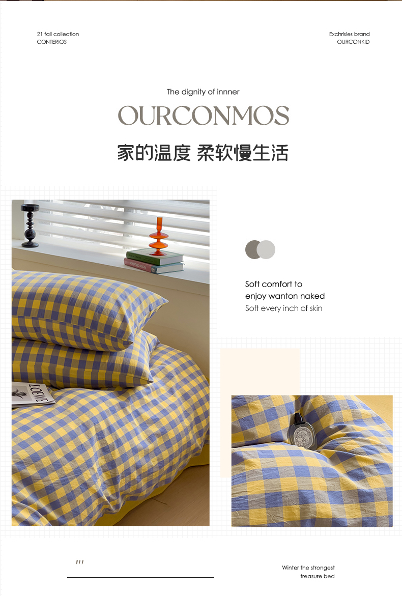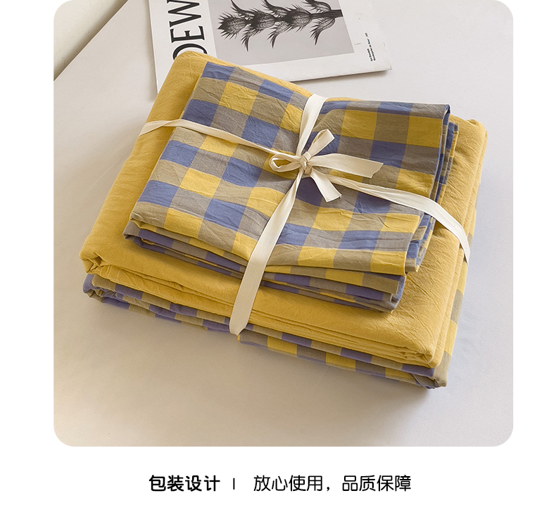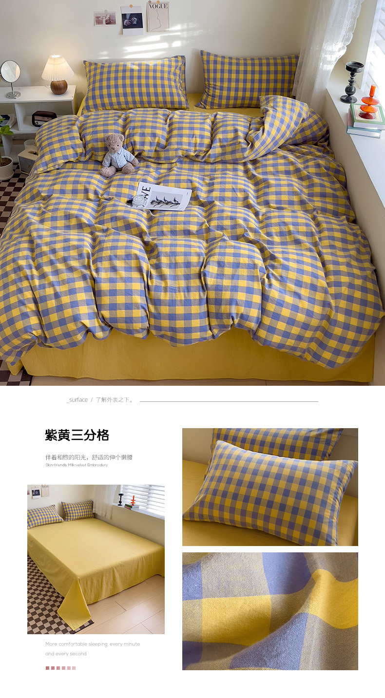 当前位置: 91家纺网 > 商品网购 > 床品套件 > 四件套 > 全棉普通四件套 > 大柏树 2025新款A类色织全棉水洗棉单品系列-四件套 紫黄三分格