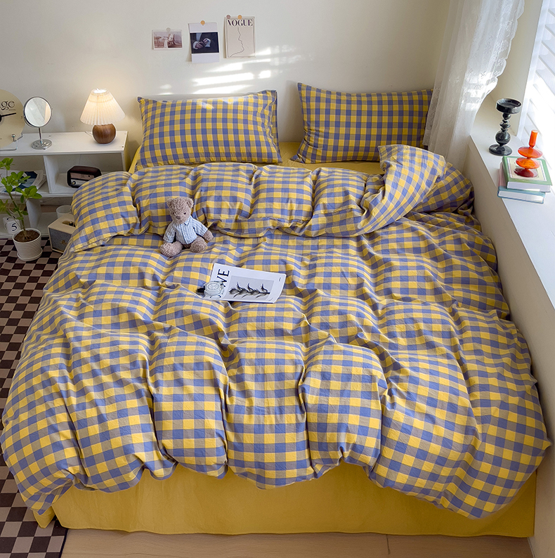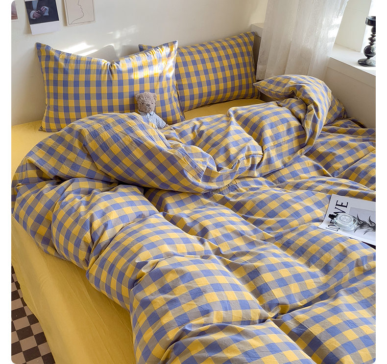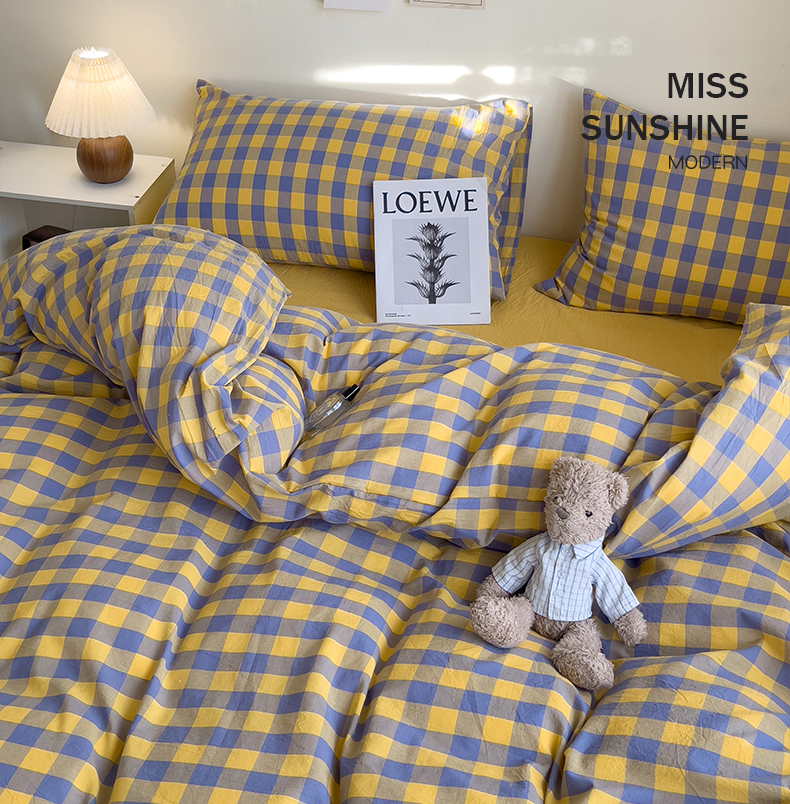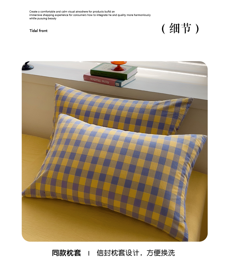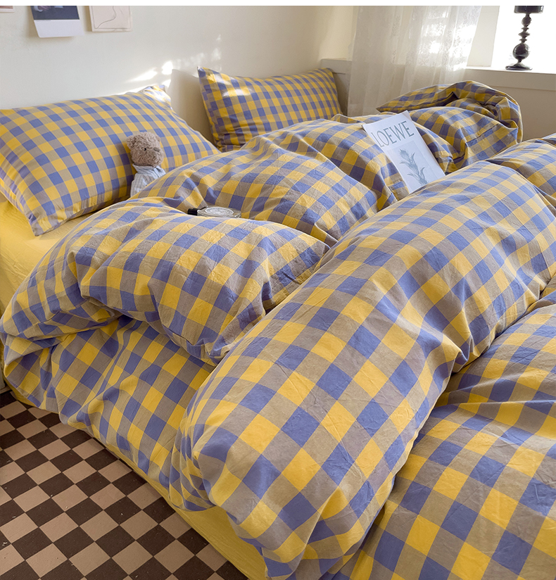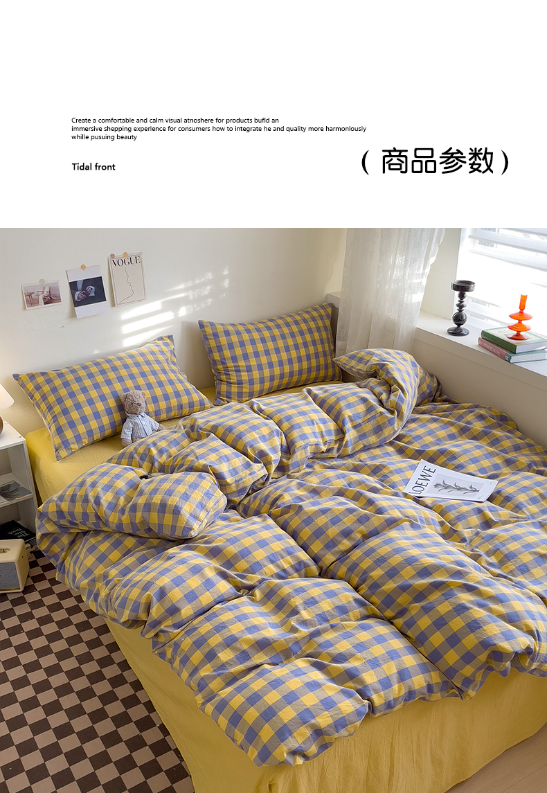 当前位置: 91家纺网 > 商品网购 > 床品套件 > 四件套 > 全棉普通四件套 > 大柏树 2025新款A类色织全棉水洗棉单品系列-四件套 紫黄三分格