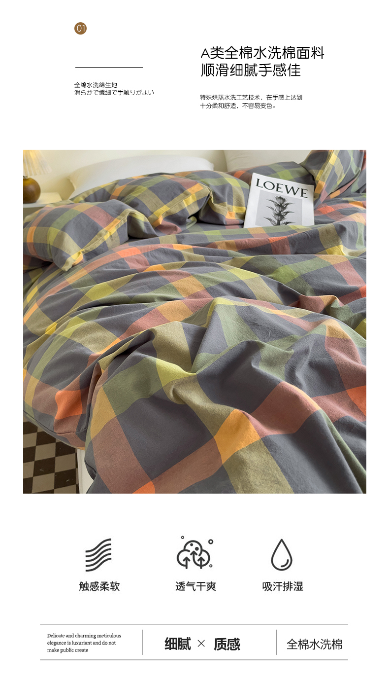 (总)大柏树 2025新款全棉水洗棉套件-床笠四件套,艾莎绿小格,春野咖,春野兰,春野玉,绿紫中格,洛伊粉咖小格,莫妮卡,诺卡,日落红,日落灰,云素红,云岫粉咖,云岫绿咖