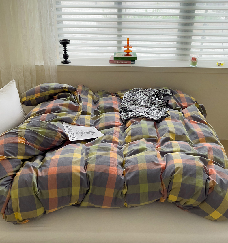 (总)大柏树 2025新款A类色织全棉水洗棉无印风四件套床单被套枕套,粉灰小格,黑白中格,黄粉三分格,灰细条,简兮兰,蓝大格,蓝黄三分格,蓝灰中格,蓝细条,流年灰,绿大格,绿灰小格,绿小格,米小格,牛油果大格,浅蓝小格,如意玉,森林桔,斯诺克,小冰激凌,英伦桔,英伦蓝,紫粉三分格,紫黄三分格