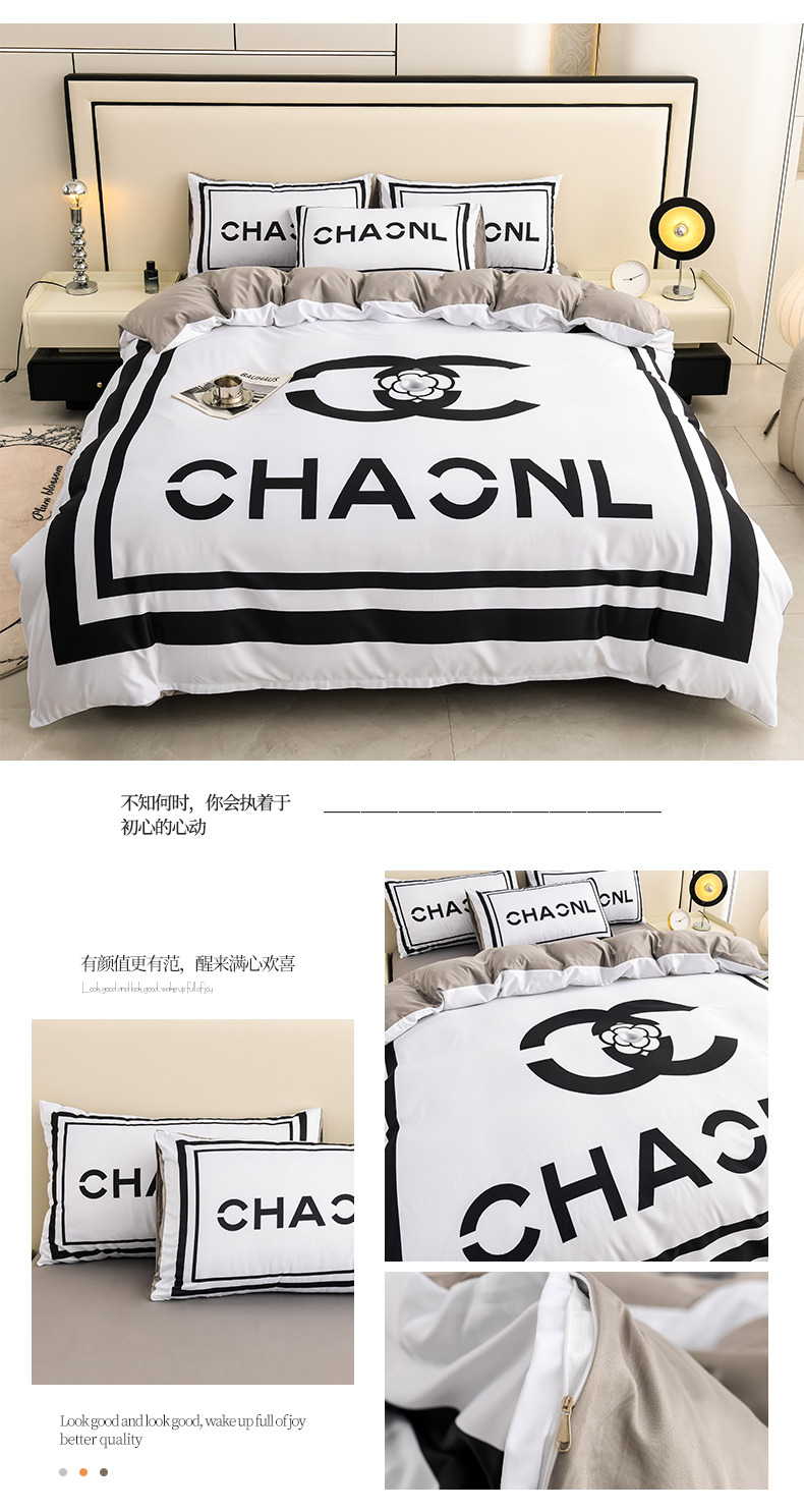 (总)色鬼布艺高端家居主号 2025新款轻奢亲肤纯棉数码印花网红热款四件套,豹纹香,白金V,白香花,大H,黑白迪,黑白V,灰迪,咖古,克莱因,慕斯小姐,山茶花,星空