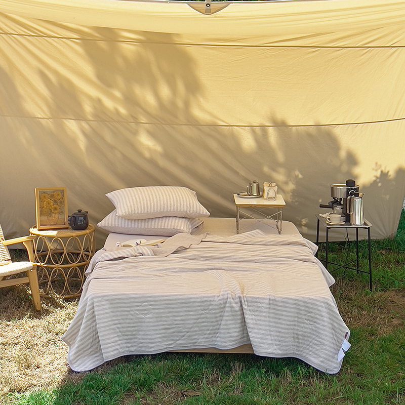 简煦家居 2025新款可水洗全棉棉花被子夏季家用空调被芯 浅咖中条