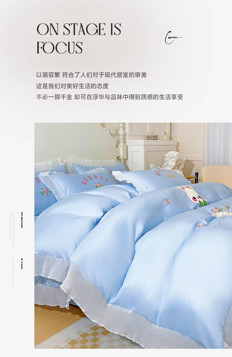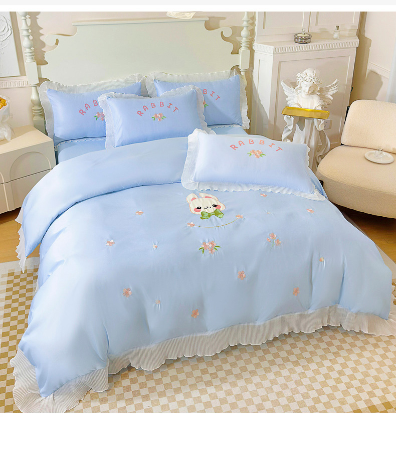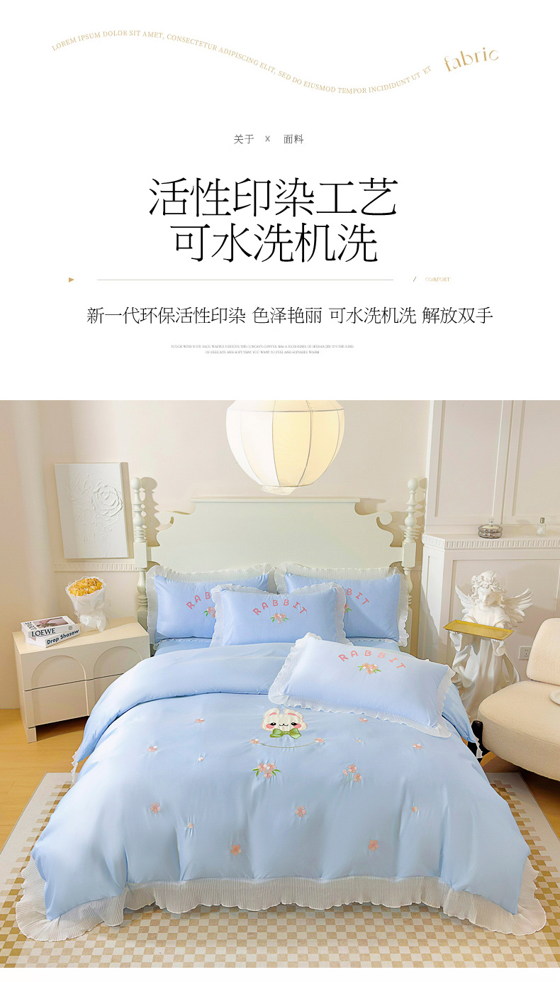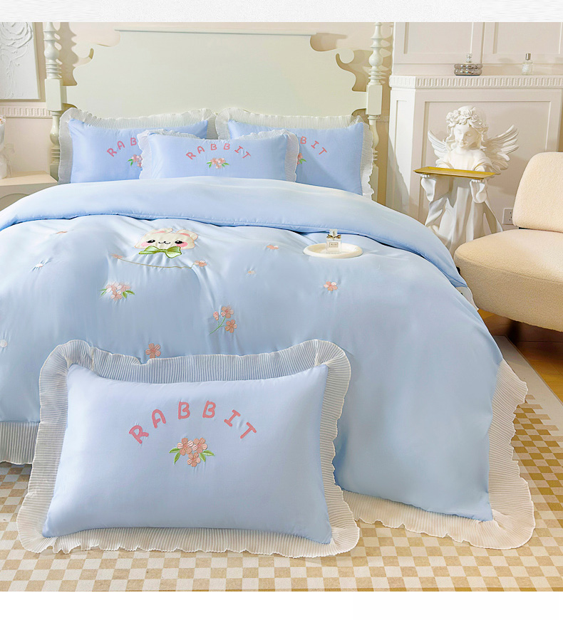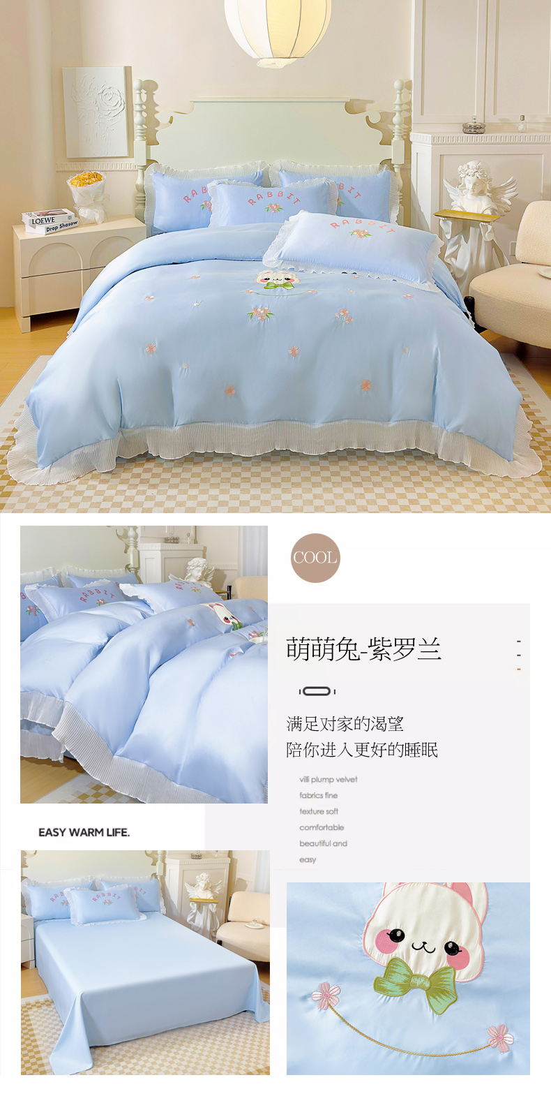 当前位置: 91家纺网 > 商品网购 > 床品套件 > 四件套 > 全棉普通四件套 > 菲儿家纺 2024新款水洗真丝花边刺绣四件套-萌萌兔系列 萌萌兔-紫罗兰