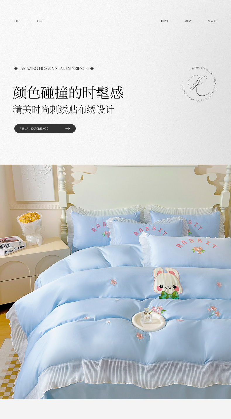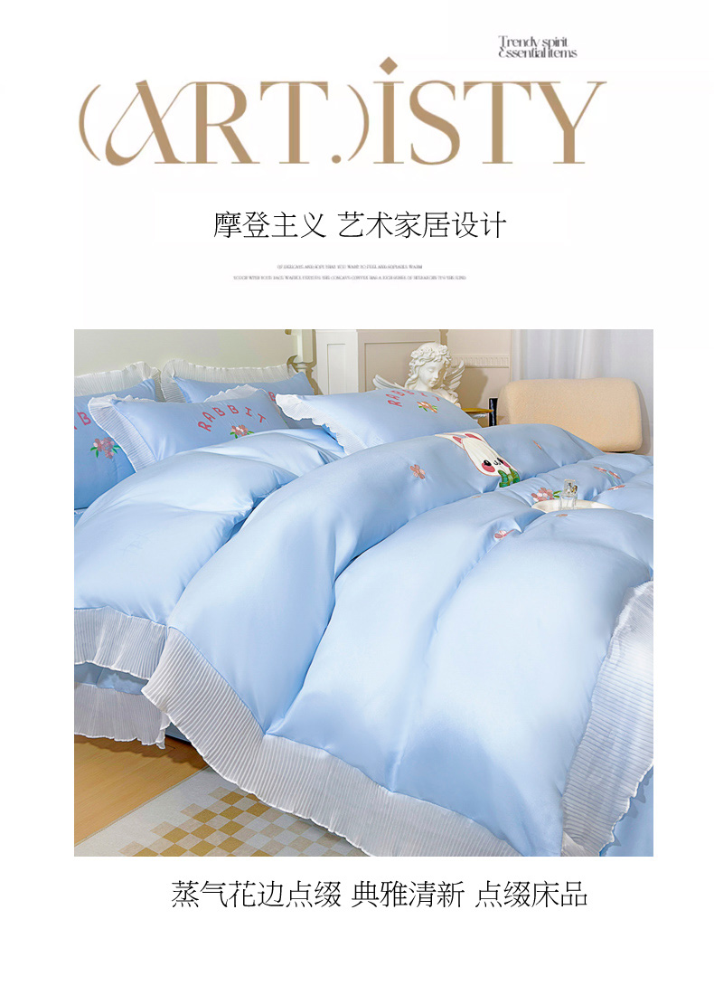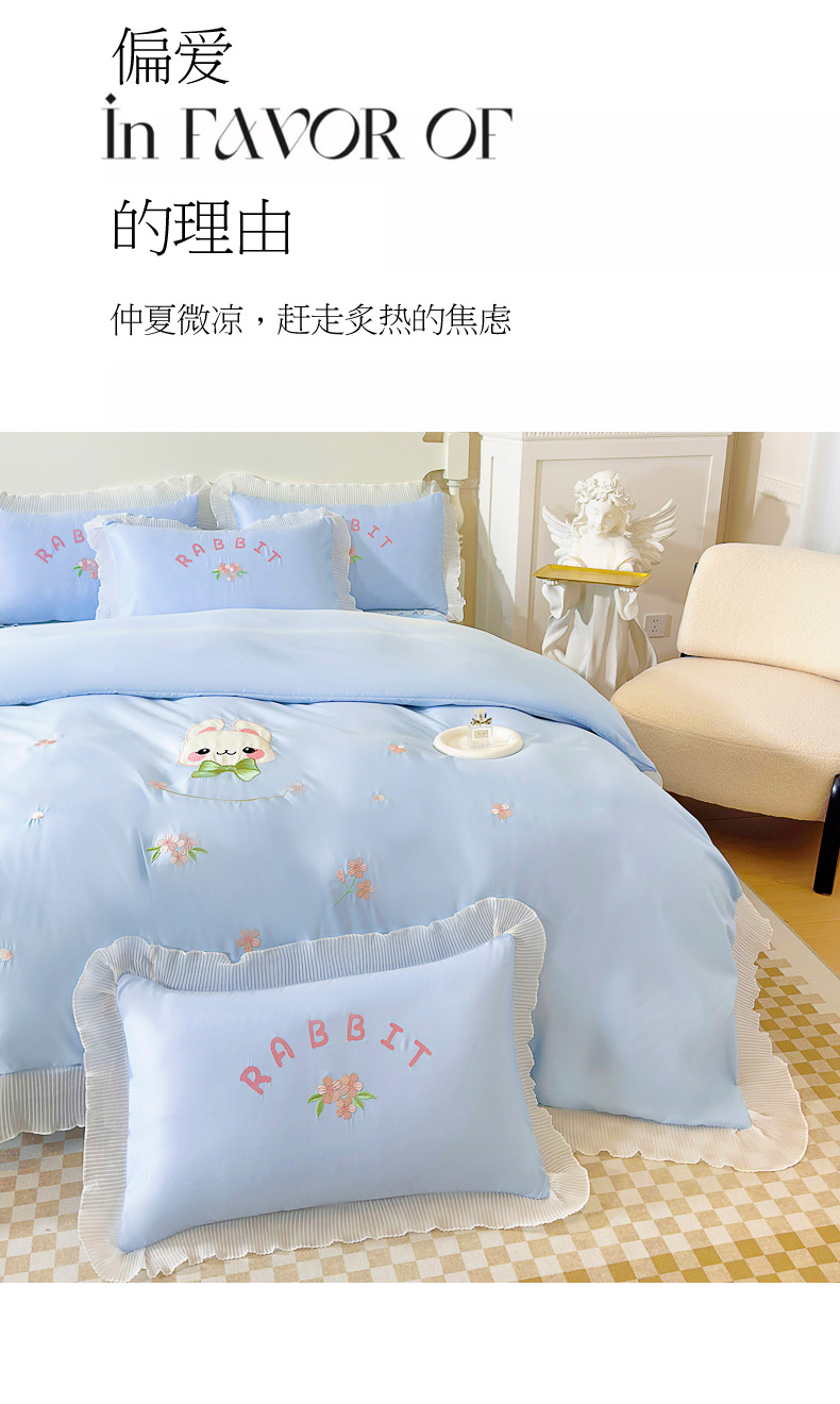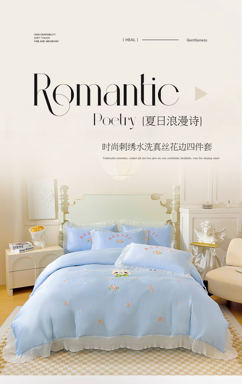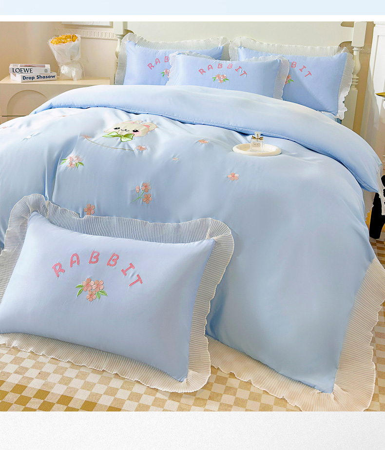 当前位置: 91家纺网 > 商品网购 > 床品套件 > 四件套 > 全棉普通四件套 > 菲儿家纺 2024新款水洗真丝花边刺绣四件套-萌萌兔系列 萌萌兔-紫罗兰