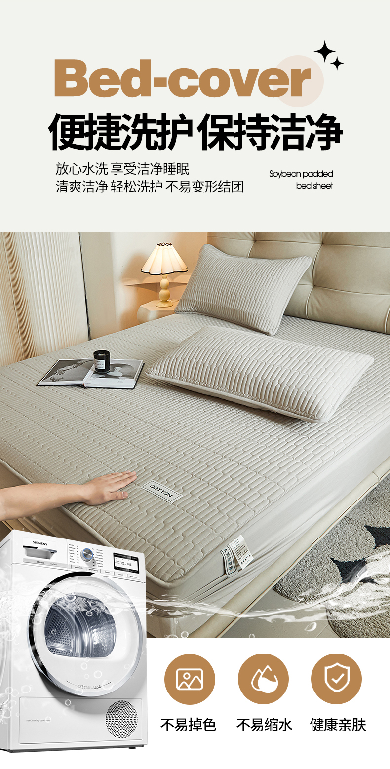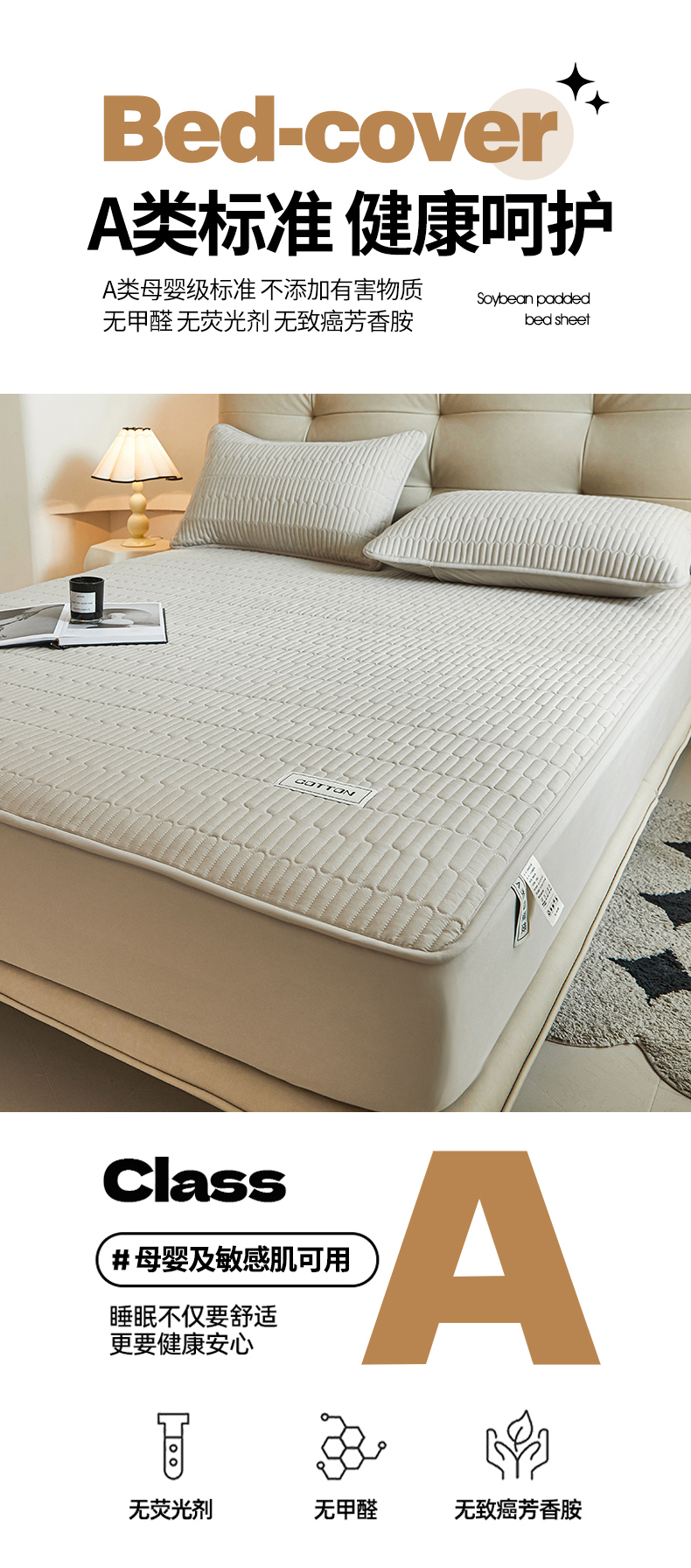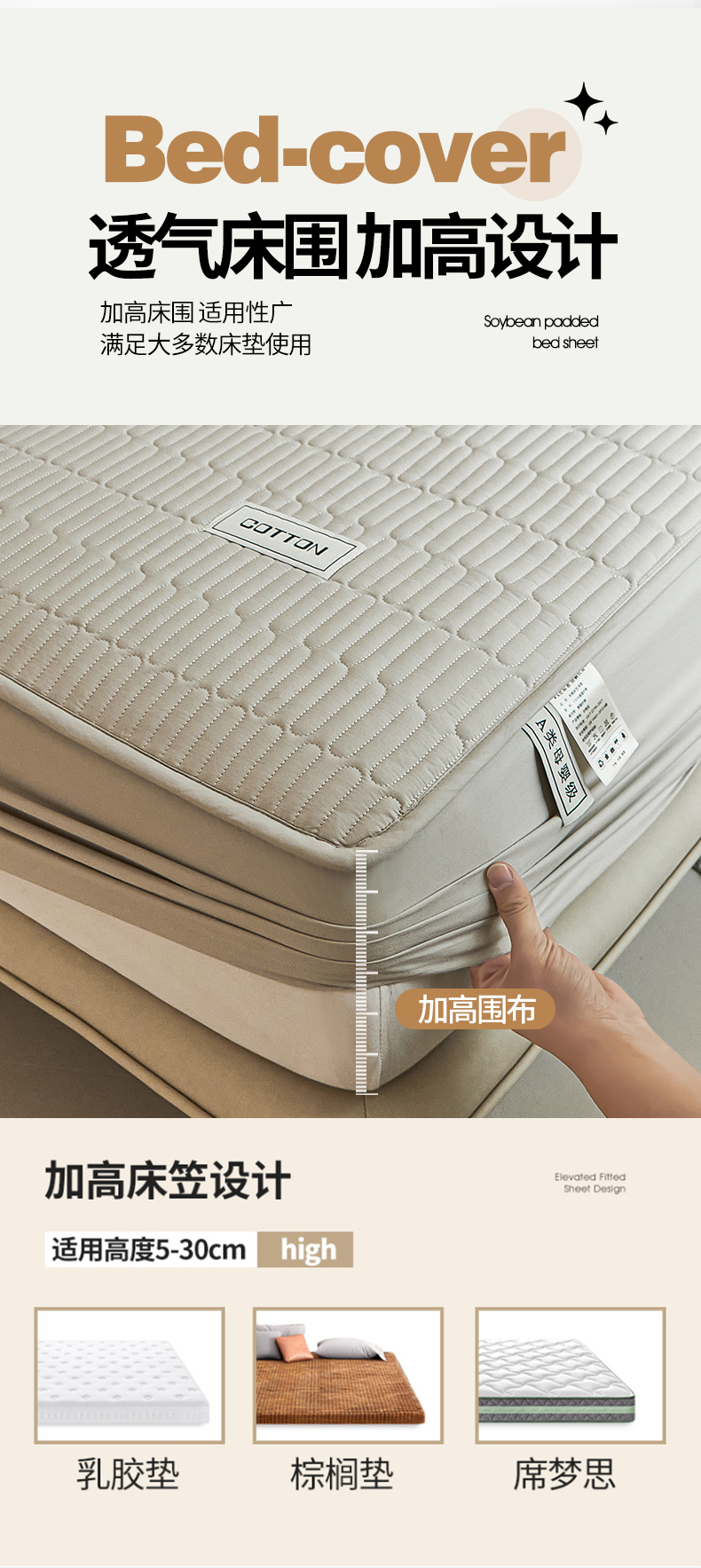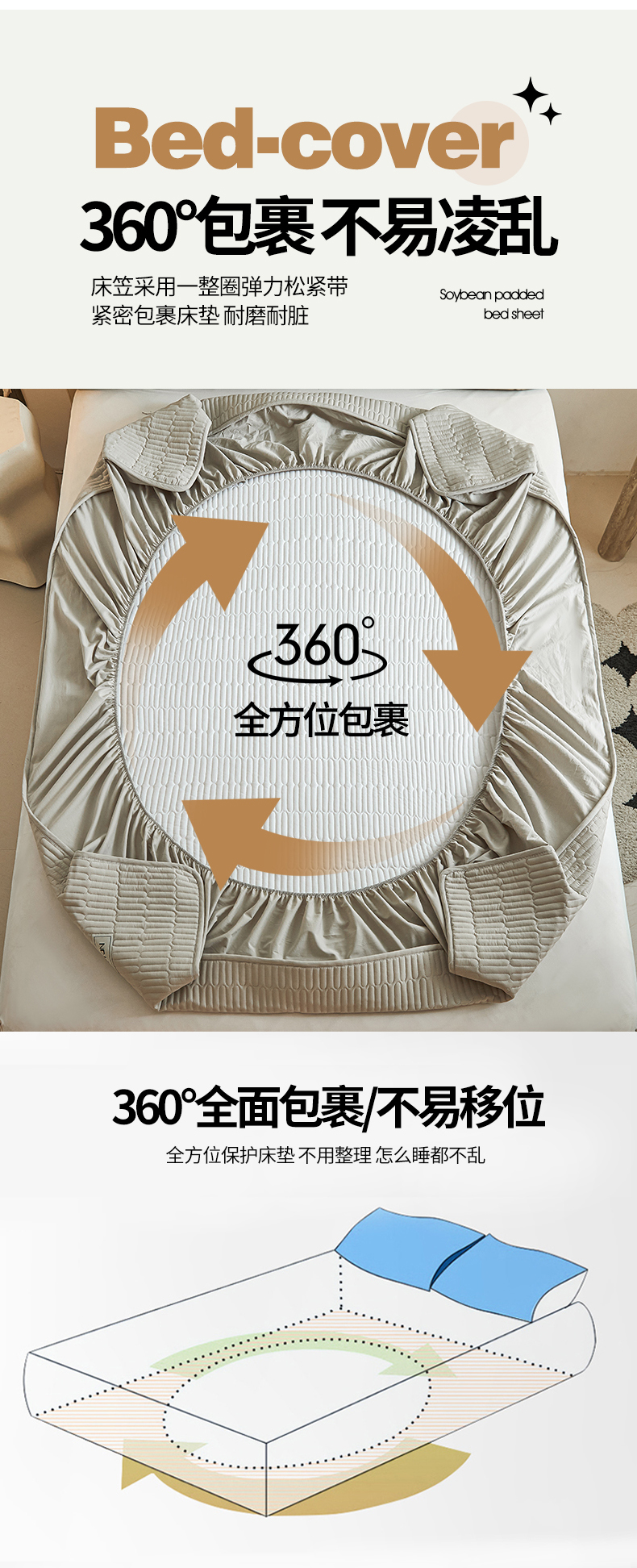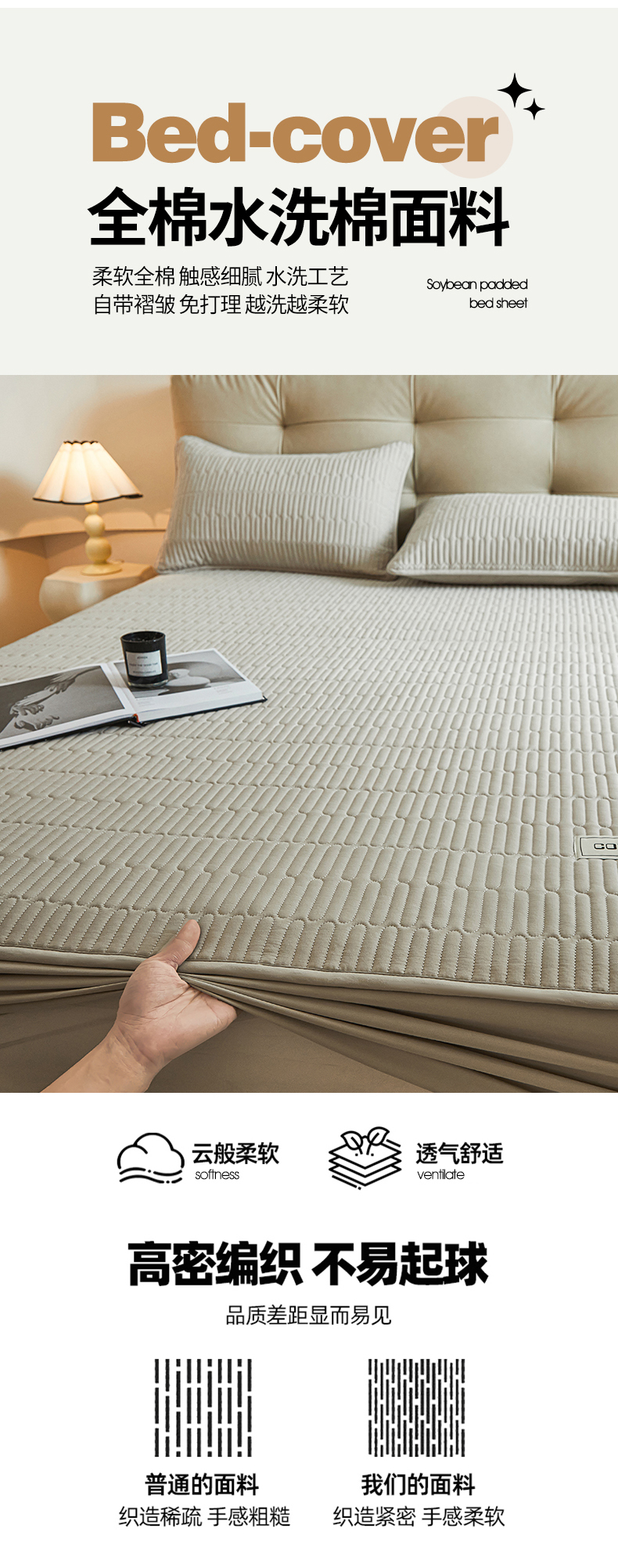 3C 2024新款A类全棉水洗棉大豆夹棉床笠-初忆 初忆-烟雾灰