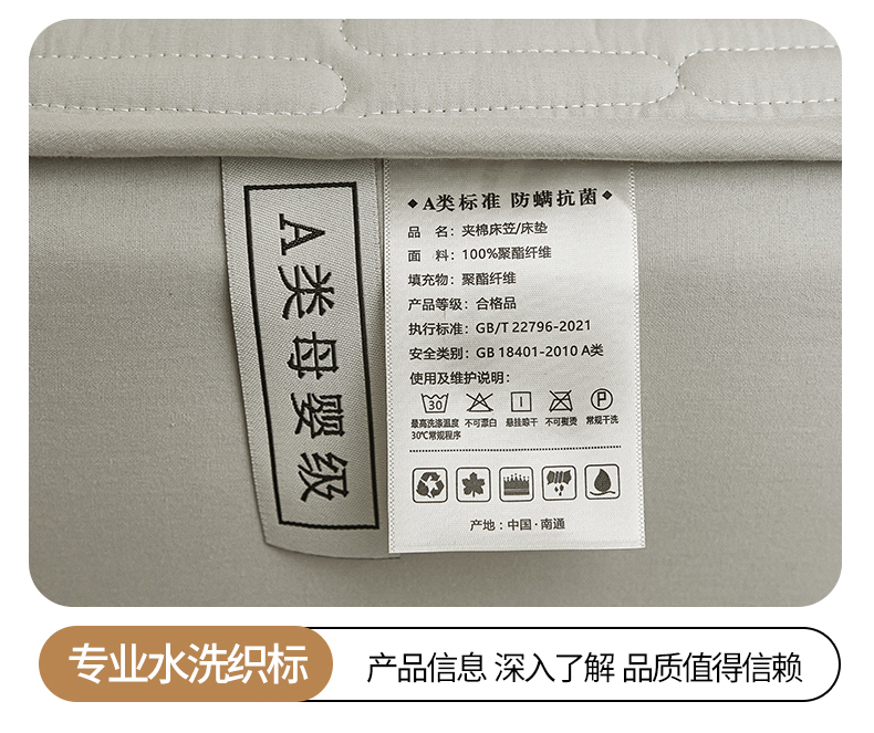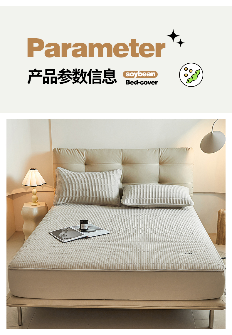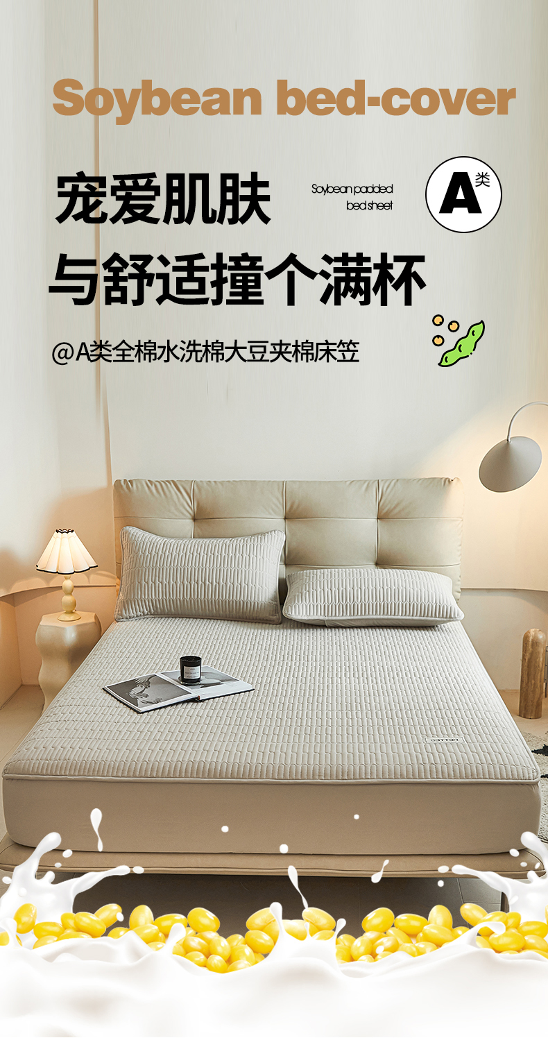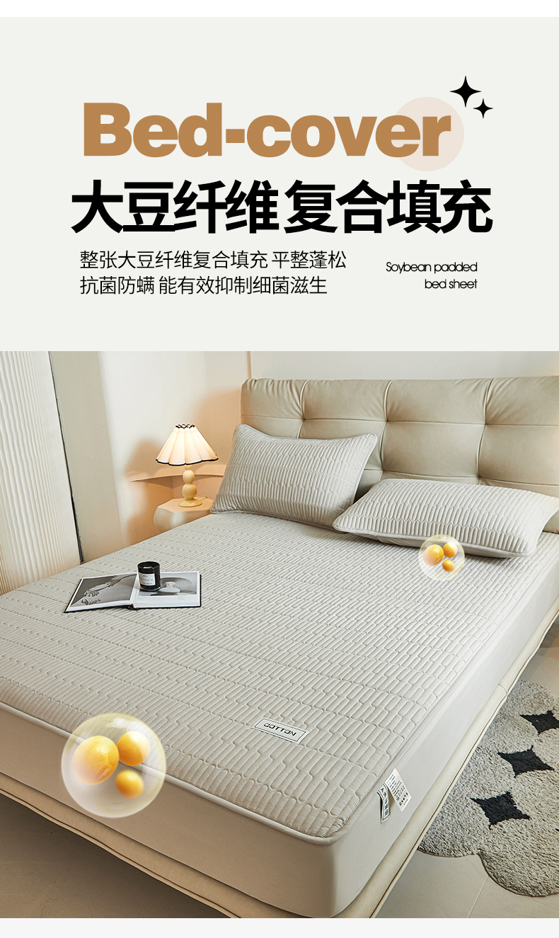 • 91家纺网 家纺一手货源 找家纺 3C 2024新款A类全棉水洗棉大豆夹棉床笠-初忆 初忆-烟雾灰