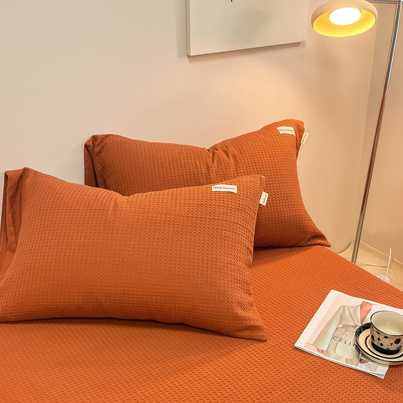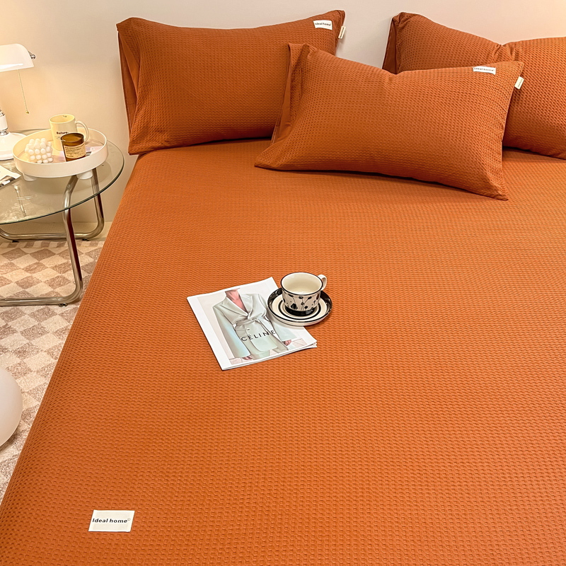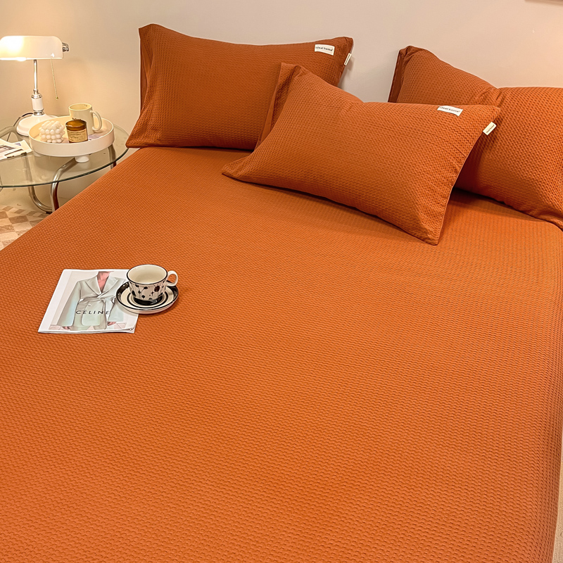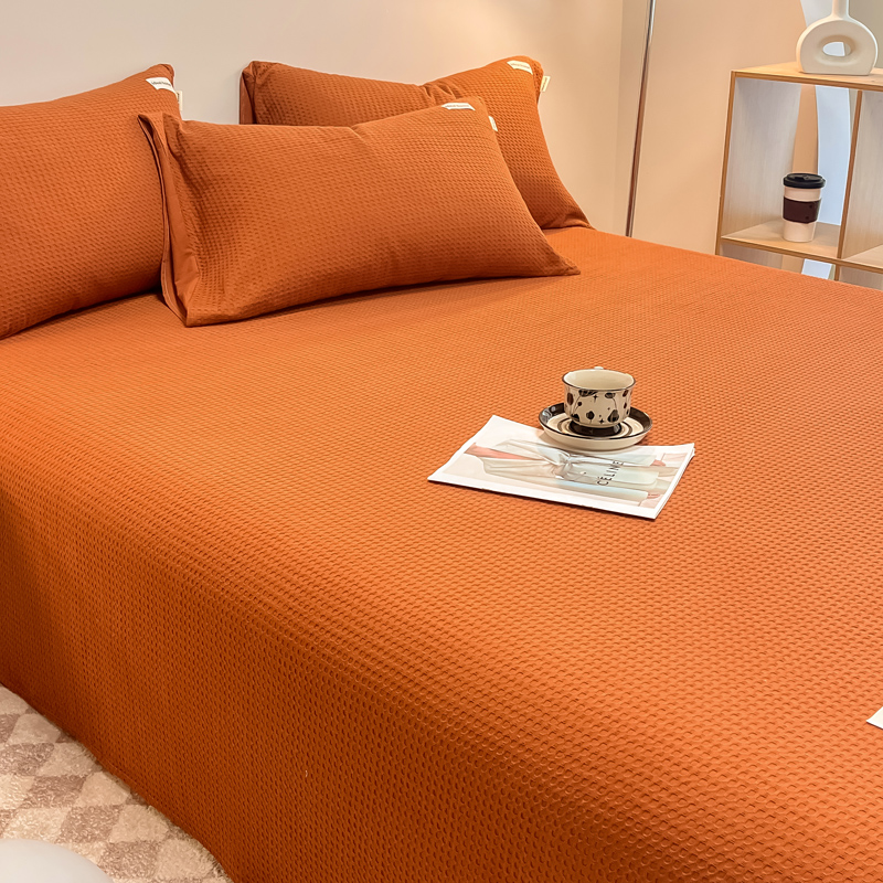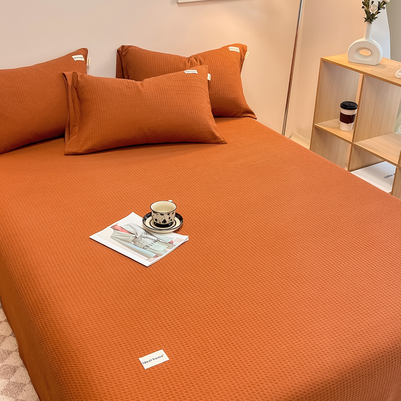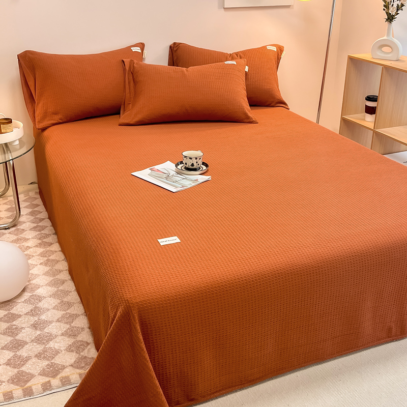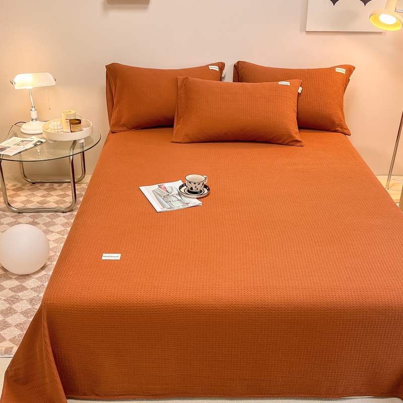 2024沐辰家居-华夫格系列床单单品 火焰橙
