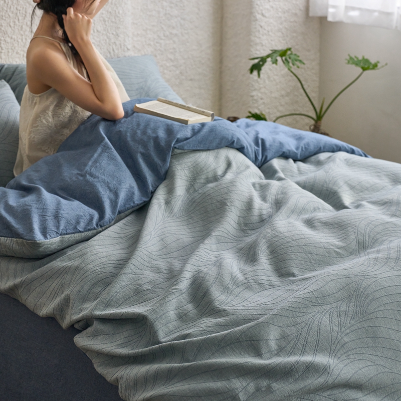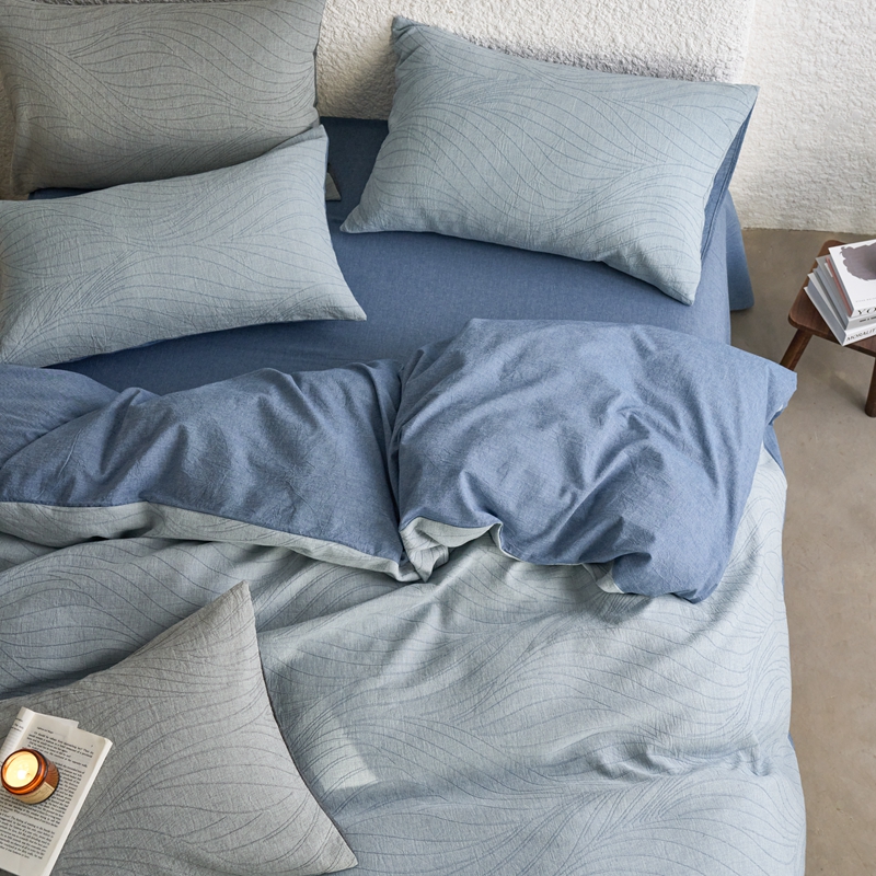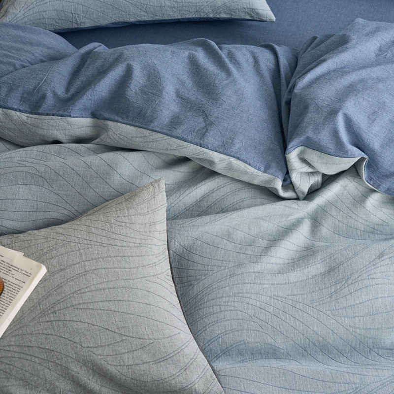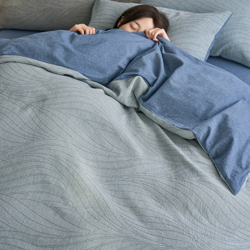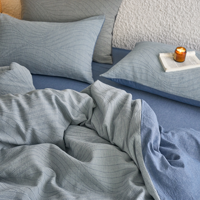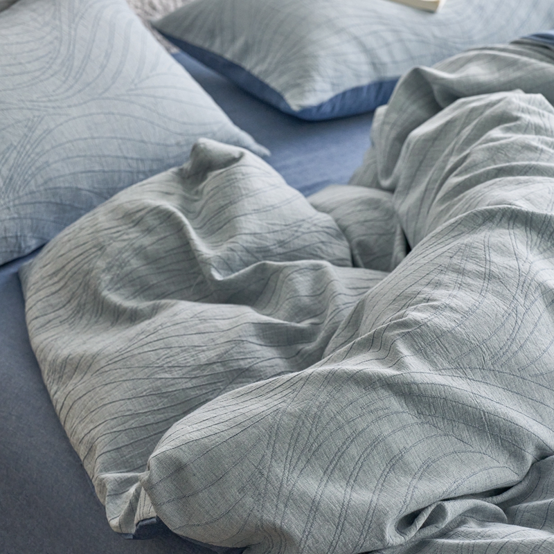 商品名称:安莱生活 2025新款双层纱色织提花波浪系列四件套 乱纹波浪 乱纹波浪-深蓝