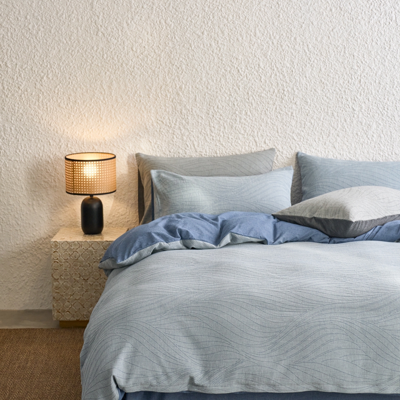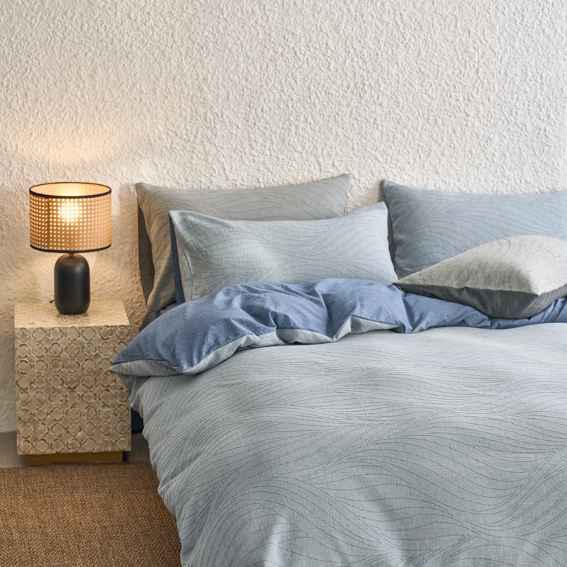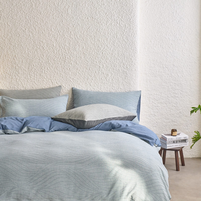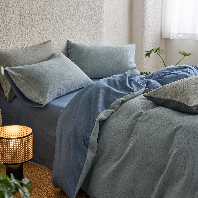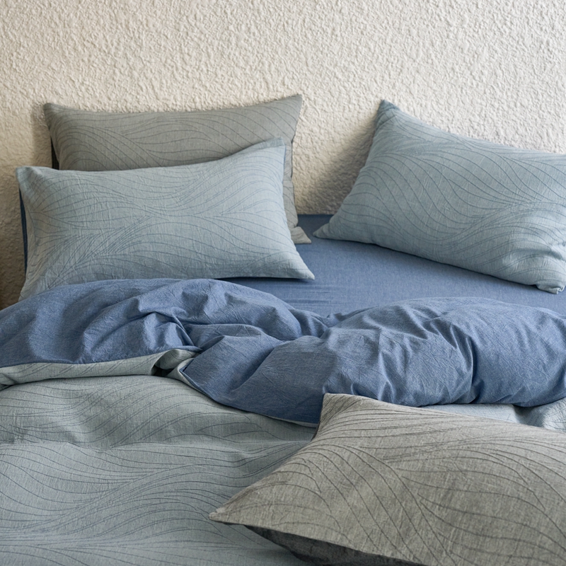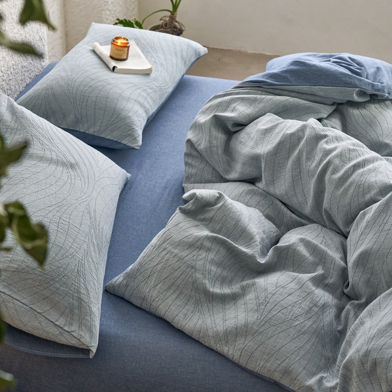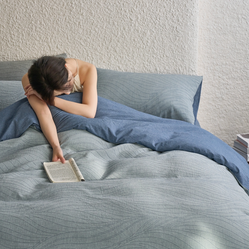 商品名称:安莱生活 2025新款双层纱色织提花波浪系列四件套 乱纹波浪 乱纹波浪-深蓝