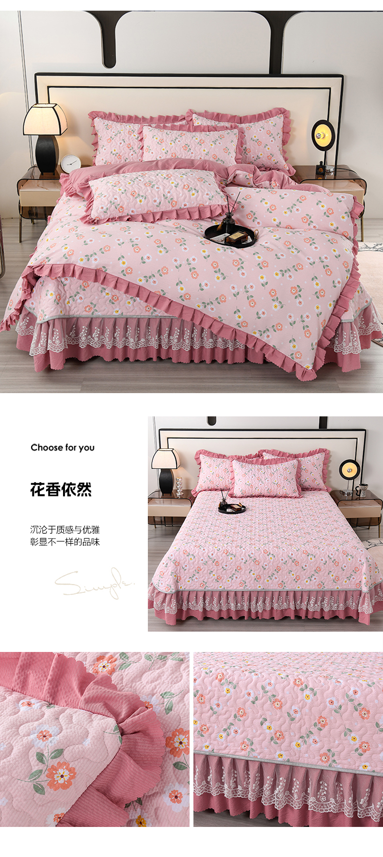 (总)艾裙海 2025新款90克磨毛夹棉绗缝床裙,粉色,大红色,米白色,深灰色,紫色,藏青色,宝蓝色,浅灰色,粉玉色,豆沙红