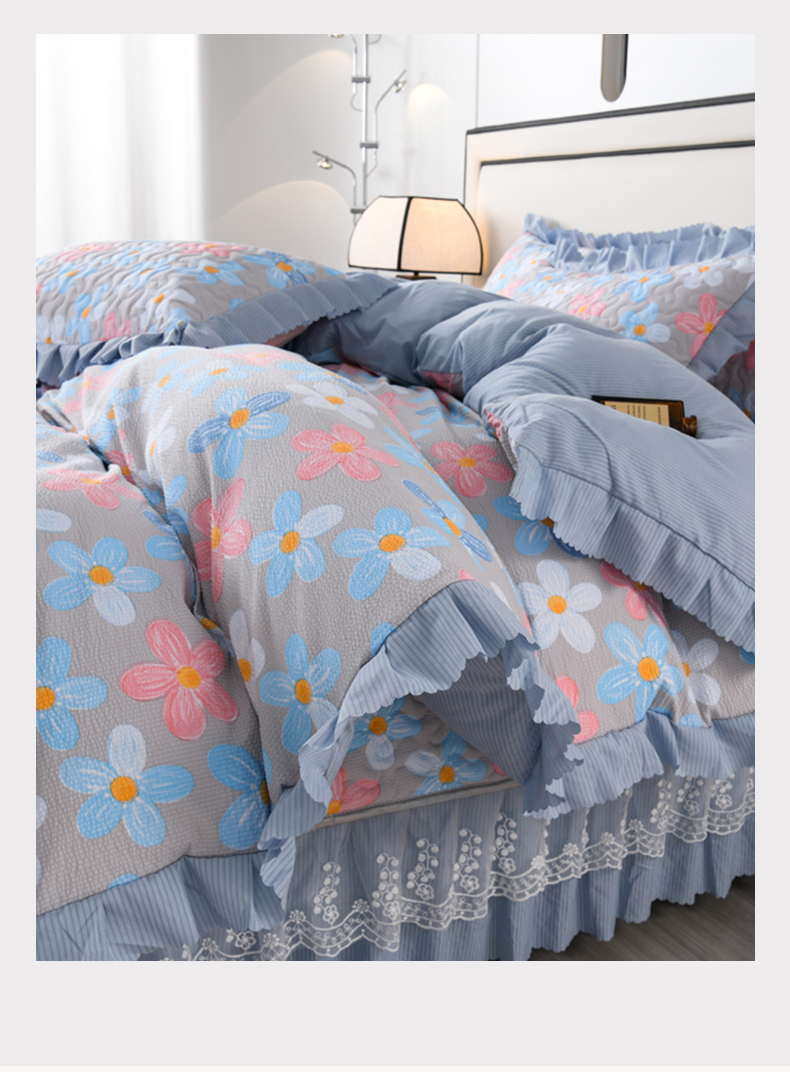 (总)艾裙海 2025秋冬新款木棉皱皱双层纱夹棉床裙系列四件套,百福蓝,繁华碟影,黑色波点,可爱小女孩,兰桂芳绿,盛夏光年,素碟吟,紫藤花语