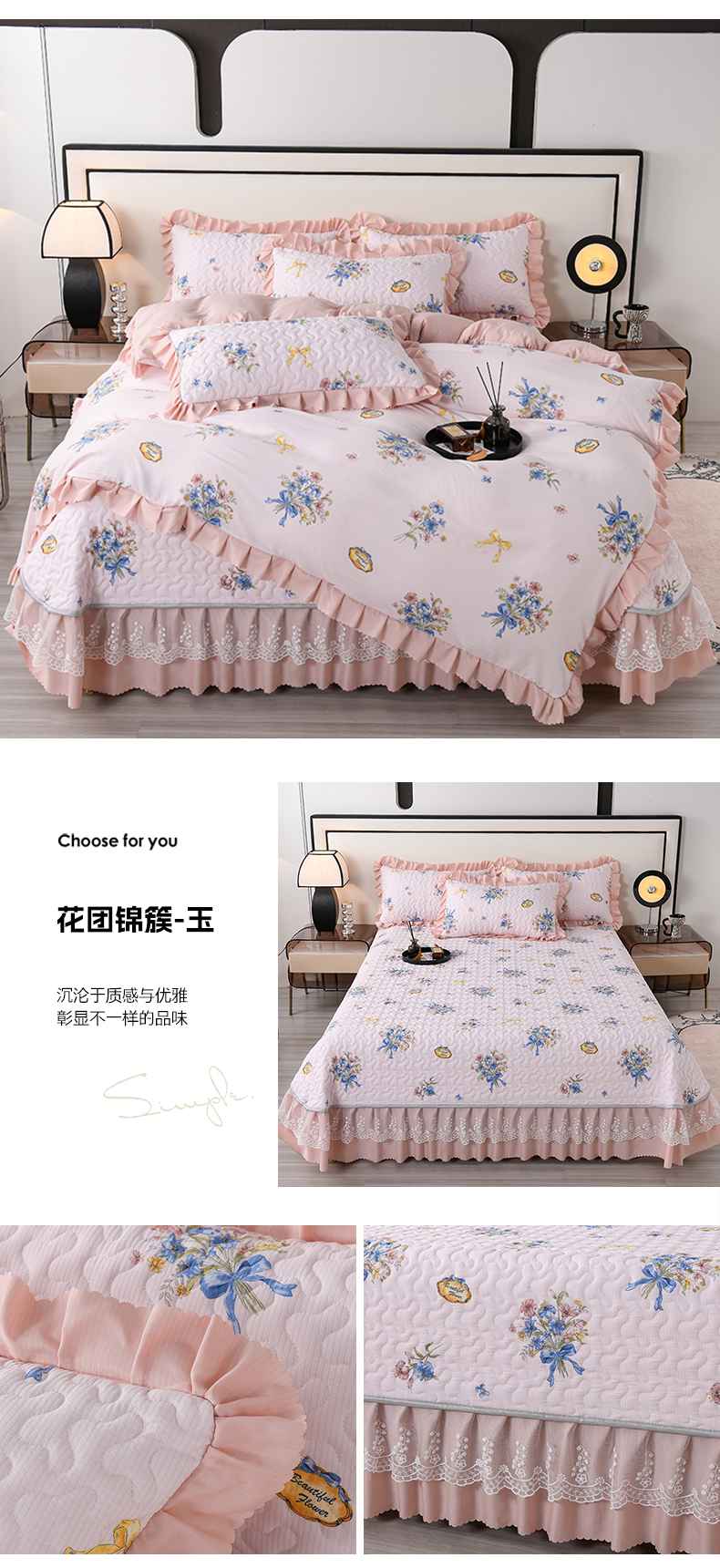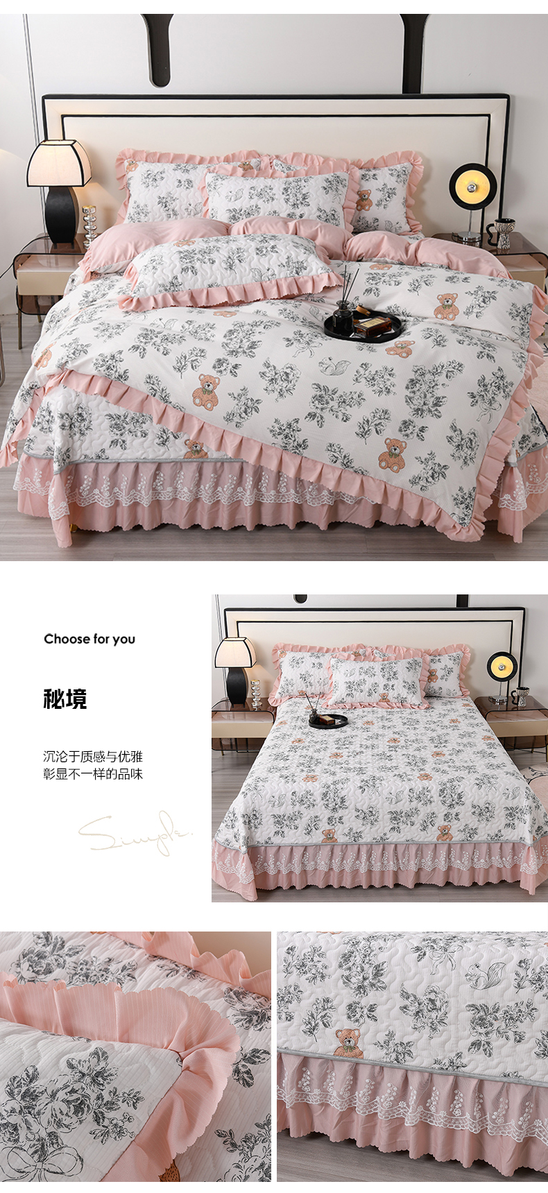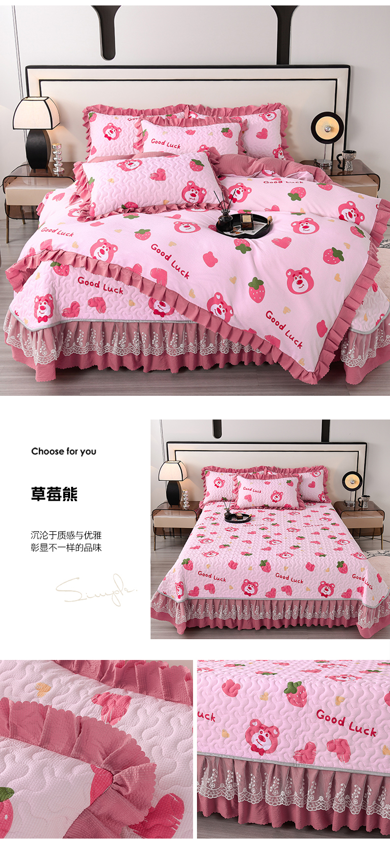 (总)艾裙海 2025新款蕾丝边牛奶绒床盖四件套,花间兔,米奇妹妹,朦胧格灰兰,花漾-紫,花间兔-绿,梦想家-绿,几何-灰,南瓜派-兰,樱桃之恋,七彩叶子