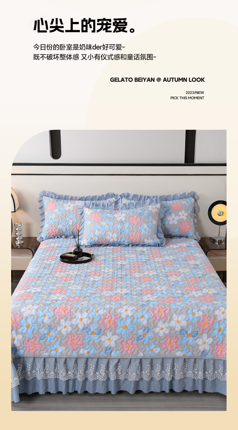 (总)艾裙海 2025秋冬新款木棉皱皱双层纱夹棉床裙系列单品床裙,百福蓝,繁华碟影,黑色波点,可爱小女孩,兰桂芳绿,盛夏光年,素碟吟,紫藤花语