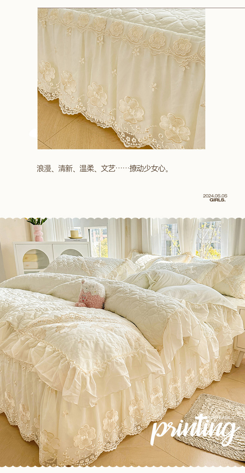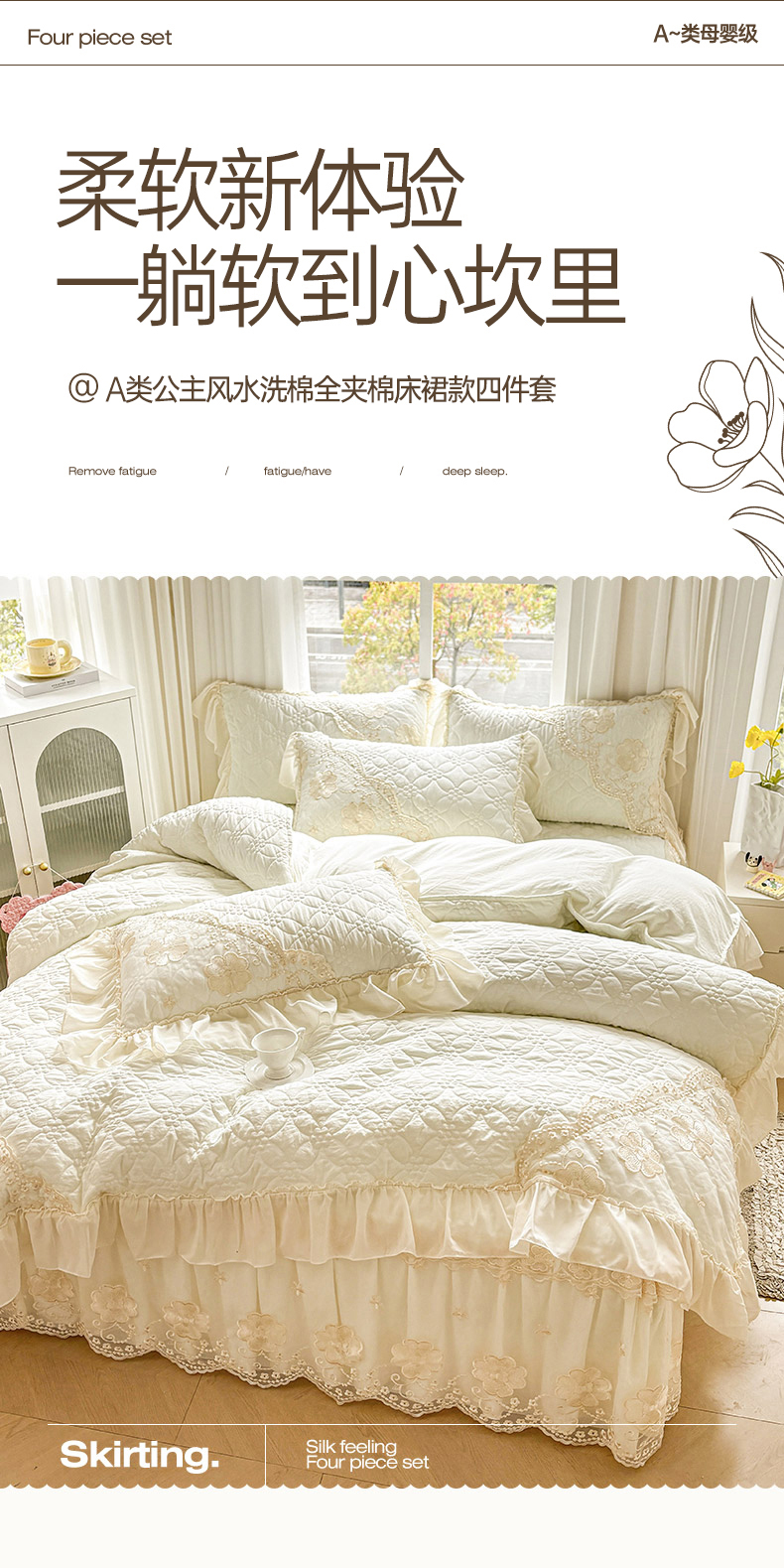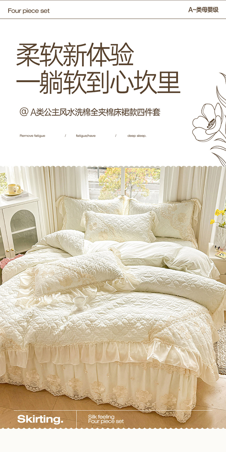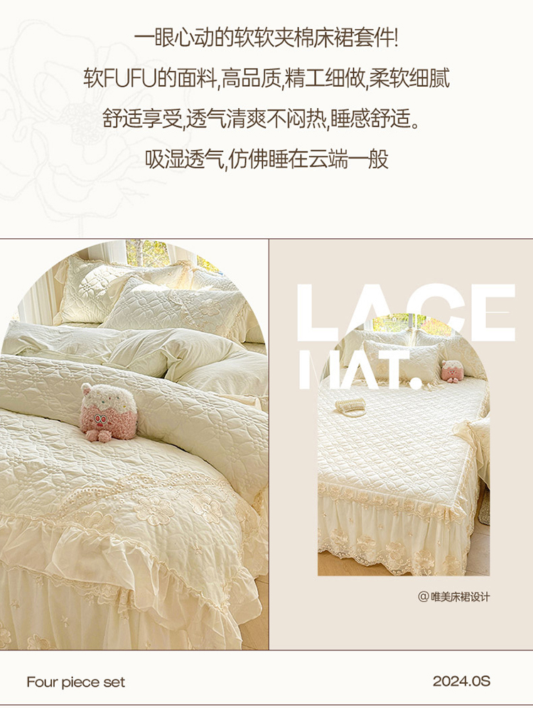 当前位置: 91家纺网 > 商品网购 > 床品套件 > 四件套 > 其它四件套 > 罗艺轩 2024新款公主风水洗棉夹棉床裙款四件套-浪漫满屋床 浪漫满屋-牛乳白