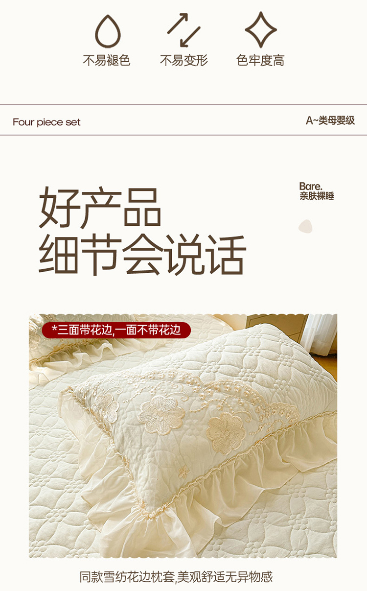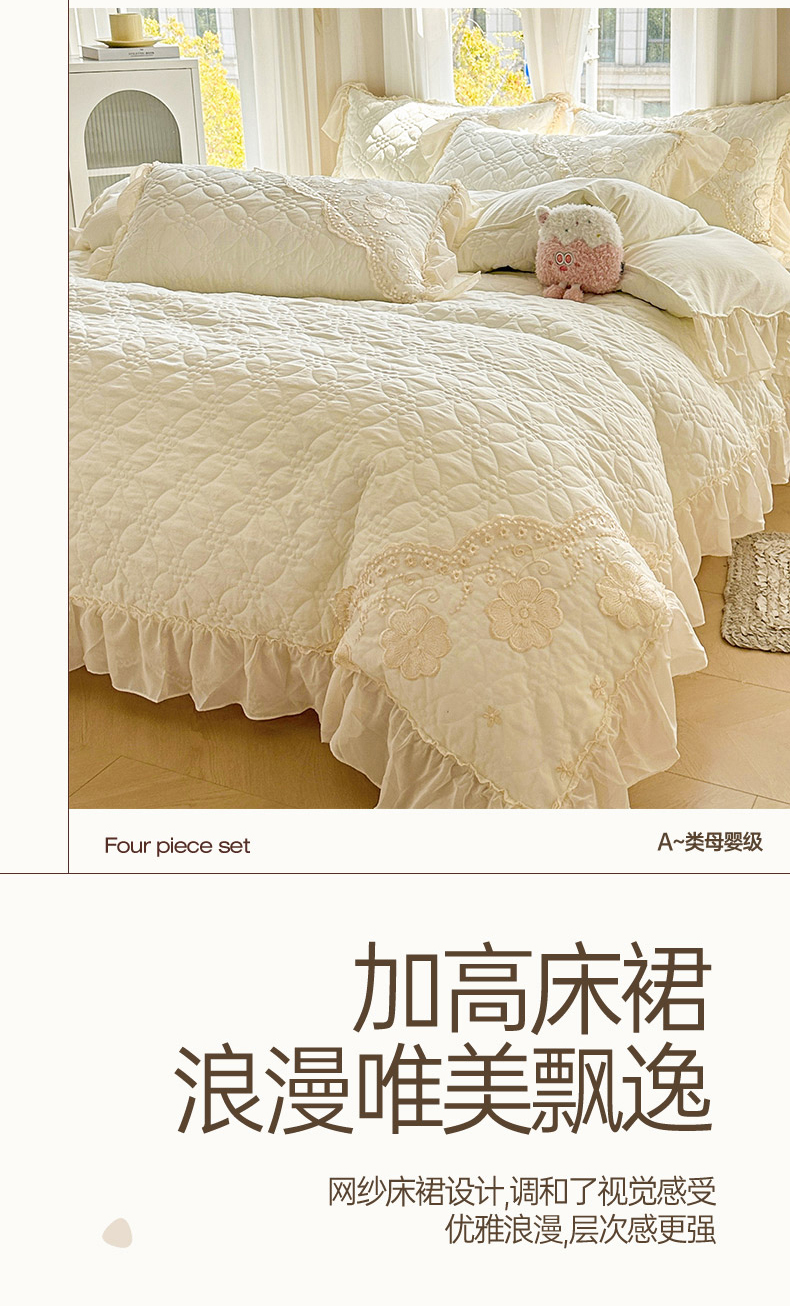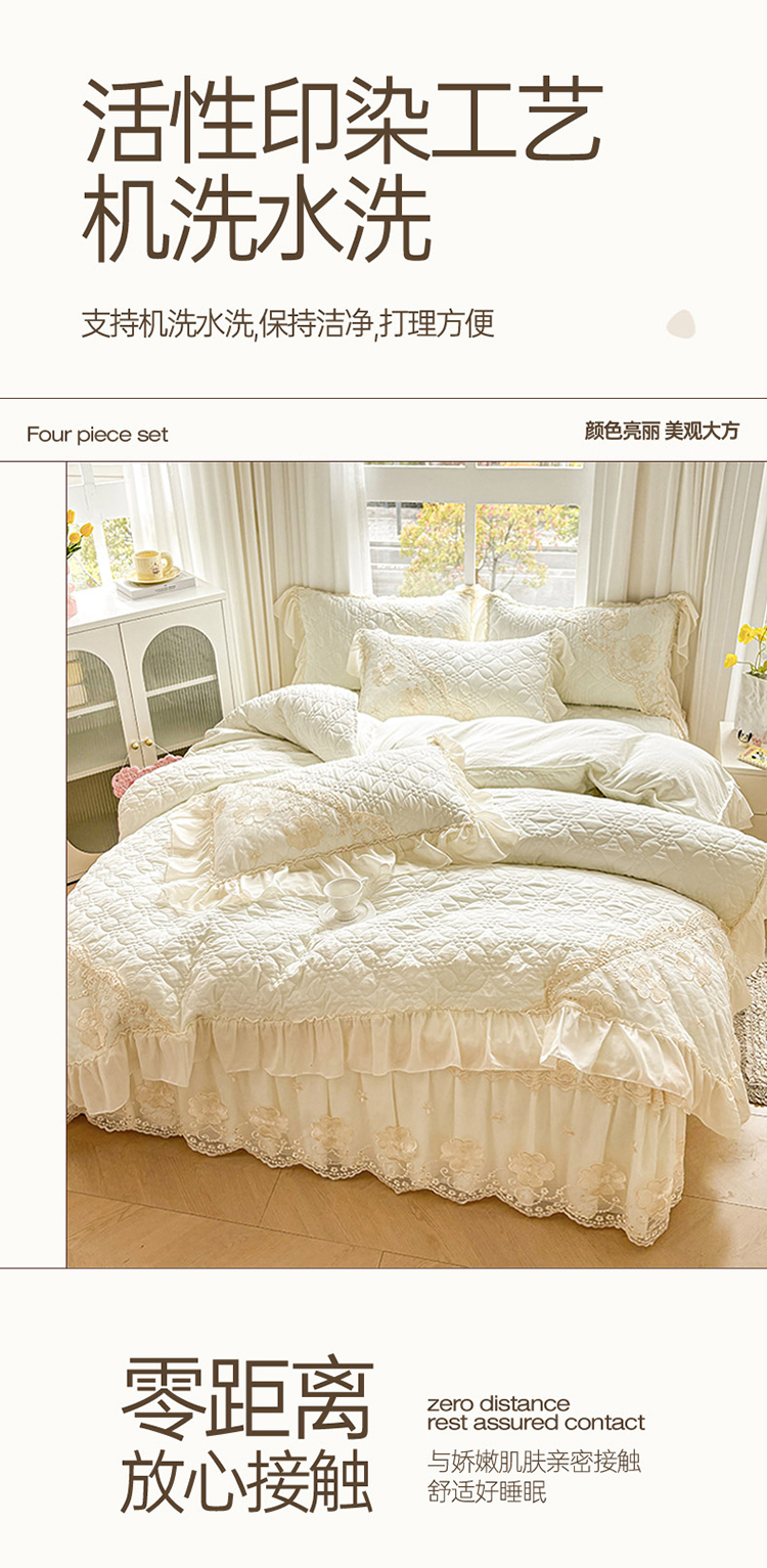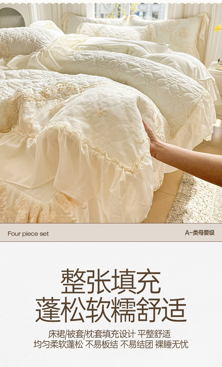 当前位置: 91家纺网 > 商品网购 > 床品套件 > 四件套 > 其它四件套 > 罗艺轩 2024新款公主风水洗棉夹棉床裙款四件套-浪漫满屋床 浪漫满屋-牛乳白