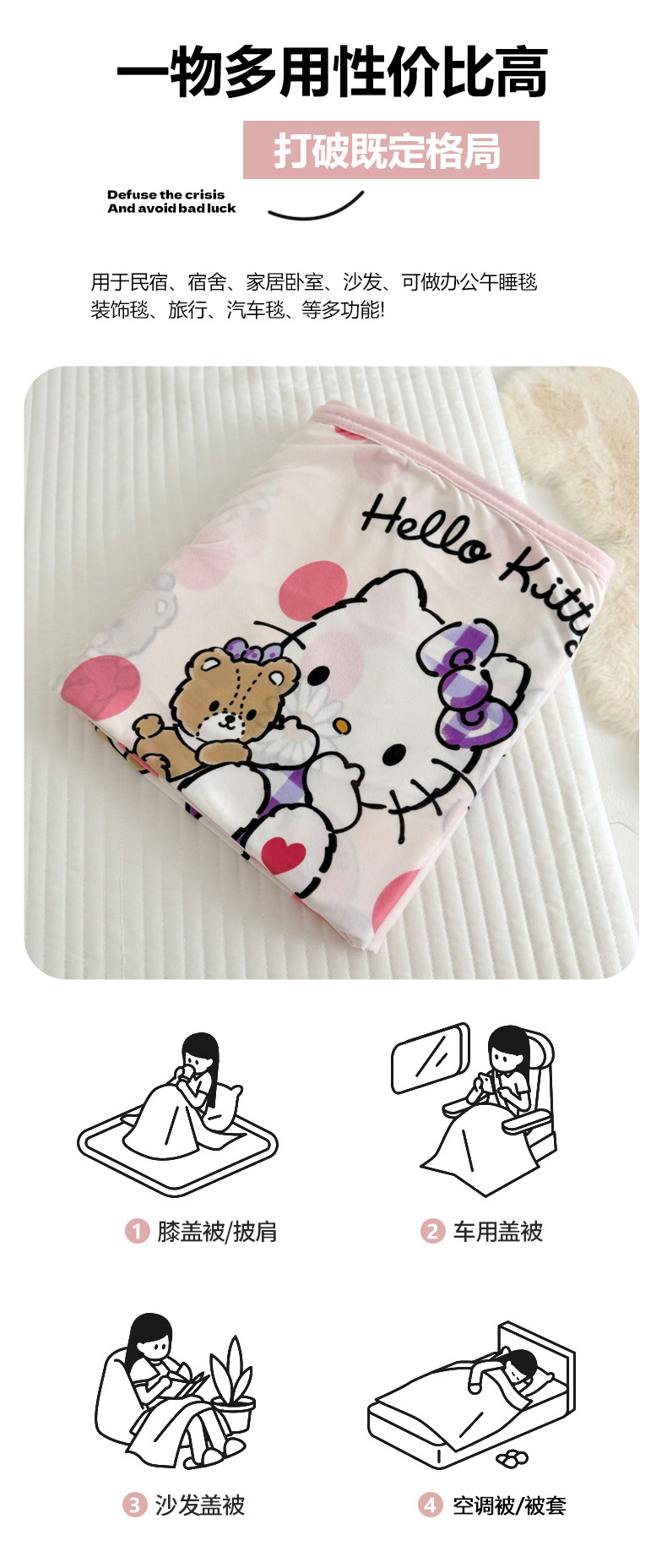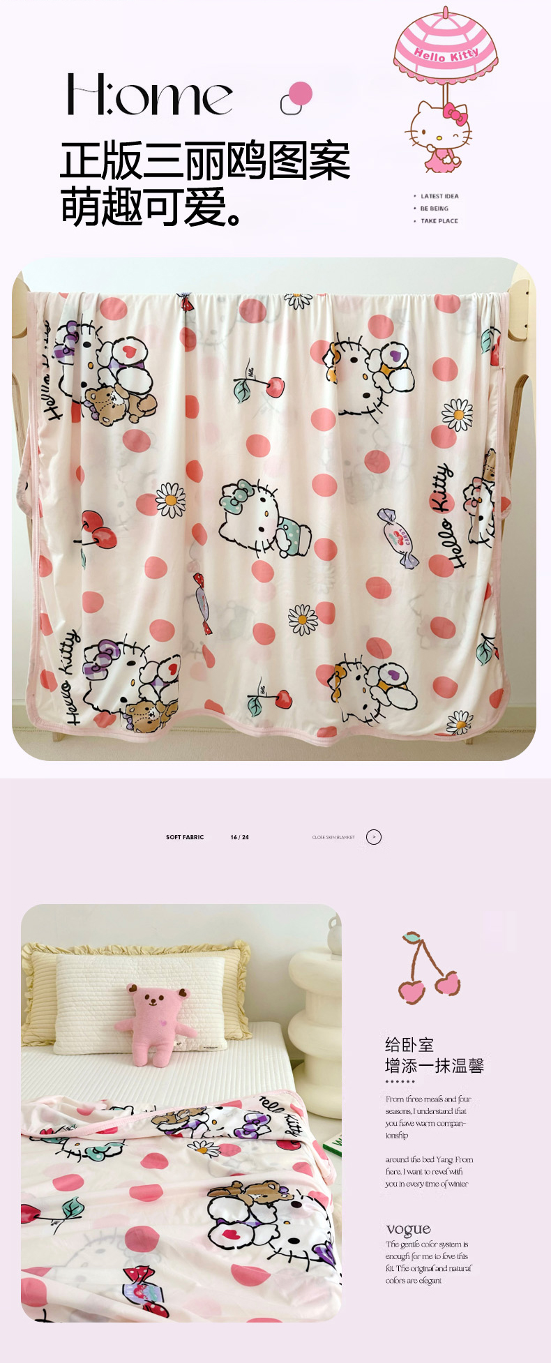 商品名称:鱼宝 2024新款三丽鸥正版授权针织盖毯 波点凯蒂猫
