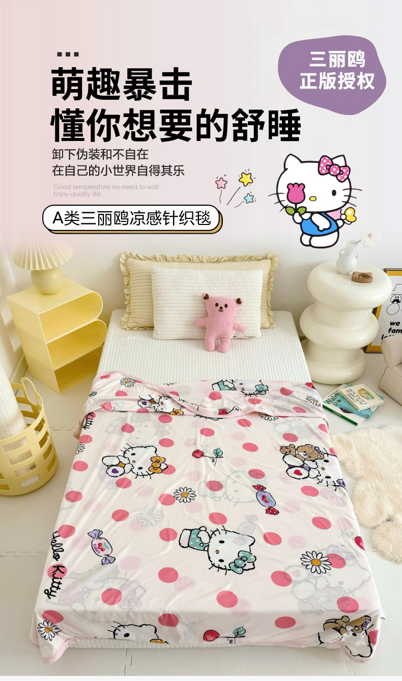 鱼宝 2024新款三丽鸥正版授权针织盖毯 波点凯蒂猫