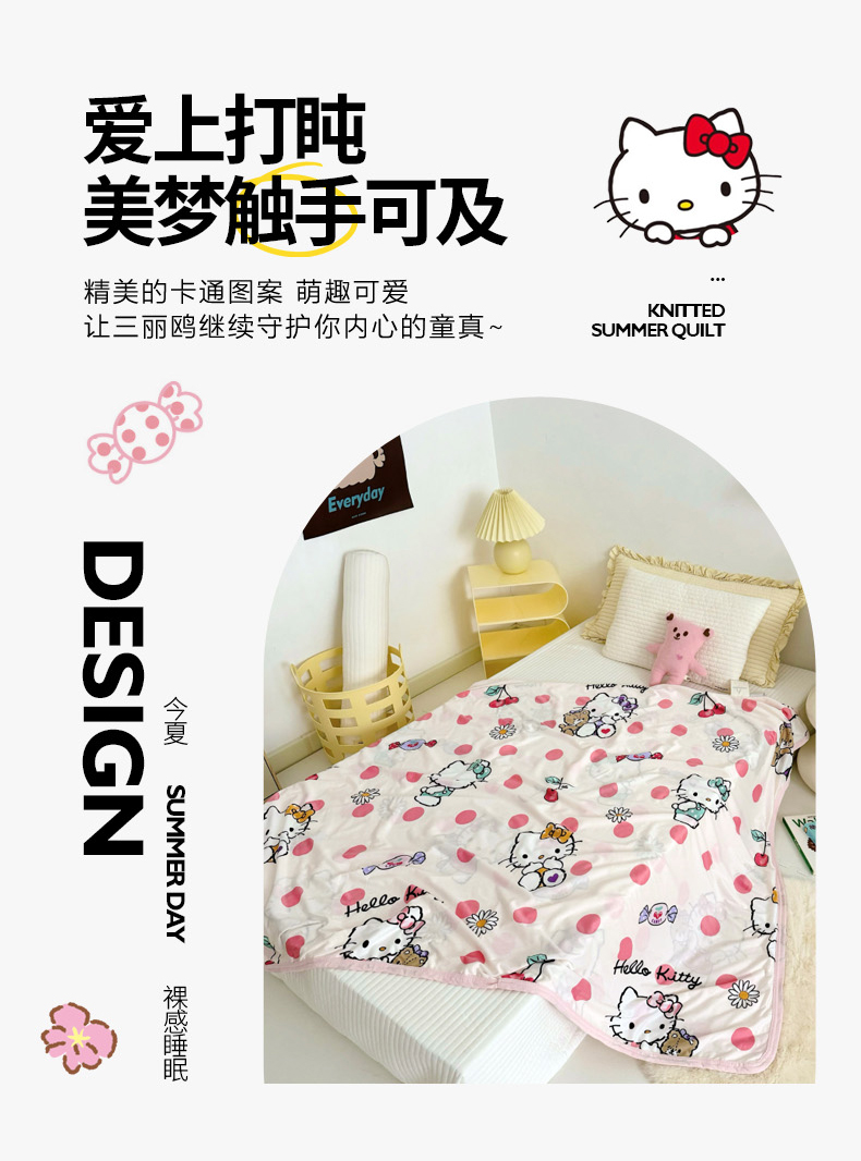 (总)鱼宝 2025新款三丽鸥针织棉豆豆被,泡泡帕恰狗,爱心美乐蒂,调皮帕恰狗,粉格美乐蒂,开心玉桂狗,可爱库洛米,汽车库洛米,水果玉桂狗,甜甜美乐蒂,星星库洛米,Kitty甜品屋