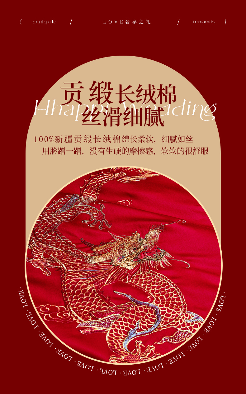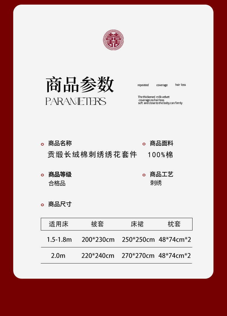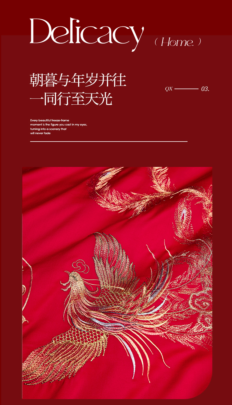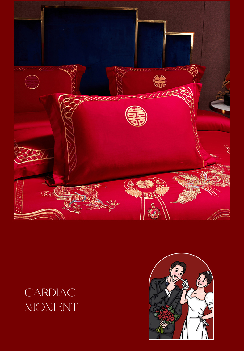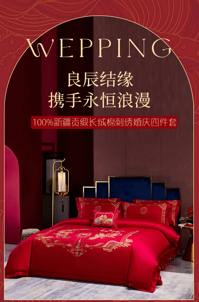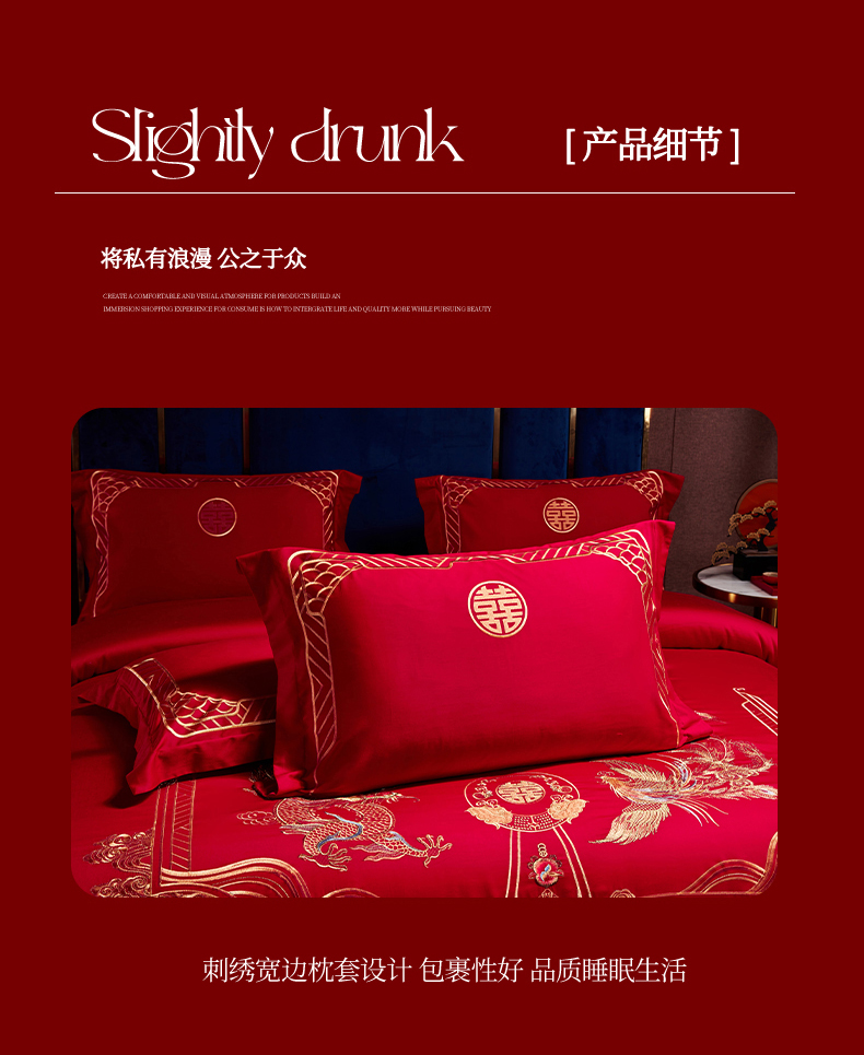 商品名称:晶缦家纺 2024纯棉全棉60支贡缎长绒棉刺绣花婚庆四件套--绣花贴边床单款 龙凤祥和