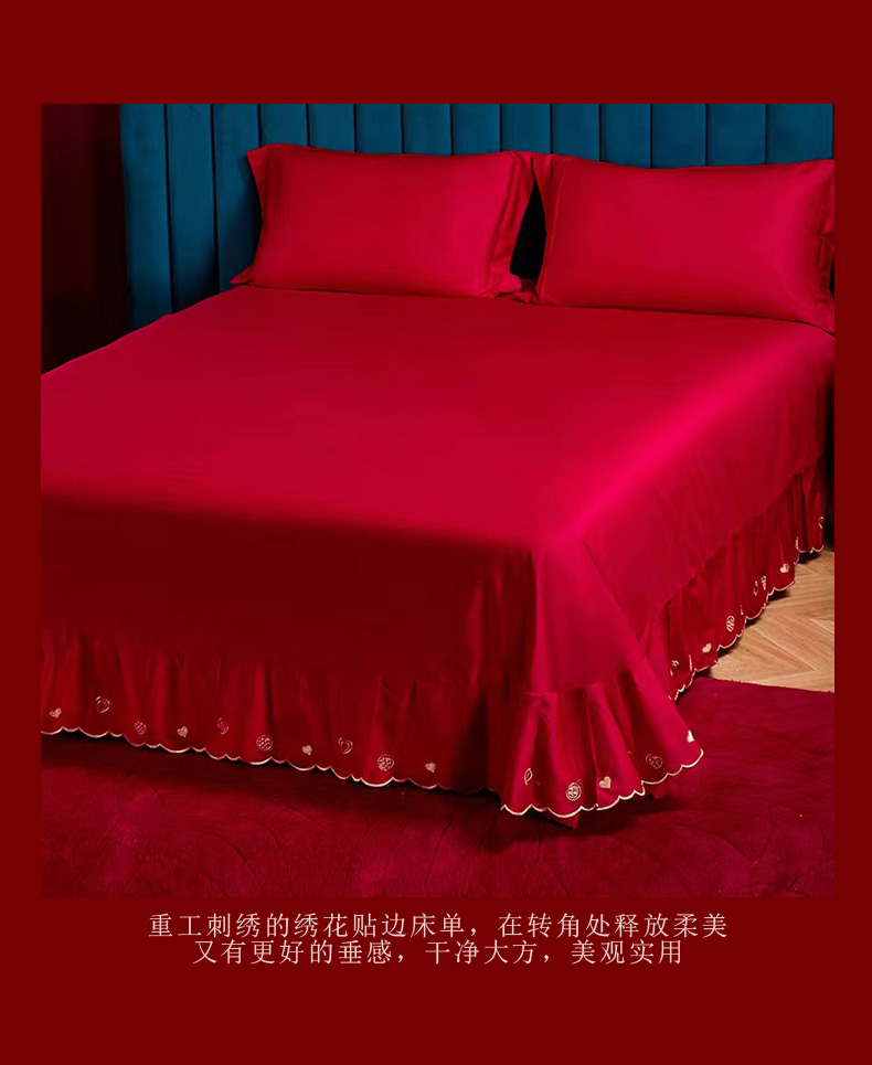 晶缦家纺 2024纯棉全棉60支贡缎长绒棉刺绣花婚庆四件套--绣花贴边床单款 龙凤祥和