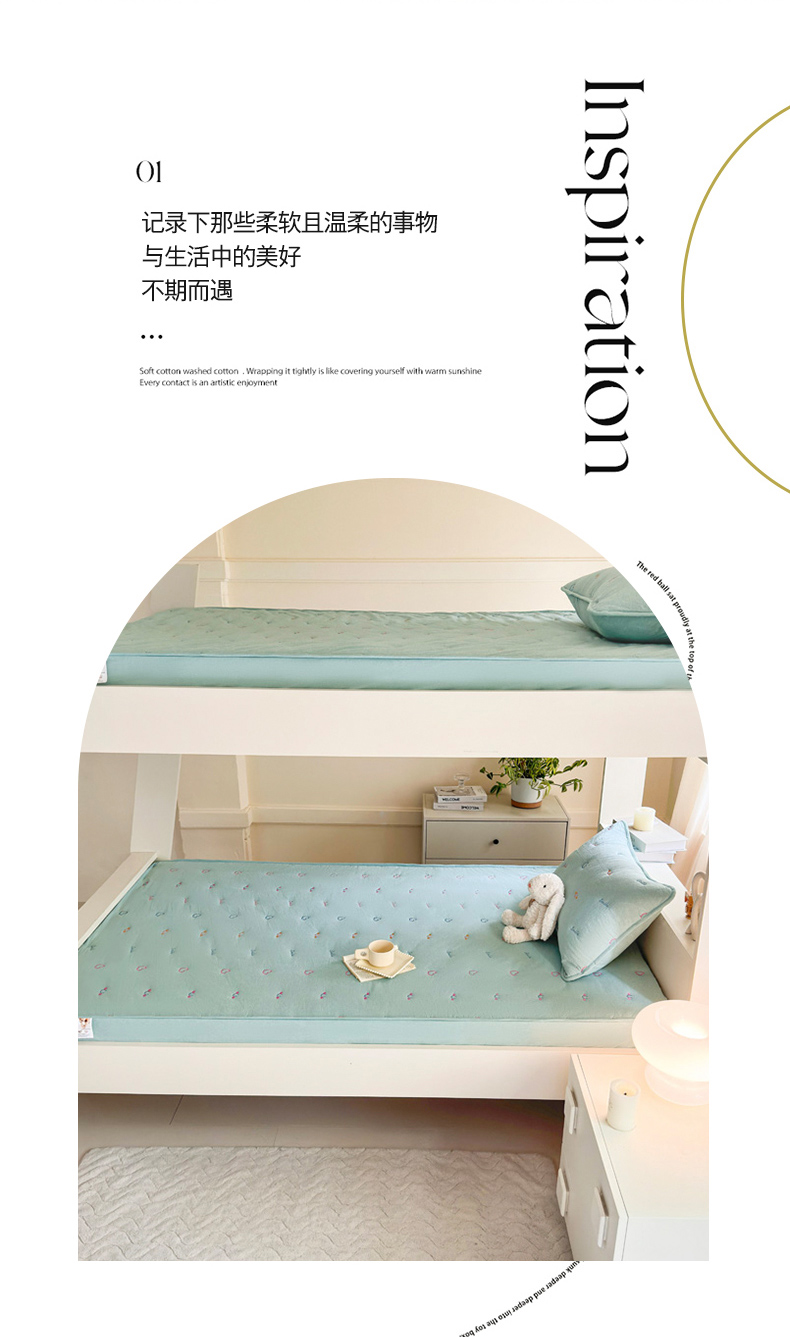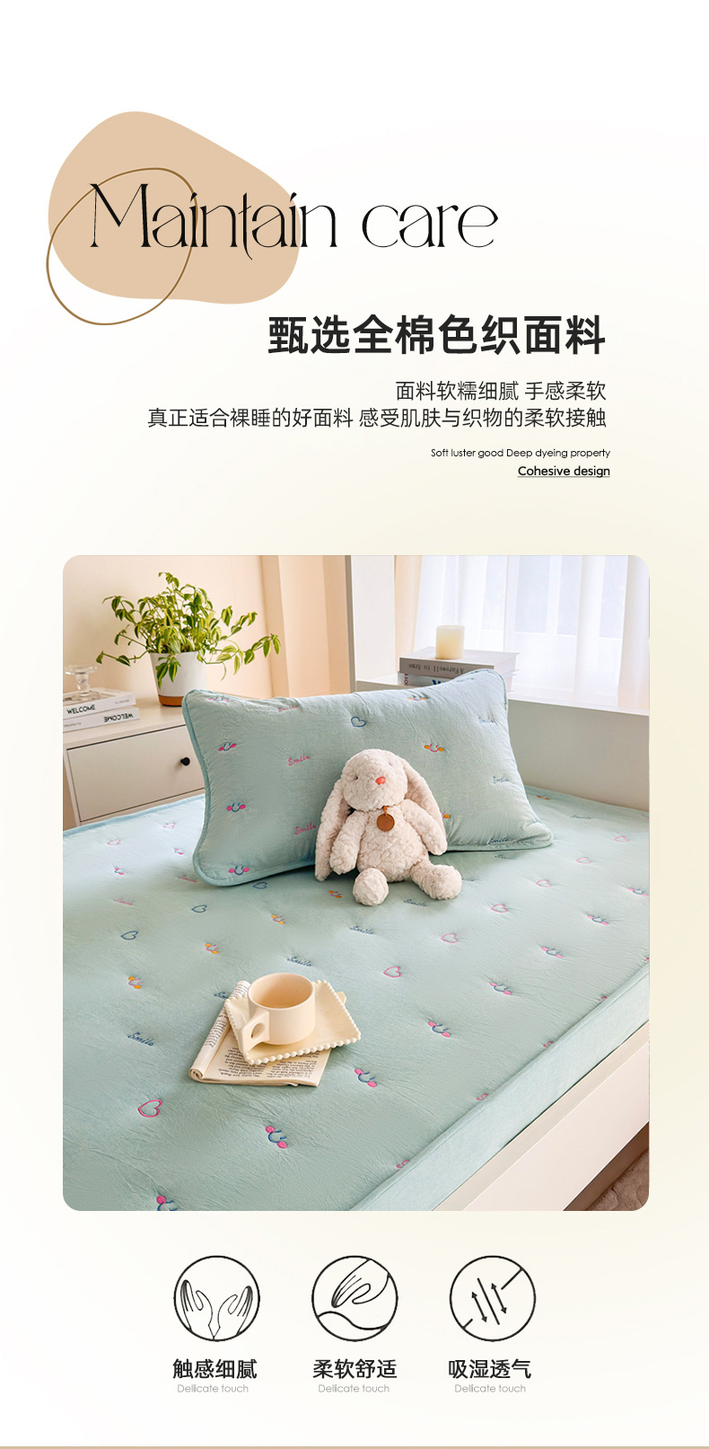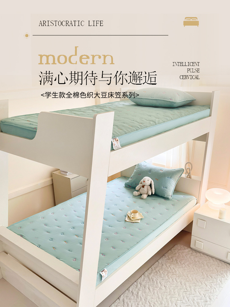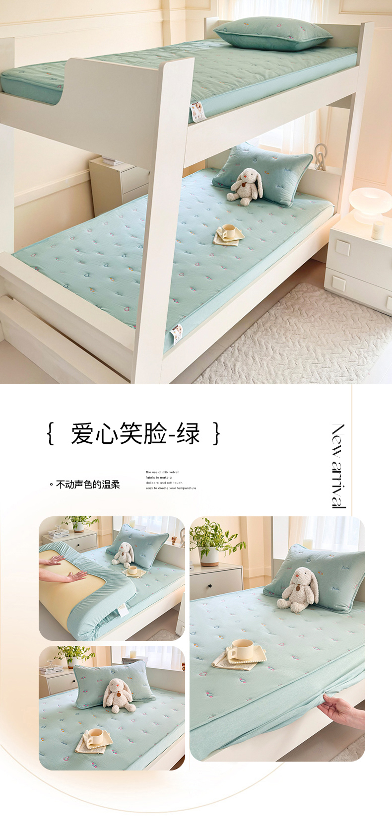 尊康家纺(原磊科) 2024新款全棉色织夹棉上下铺大豆床笠-爱心笑脸系列 爱心笑脸-绿