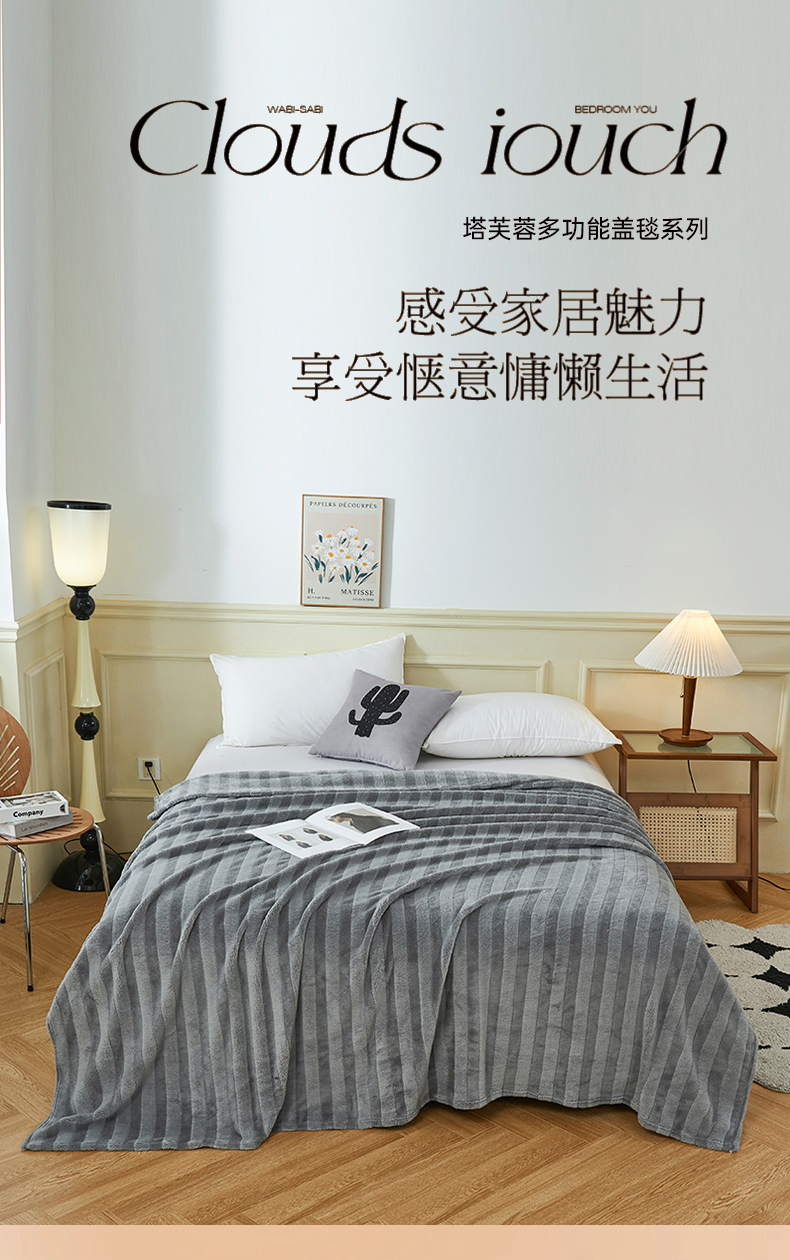 馨米莱家纺 2024新款塔芙蓉多功能盖毯 灰色