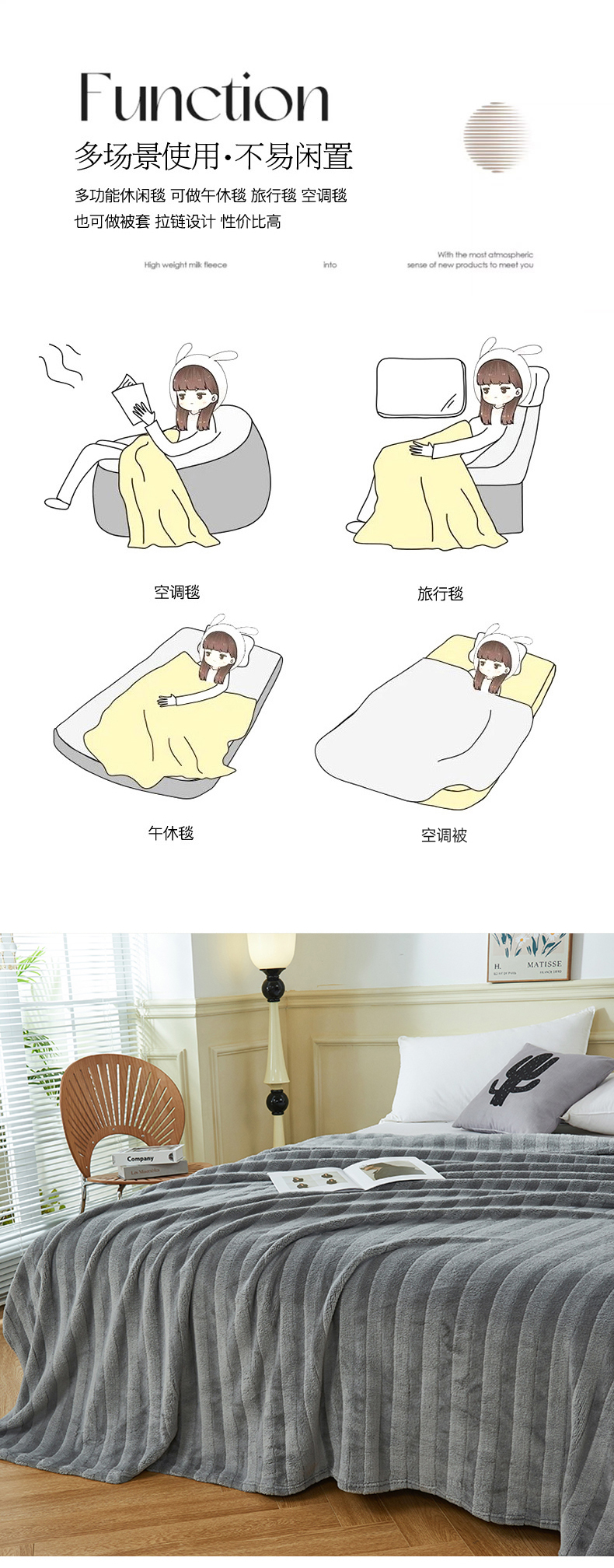 (总)馨米莱家纺 2025新款AB版牛奶绒提花纯色多功能盖毯毛毯,兰色,裸粉色,米灰色,米咖,浅驼,深咖,嫣红色