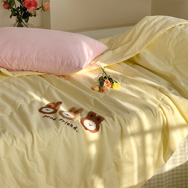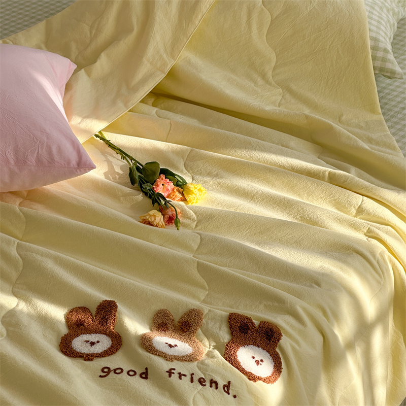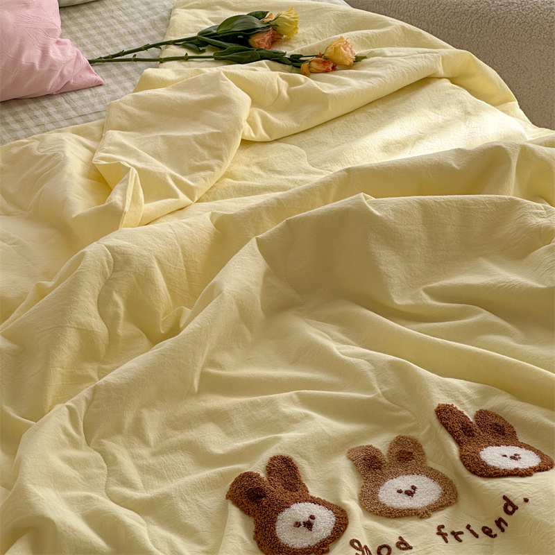 洋铭区(原狠狠爱) 2024新款毛巾绣水洗棉夏被四件套 兔兔宝贝