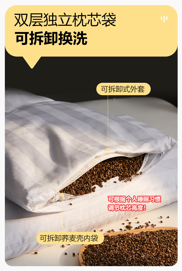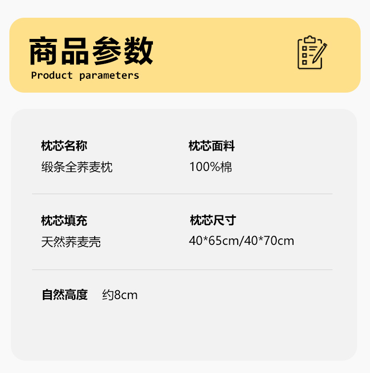 商品名称:(总)乐可 2024新款缎条全荞麦枕 枕头枕芯