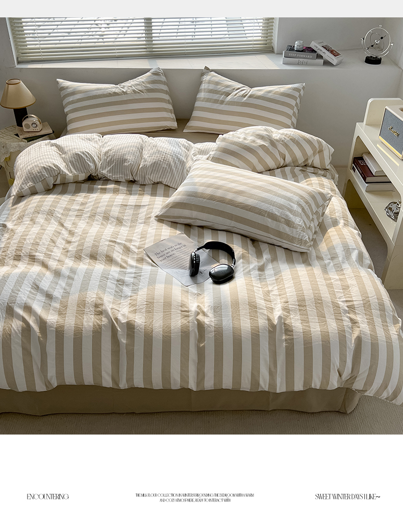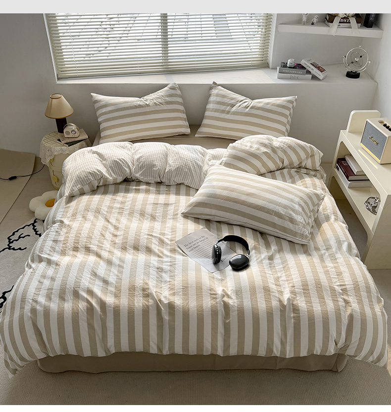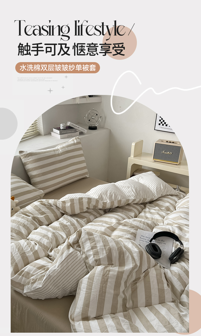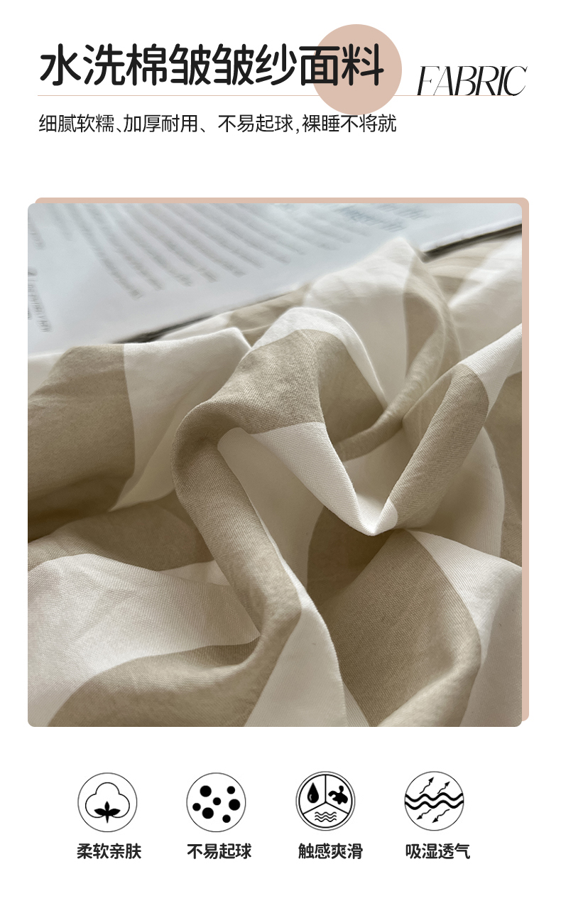 • 91家纺网 家纺一手货源 找家纺 多品 2024新款高克重水洗棉双层纱皱皱纱单品被套 暮落浅咖