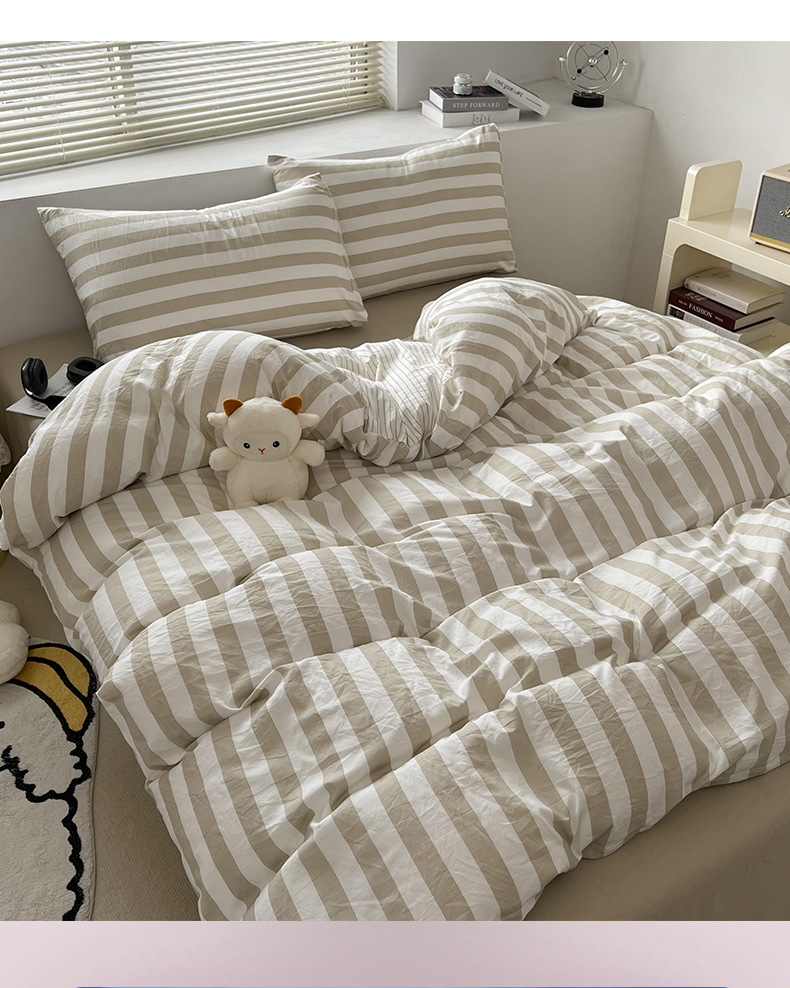 多品 2024新款高克重水洗棉双层纱皱皱纱单品被套 暮落浅咖