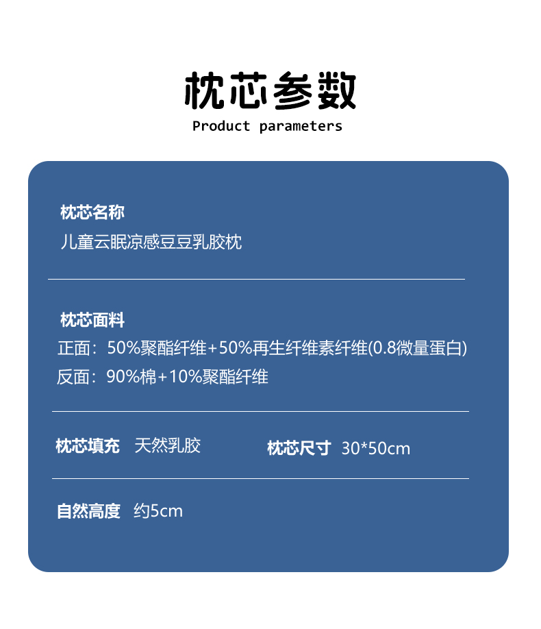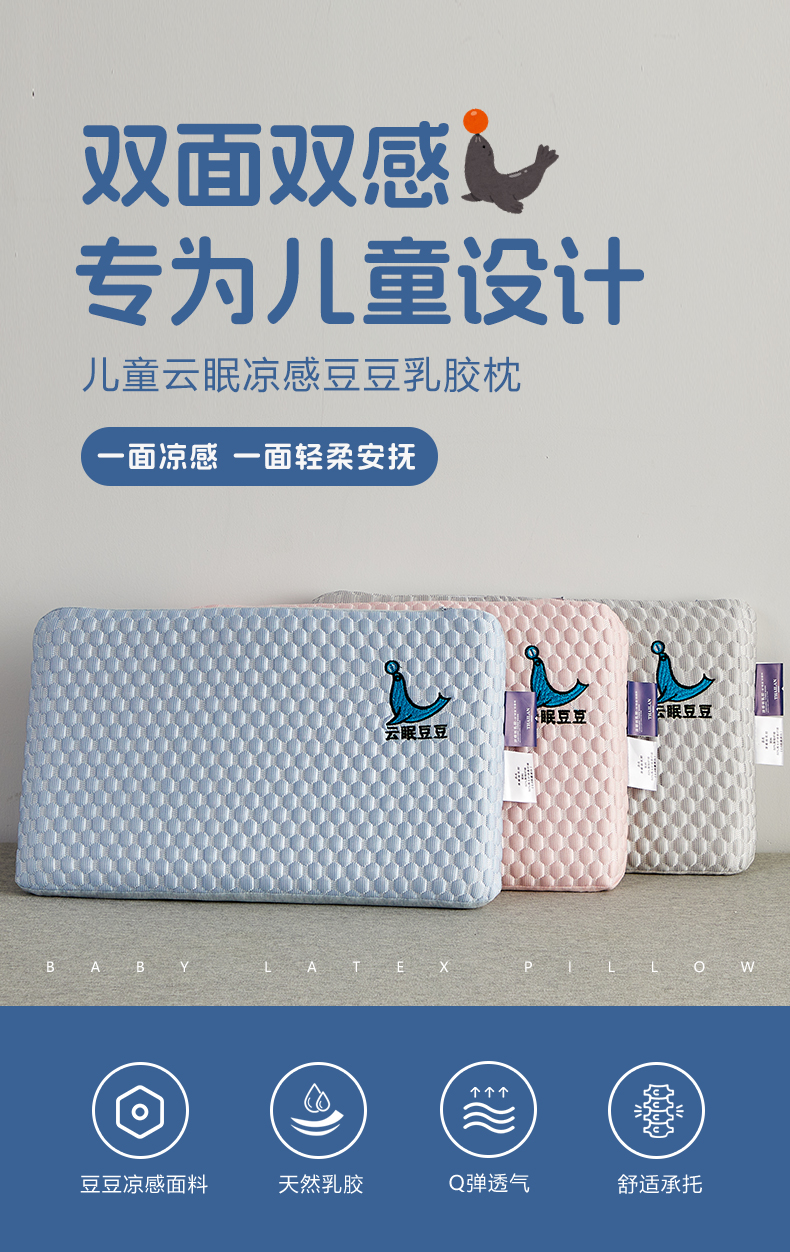 商品名称:沃兰国际 2024新款儿童云眠凉感豆豆乳胶枕枕头枕芯30*50cm 豆豆灰