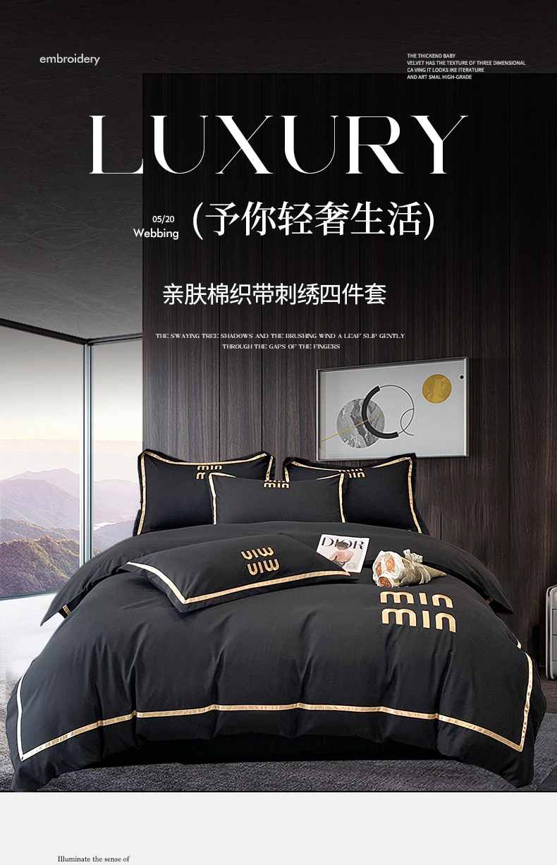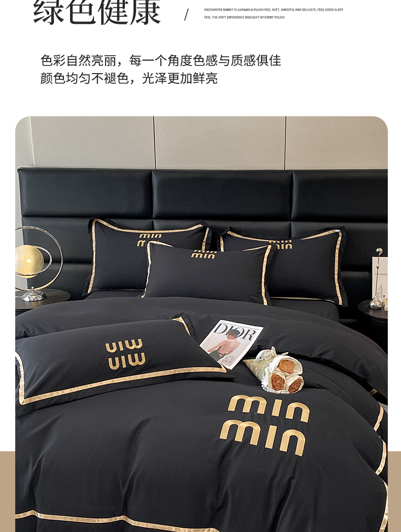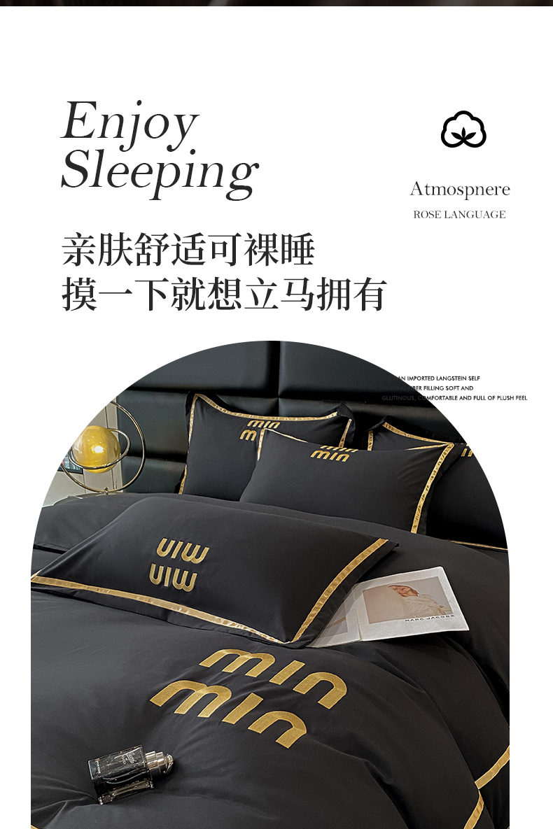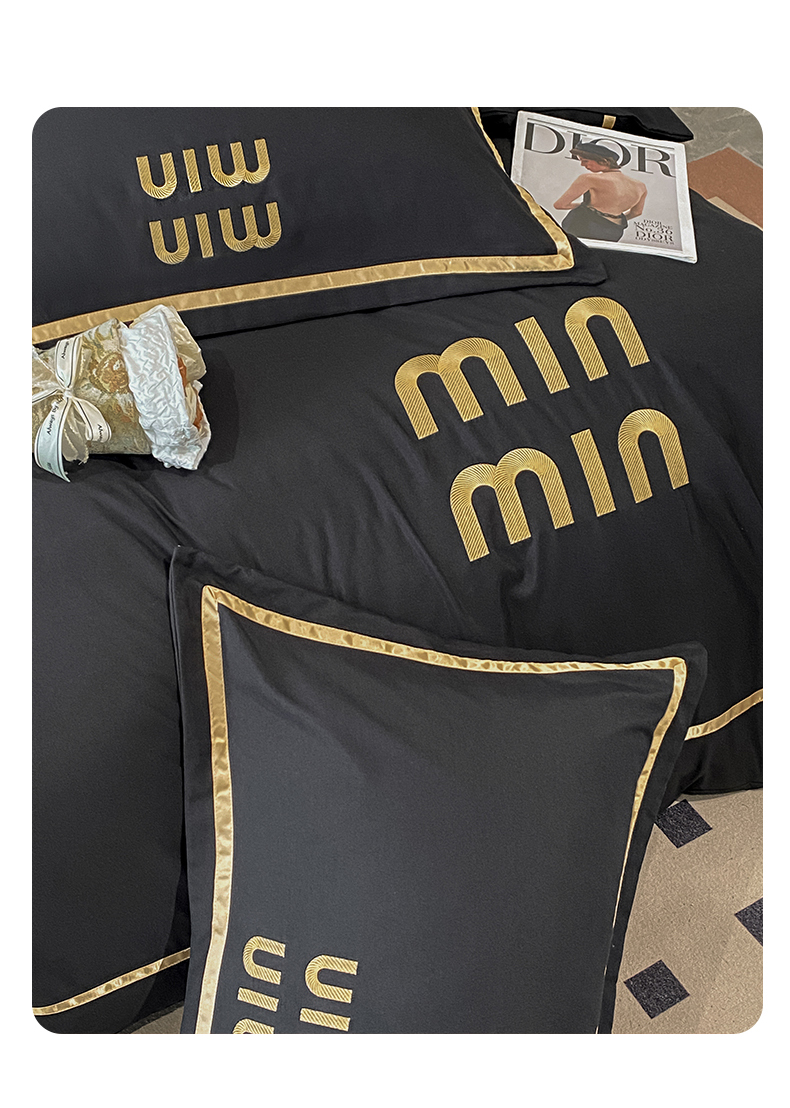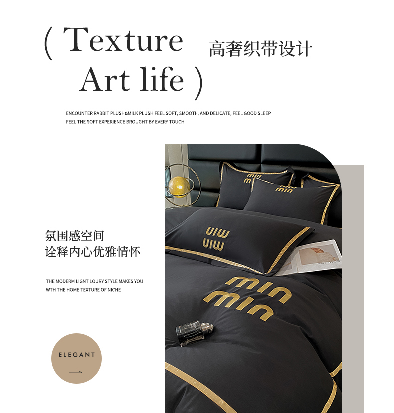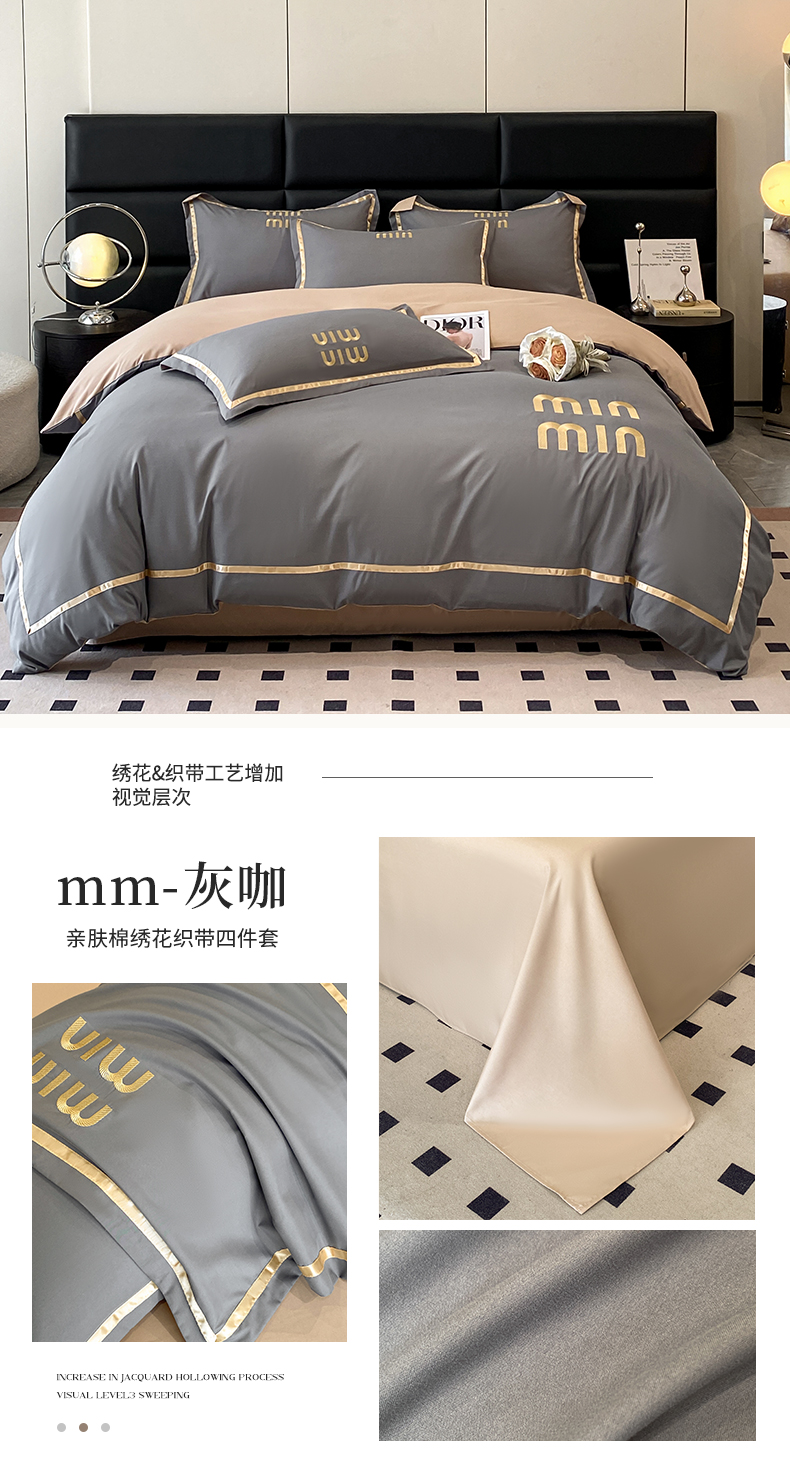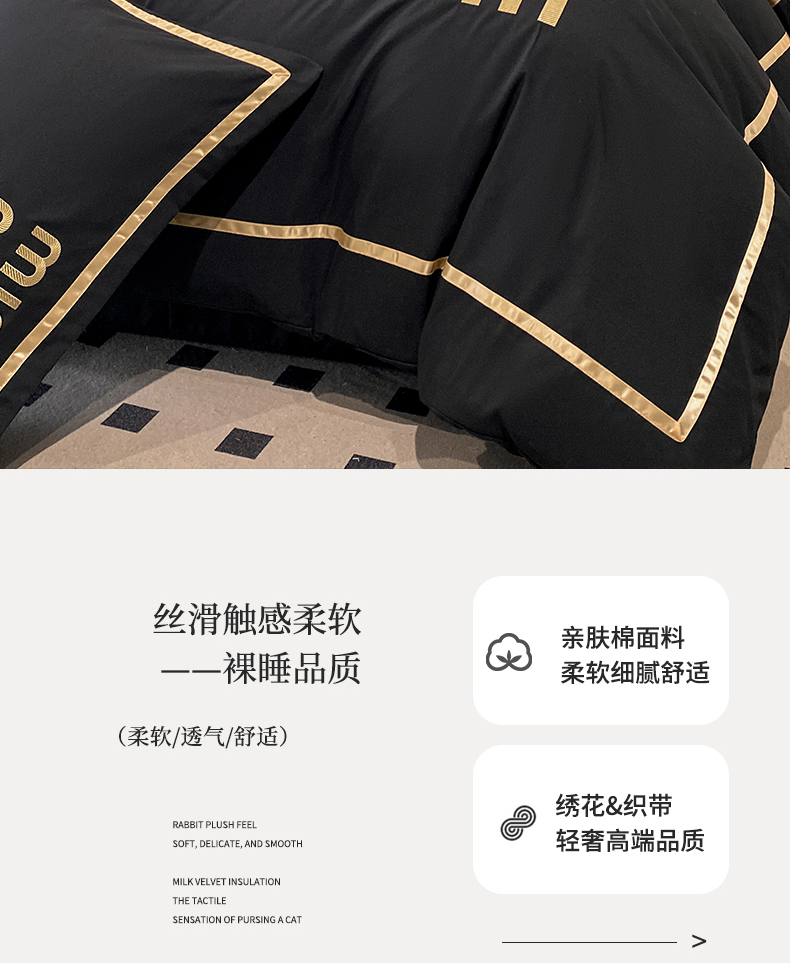 商品名称:2024新款亲肤棉织带绣花MM轻奢四件套 mm-炫黑