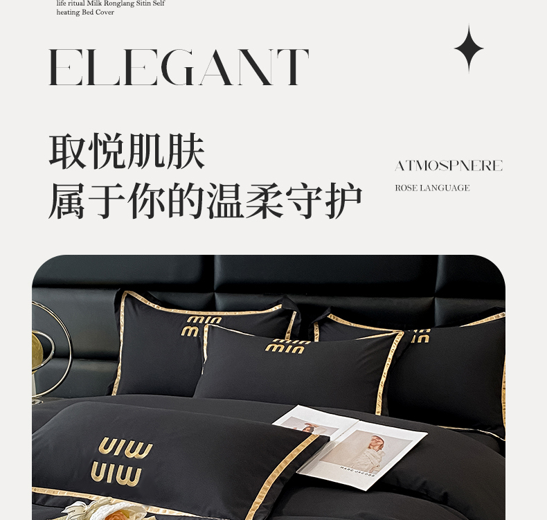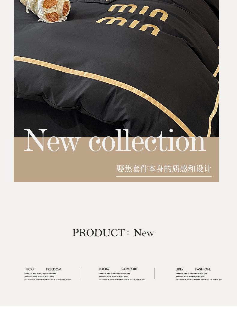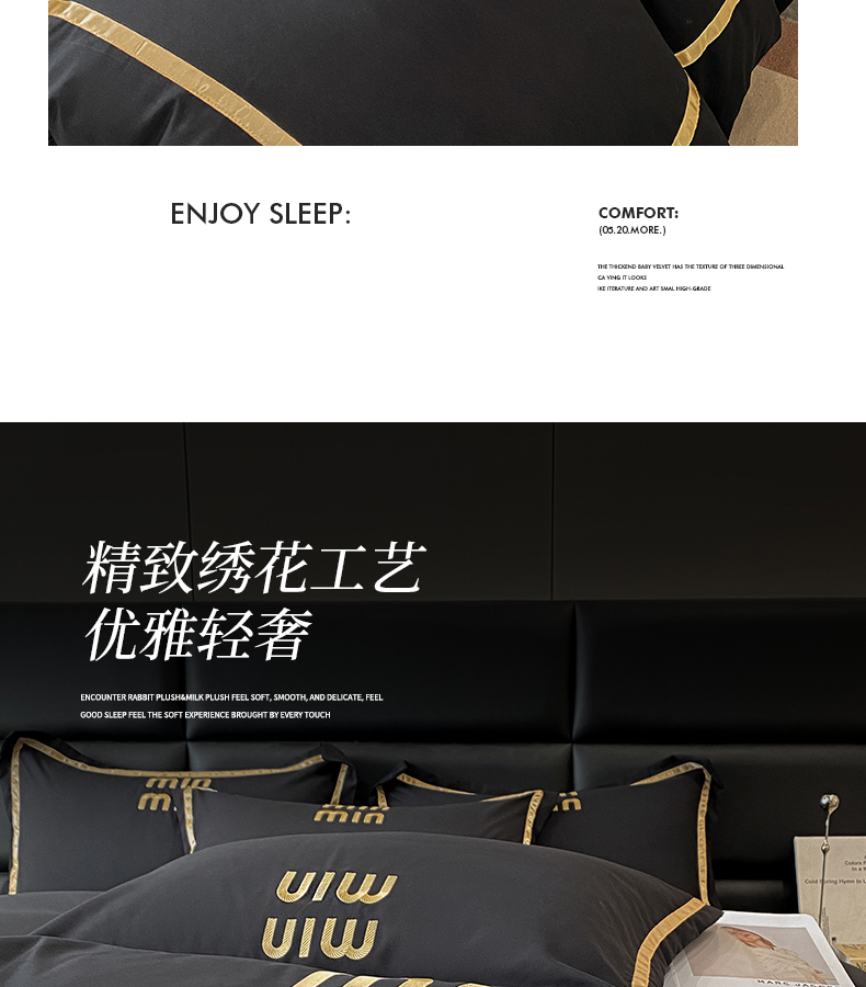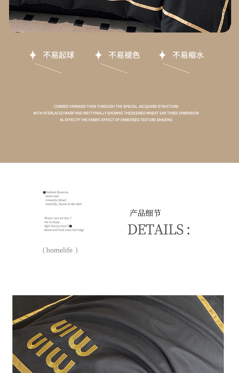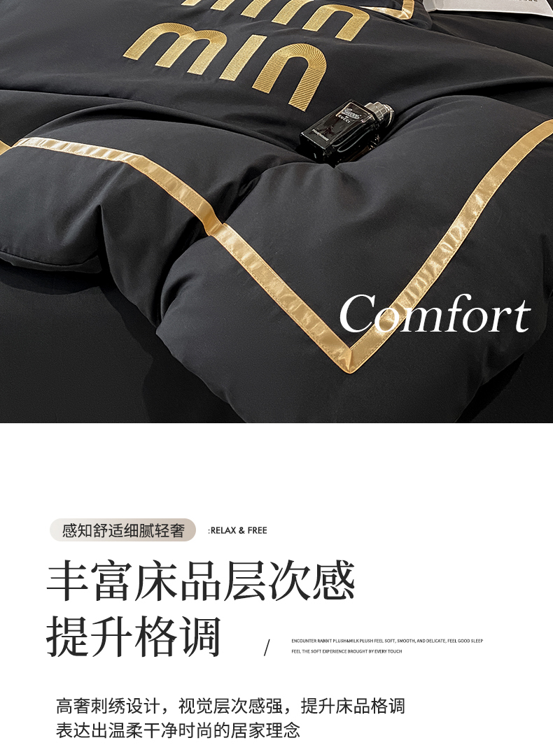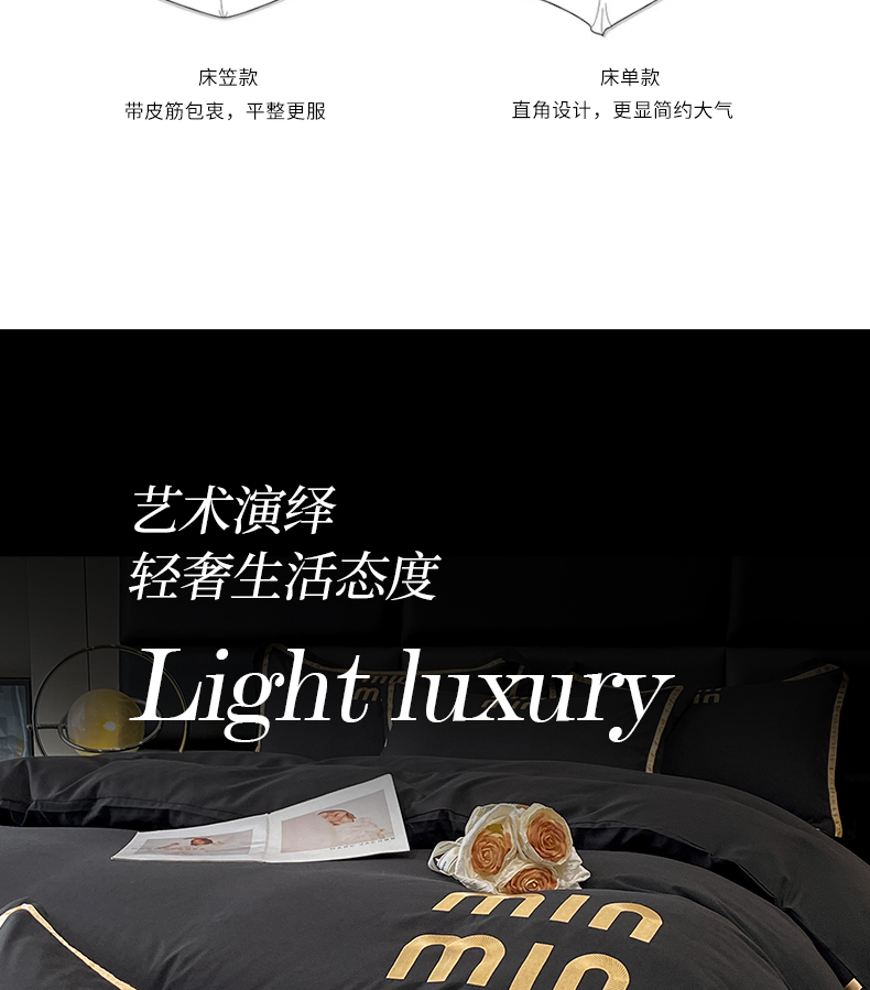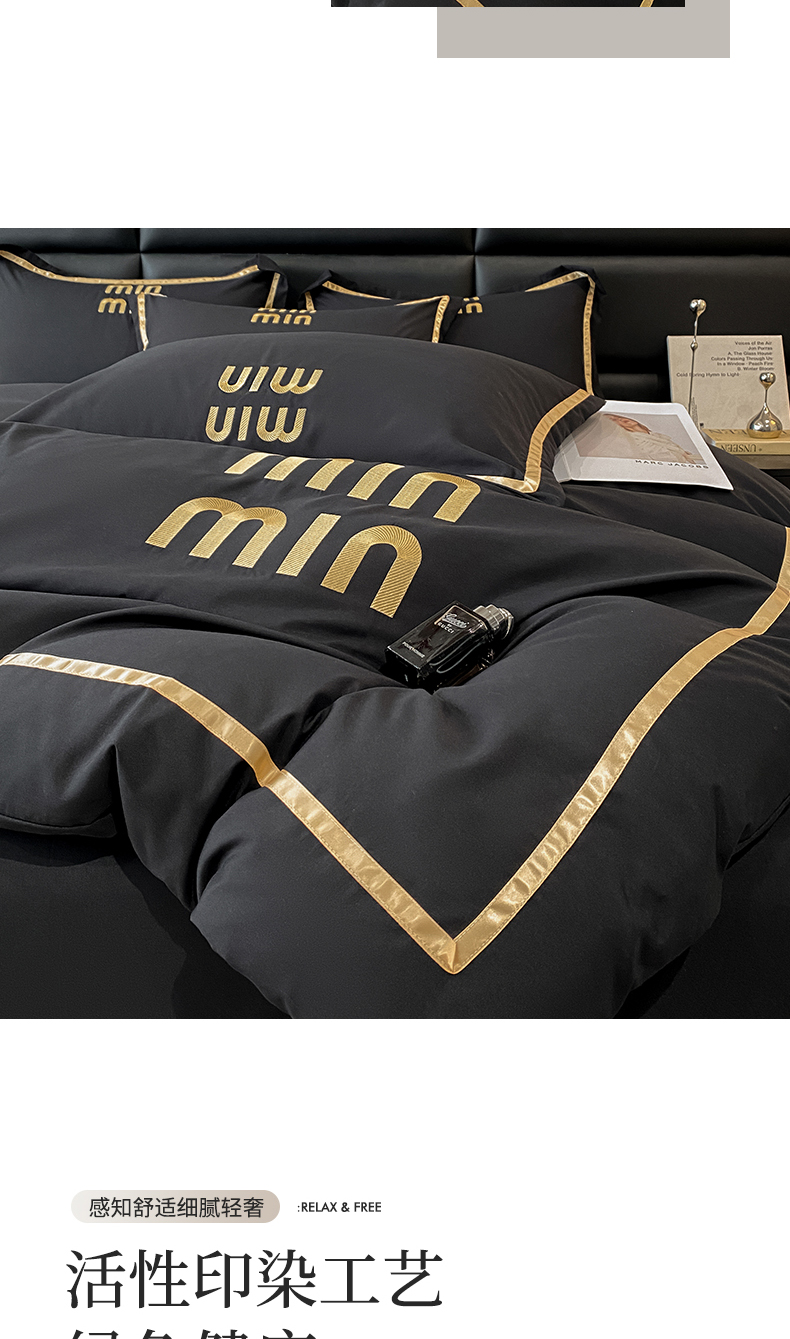 商品名称:2024新款亲肤棉织带绣花MM轻奢四件套 mm-炫黑
