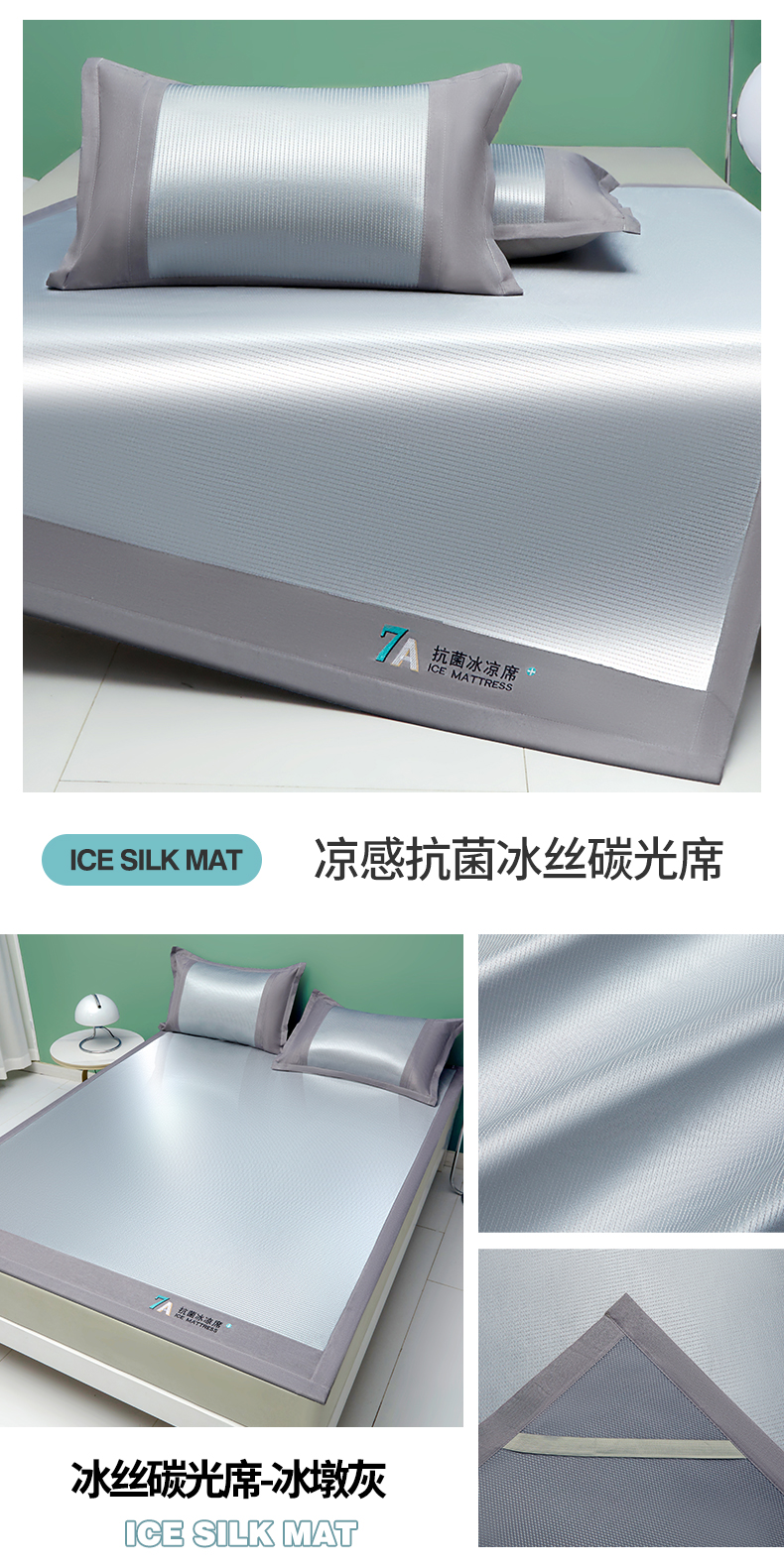 商品名称:瑶瑶家居 2024新款碳光冰丝席-量大优惠 冰丝碳光席-冰墩灰