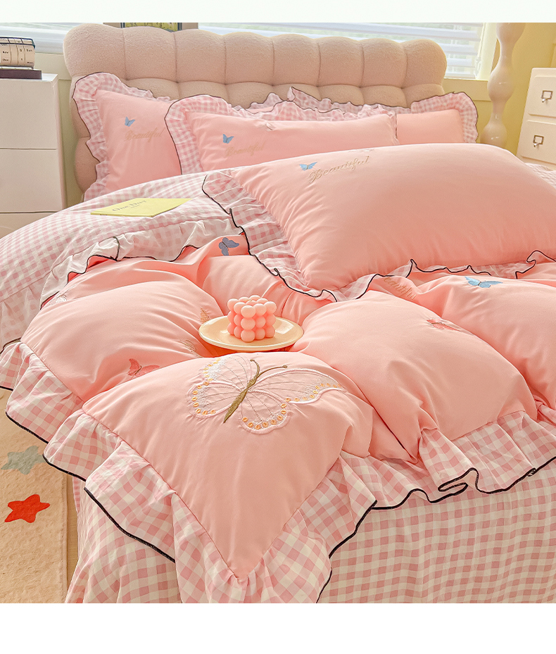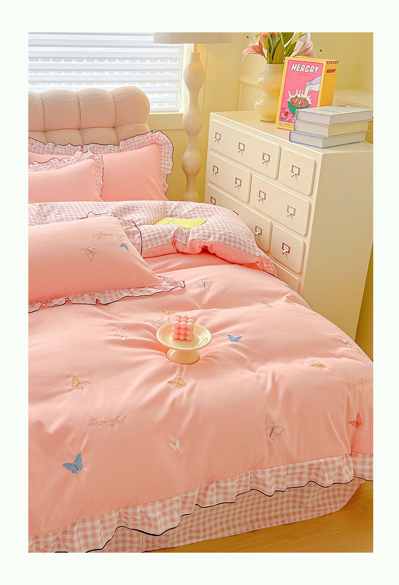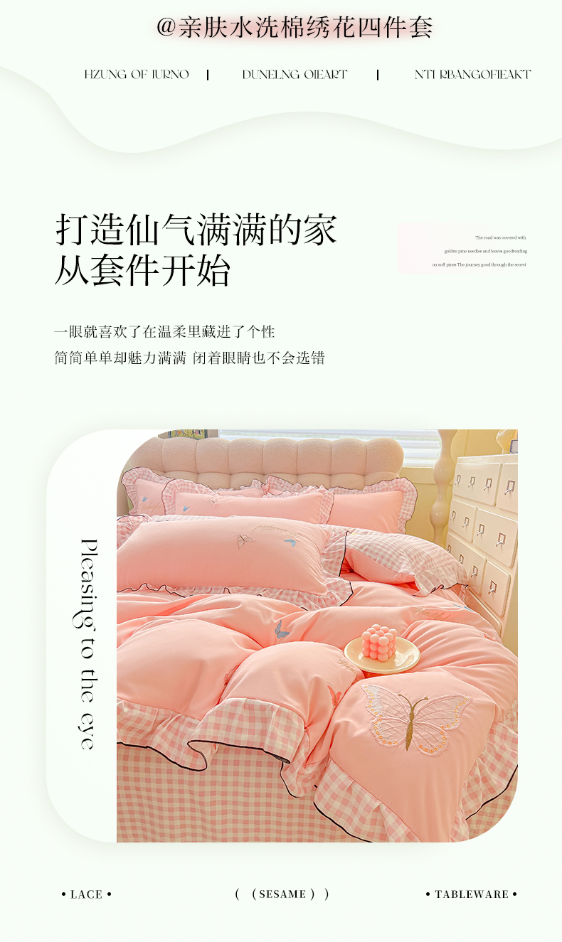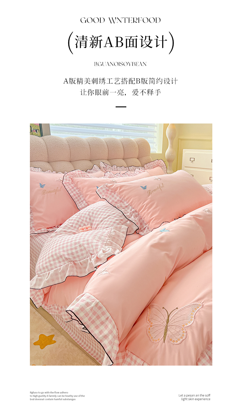 商品名称:韩都家居 2024新款ins韩系水洗云朵棉刺绣四件套【蝶影仙踪】 蝶影仙踪-玉