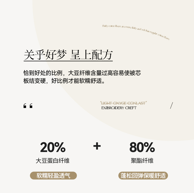 • 填充纤维种类: 大豆蛋白改性聚酯纤维