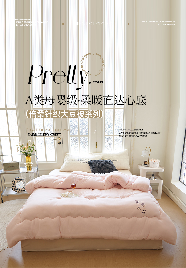 • 91家纺网 家纺一手货源 找家纺 巴宝路 2025新款A类母婴级柔暖针织大豆被 粉