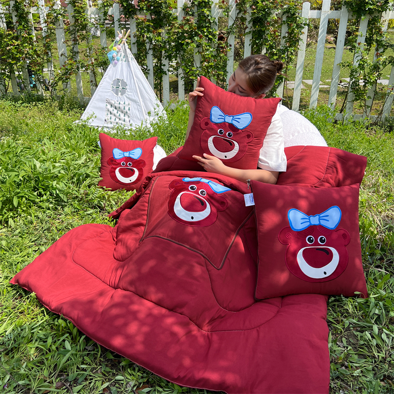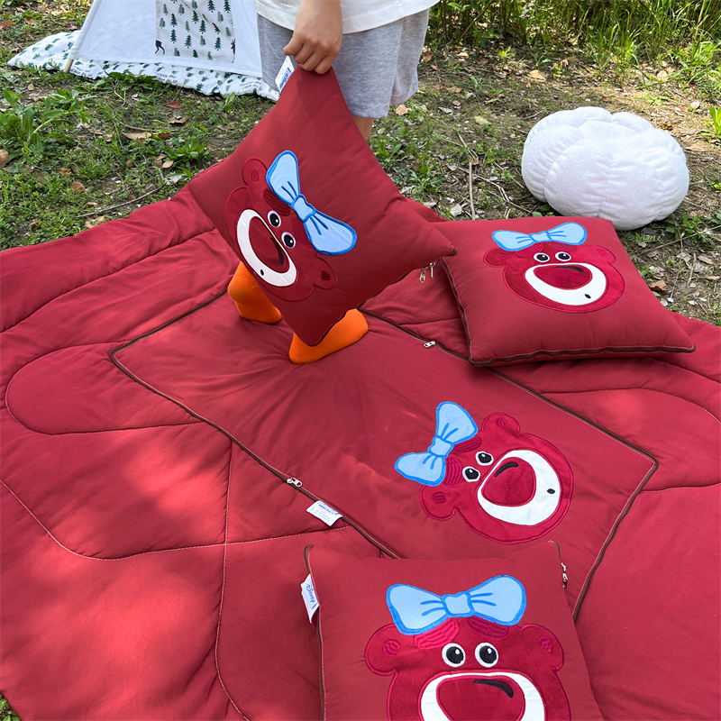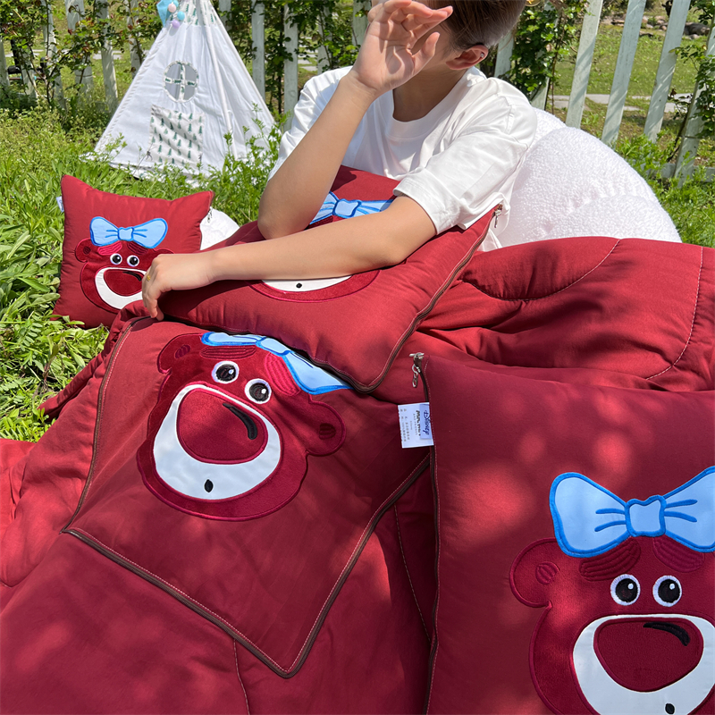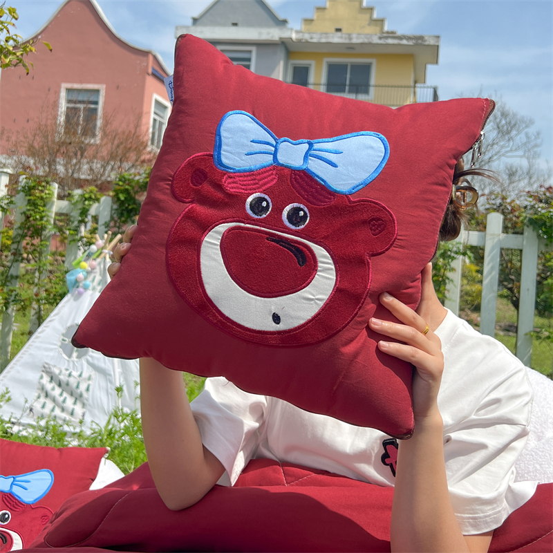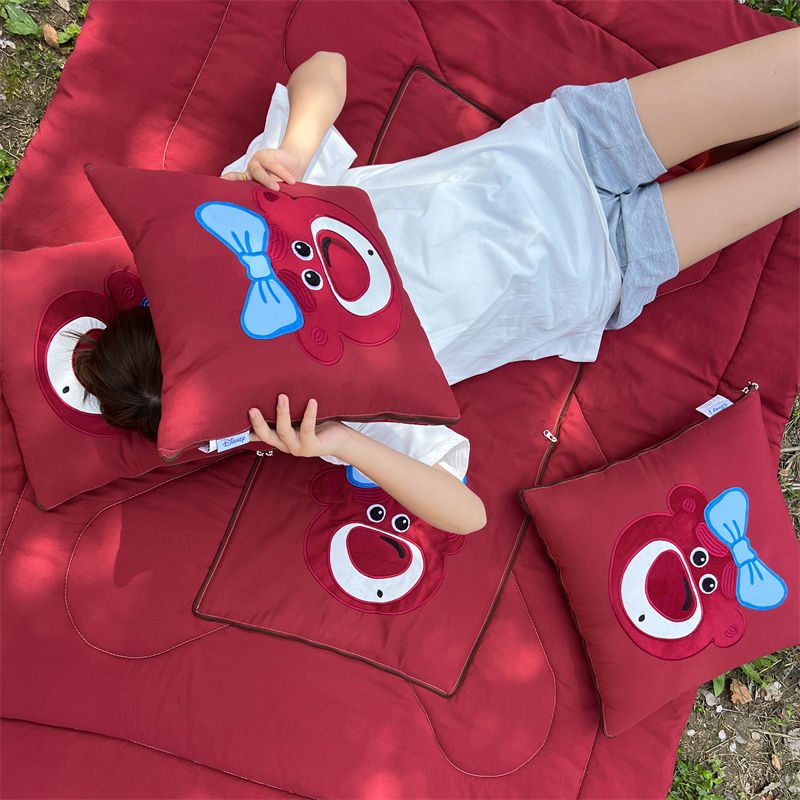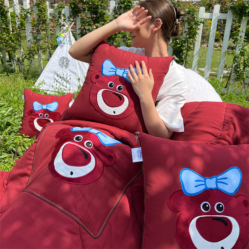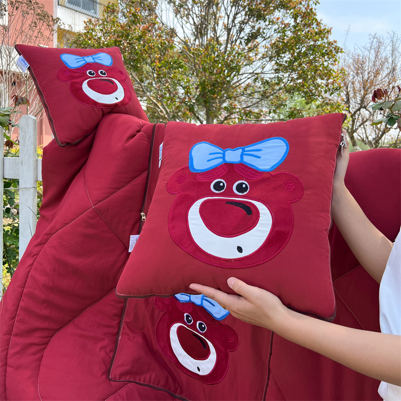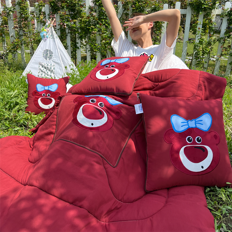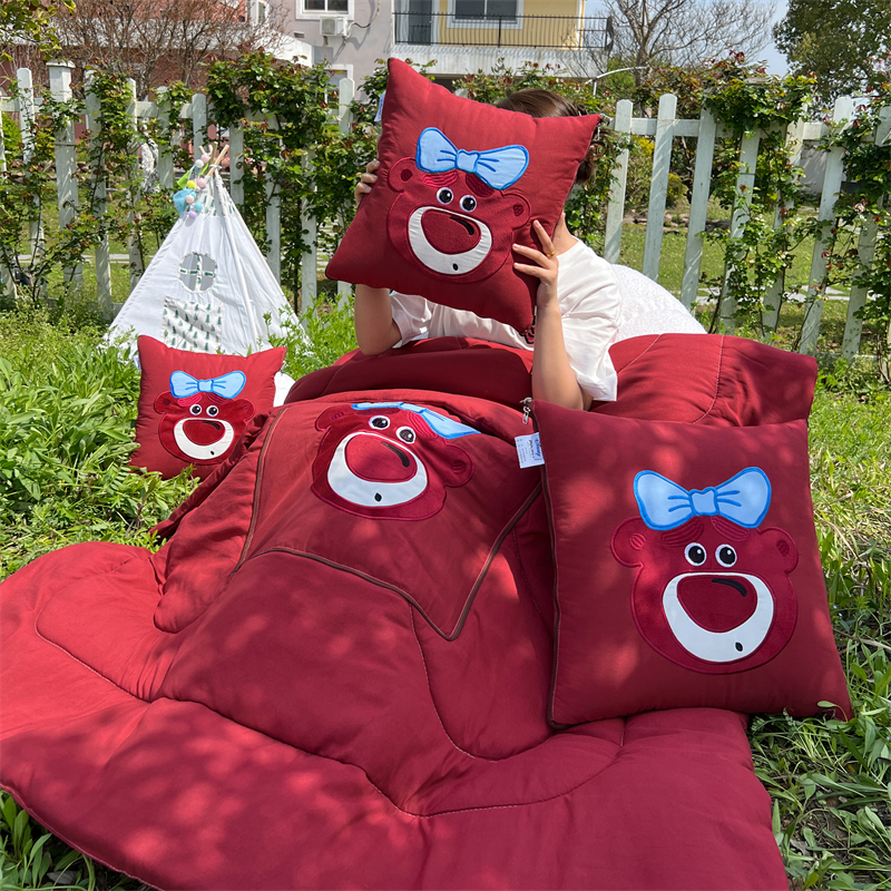 乐坊 2024新款贴布绣抱枕被 happy大耳朵熊