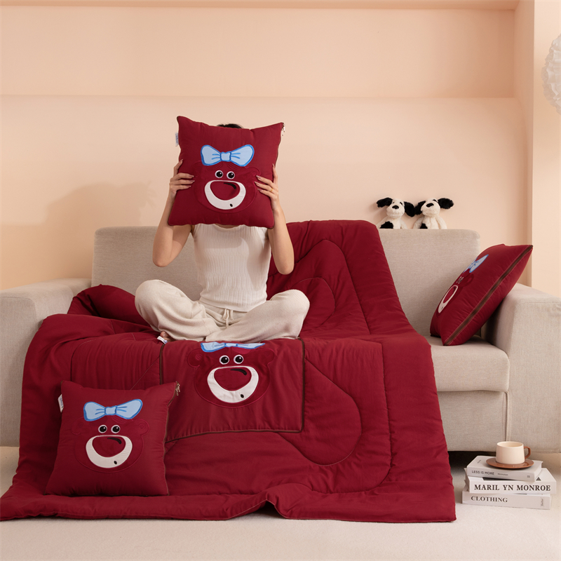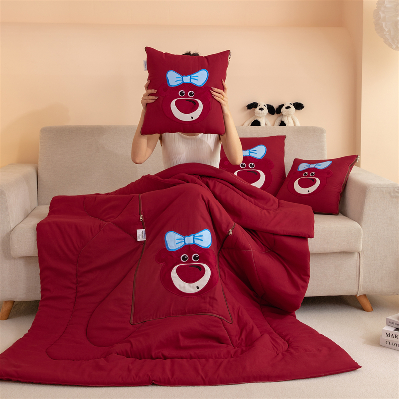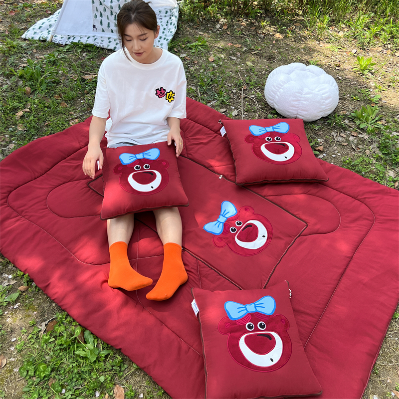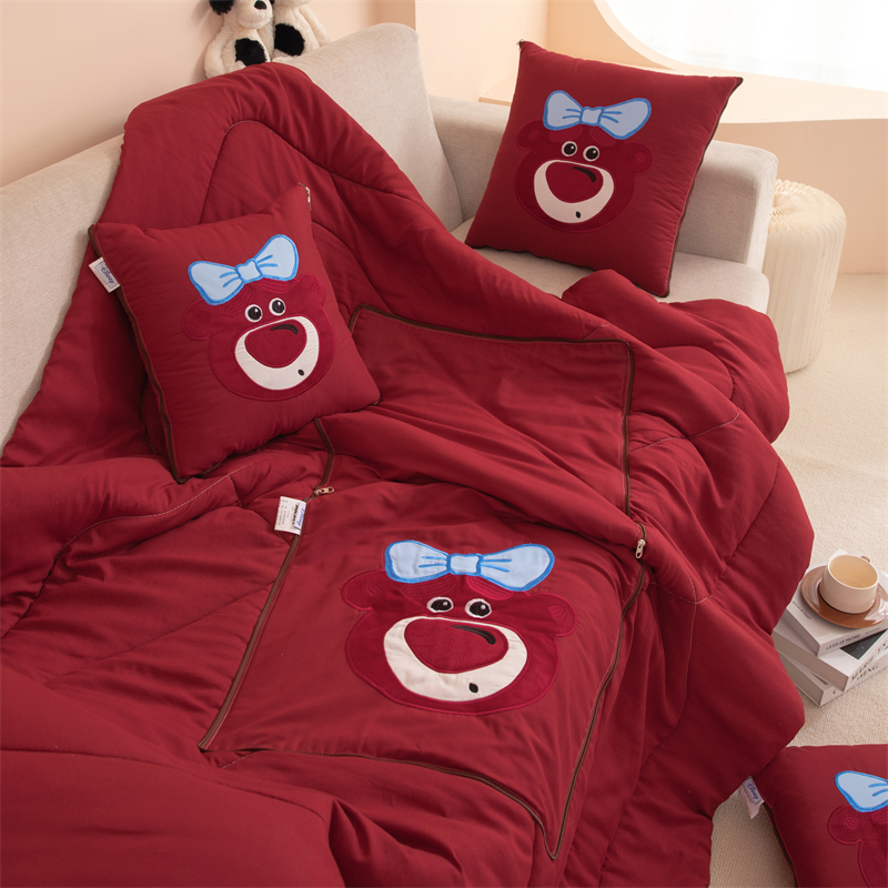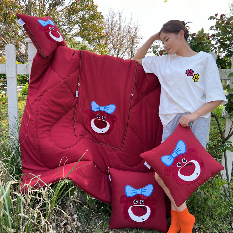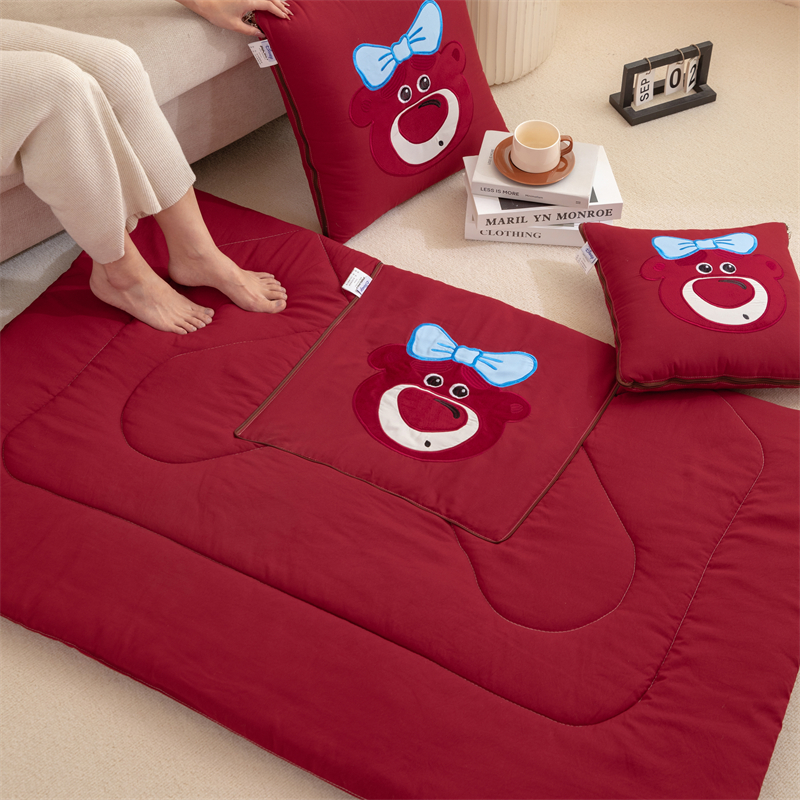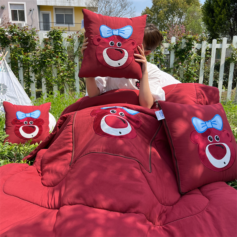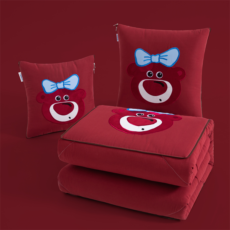 乐坊 2024新款贴布绣抱枕被 happy大耳朵熊