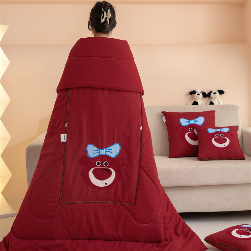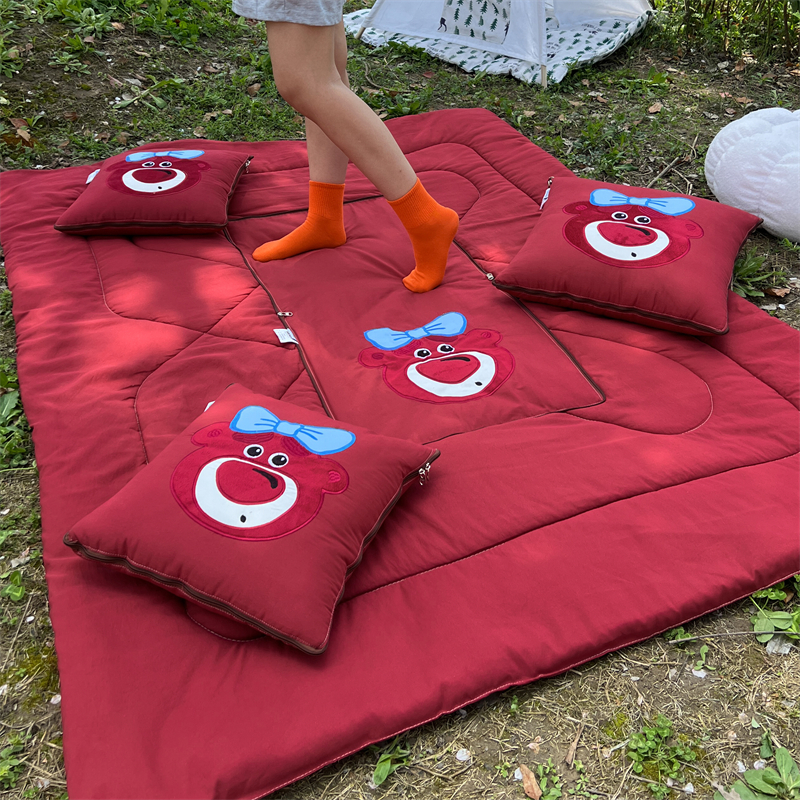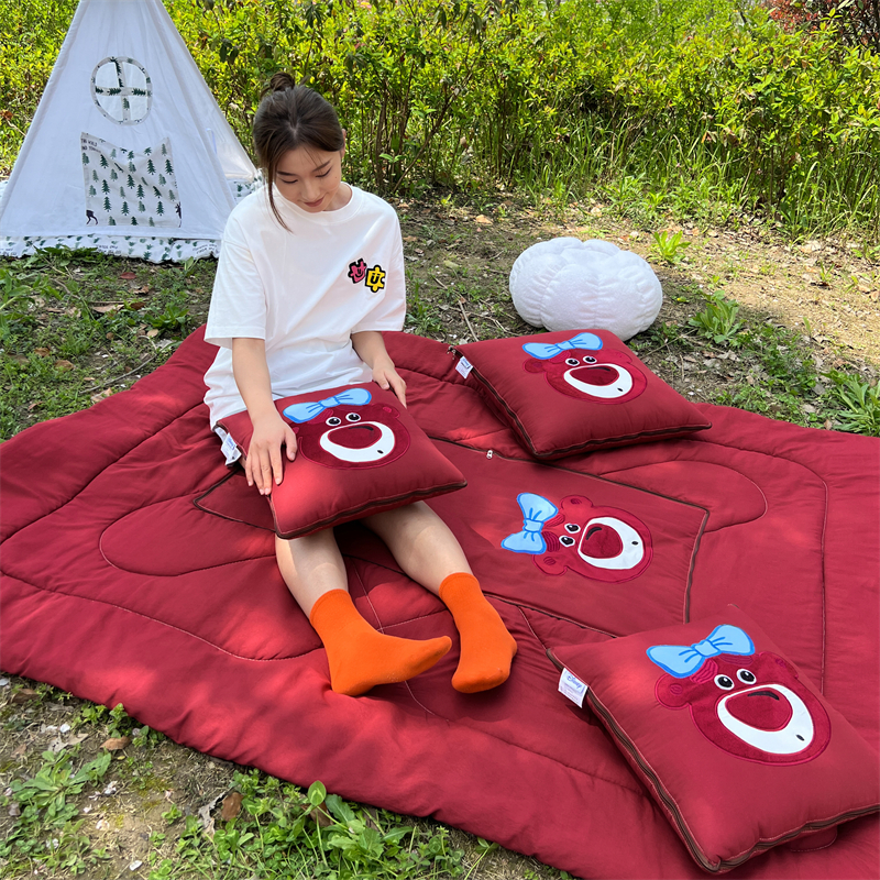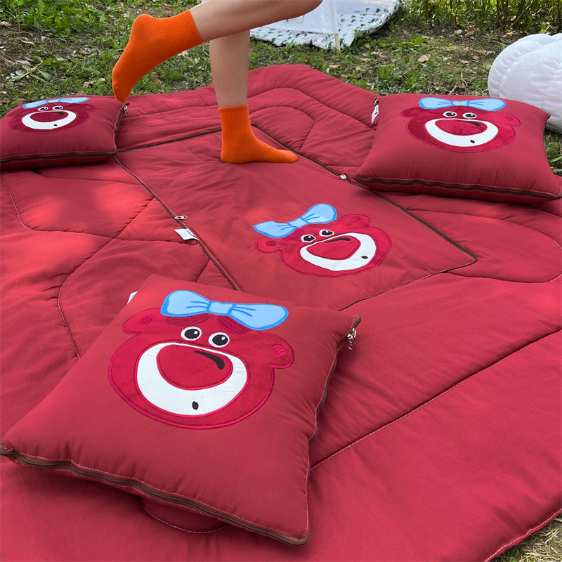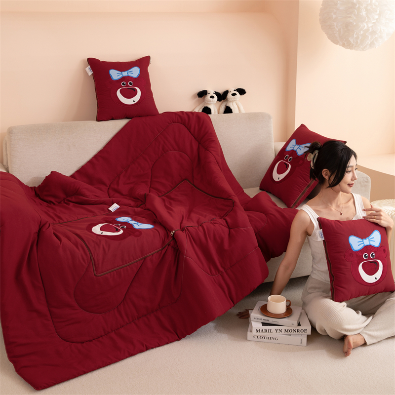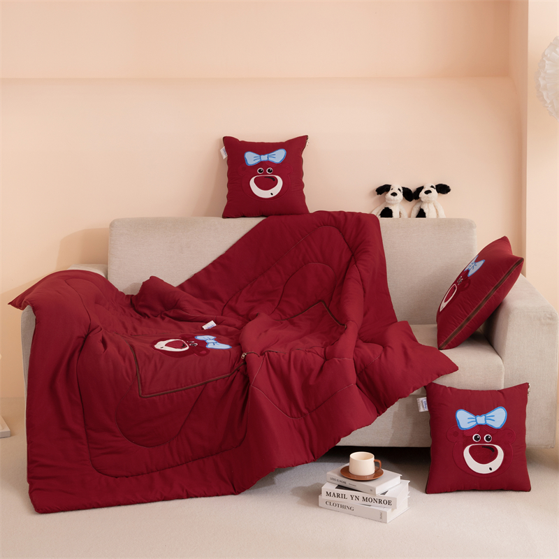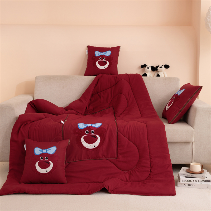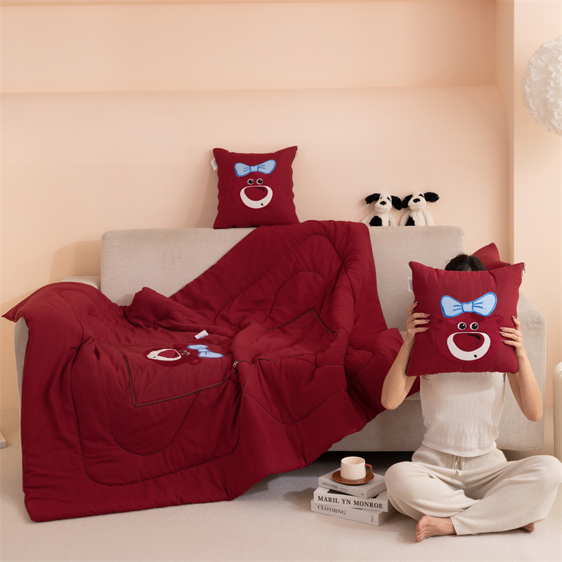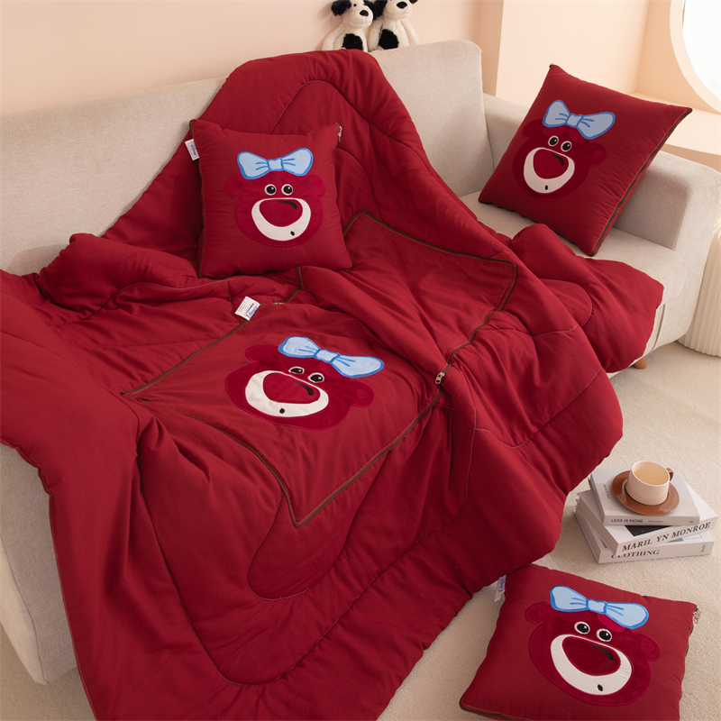 乐坊 2024新款贴布绣抱枕被 happy大耳朵熊