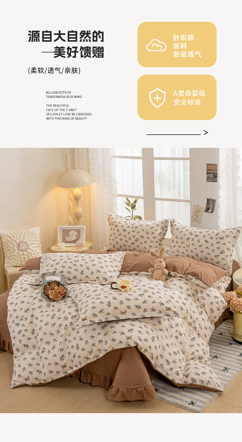 商品名称:富之航家纺2024新款小清新床盖四件套公主风提花针织棉床盖四件套 蝶恋花咖