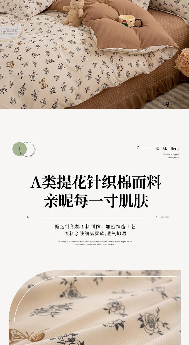 (总)富之航家纺 2024爆款公主风床盖四件套新款小清新提花针织棉床盖四件套,蝶恋花咖,比心,饼干熊,芙蔓,复苏,格调,剪秋,蓝图,梦蝶,蜜桃,莫吉,清欢,素漫,雾里花,相思兰,玉隐