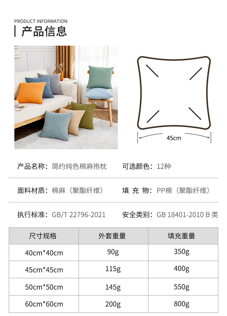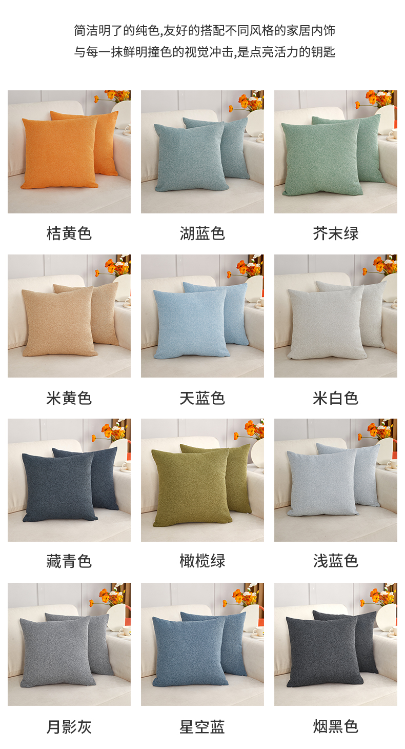 当前位置: 91家纺网 > 商品网购 > 居家日用 > 靠垫/抱枕 > 囍莱家纺 2024新款简约纯色加厚棉麻抱枕系列 桔黄色
