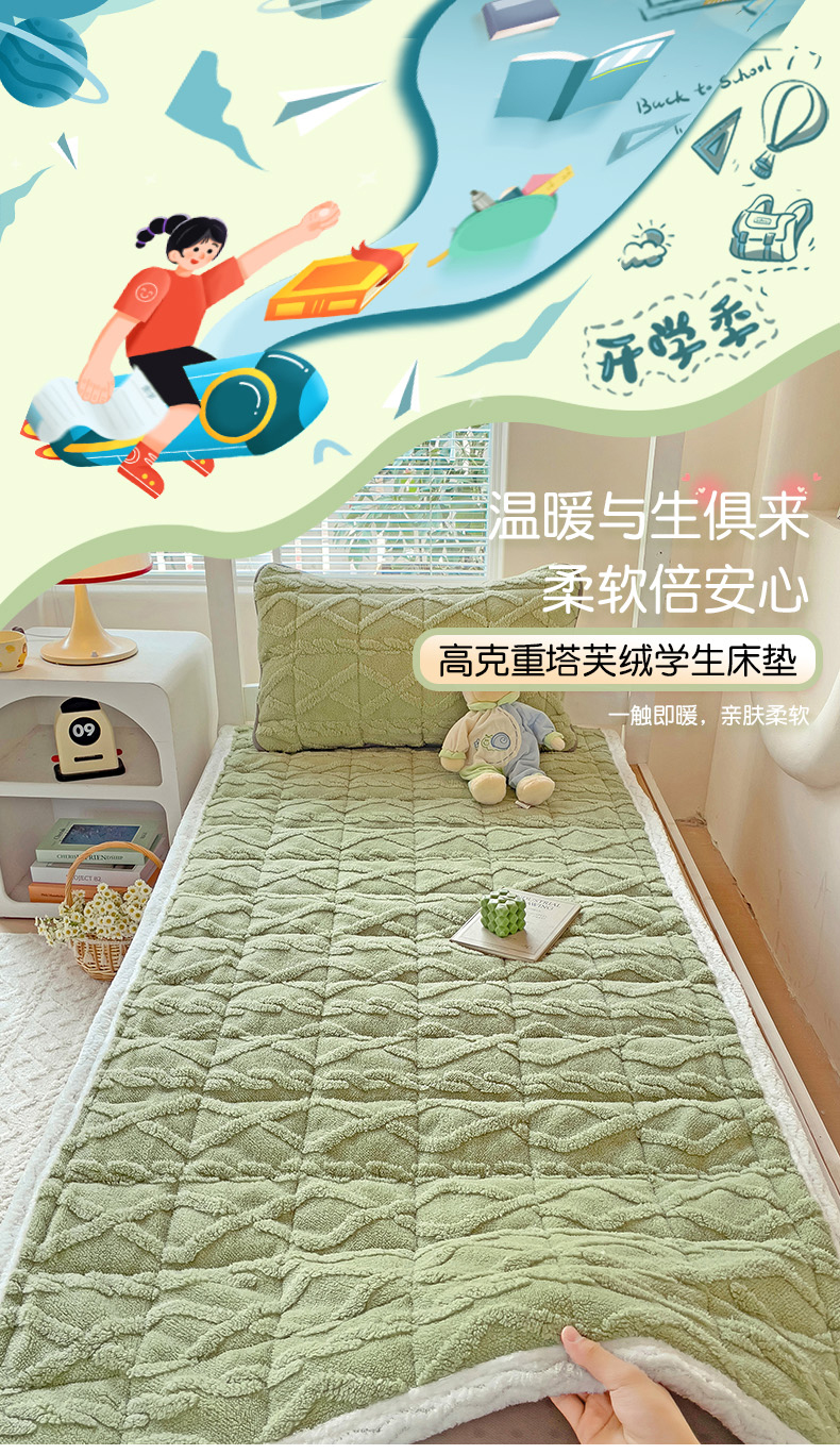 商品名称:米柳家纺 2024新款塔芙绒夹棉垫子 绿色