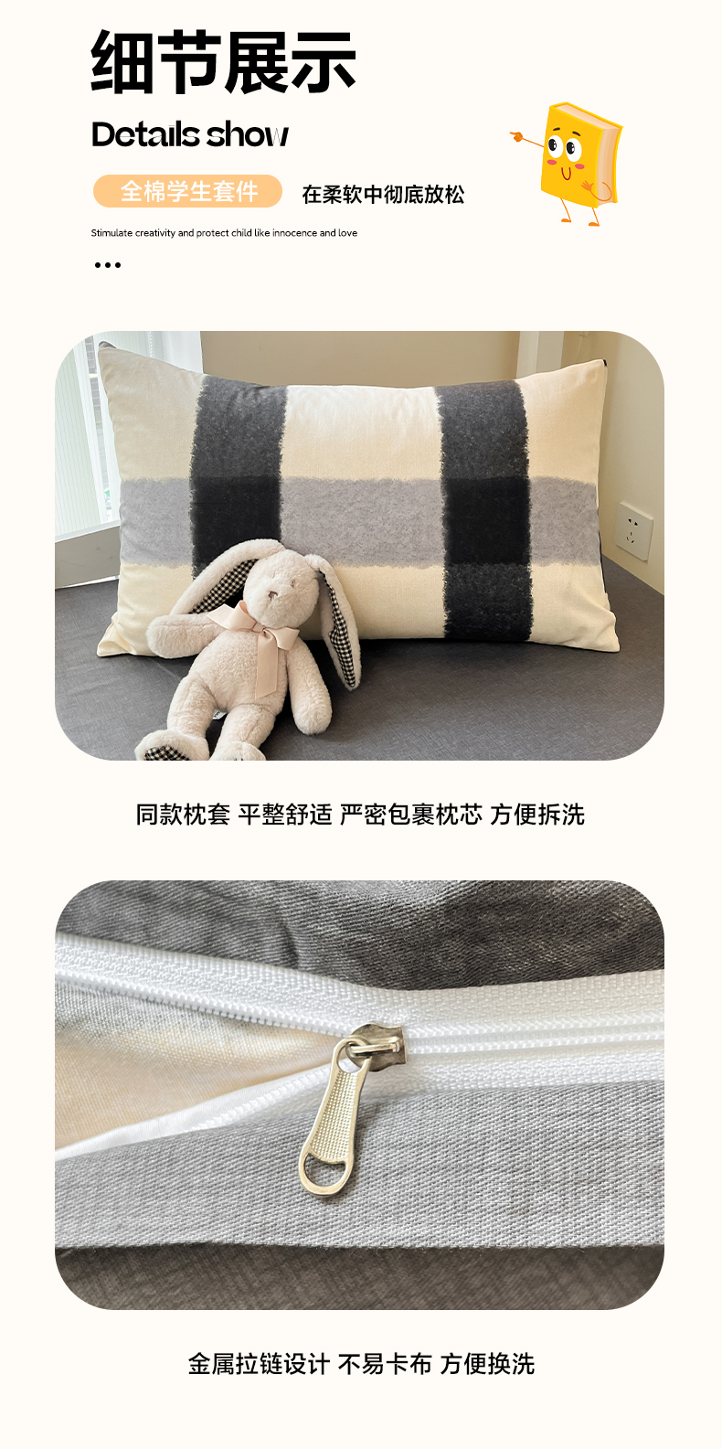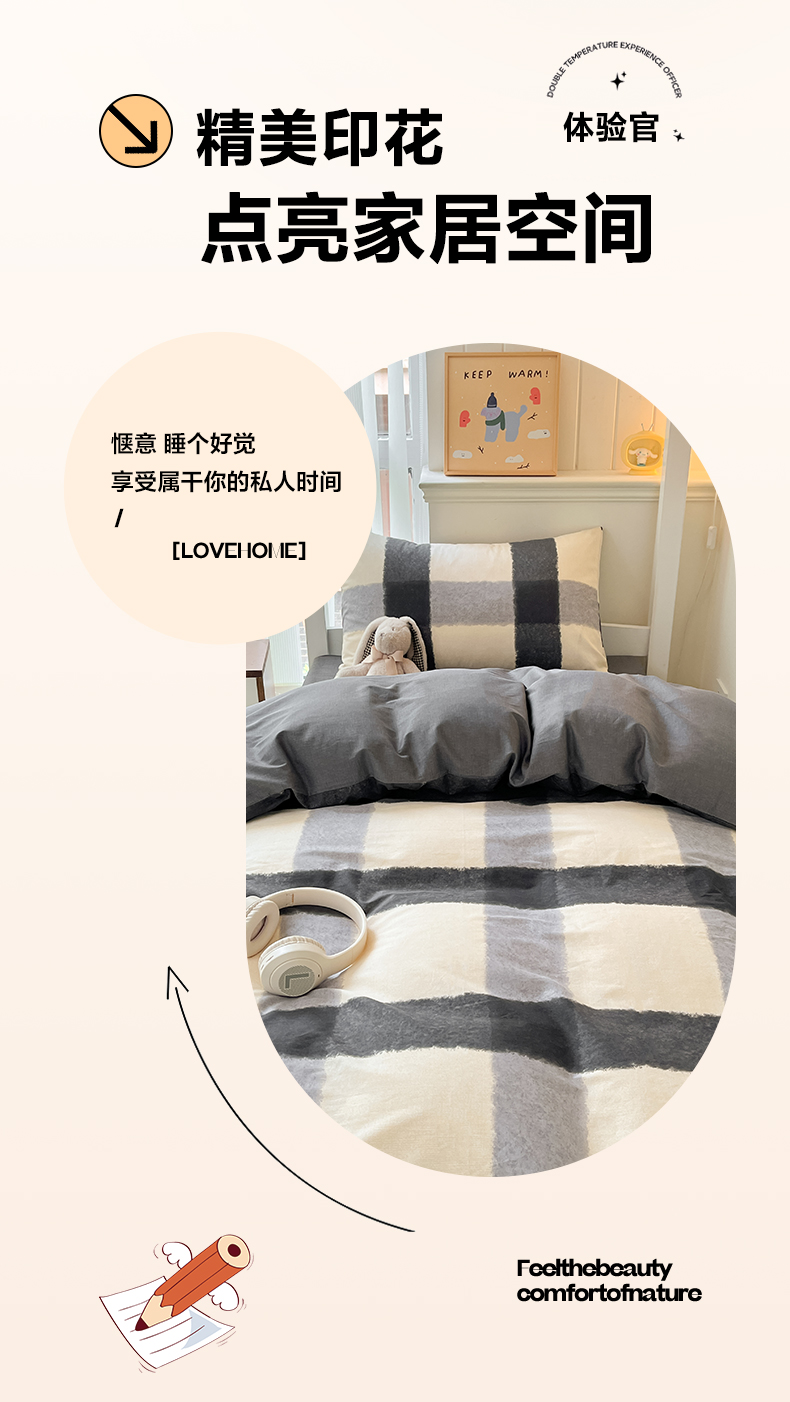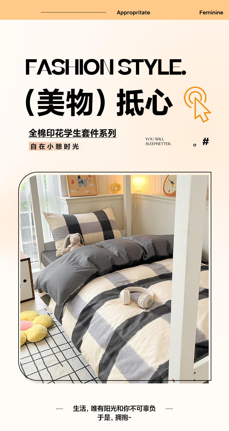 当前位置: 91家纺网 > 商品网购 > 床品套件 > 四件套 > 全棉普通四件套 > 雅居纺 2024新款全棉印花学生季套件 复古格子灰